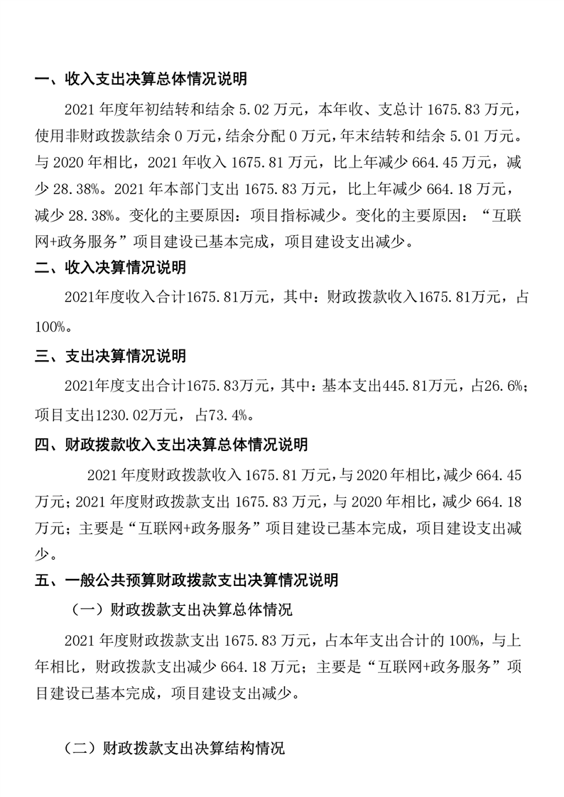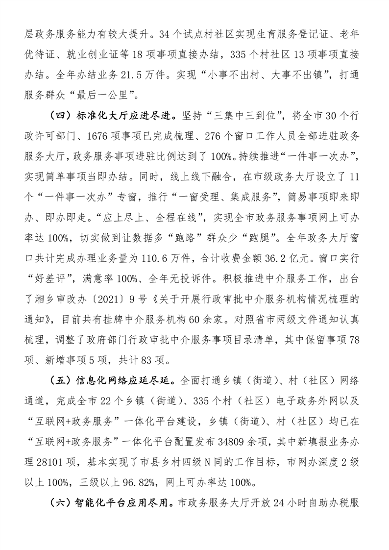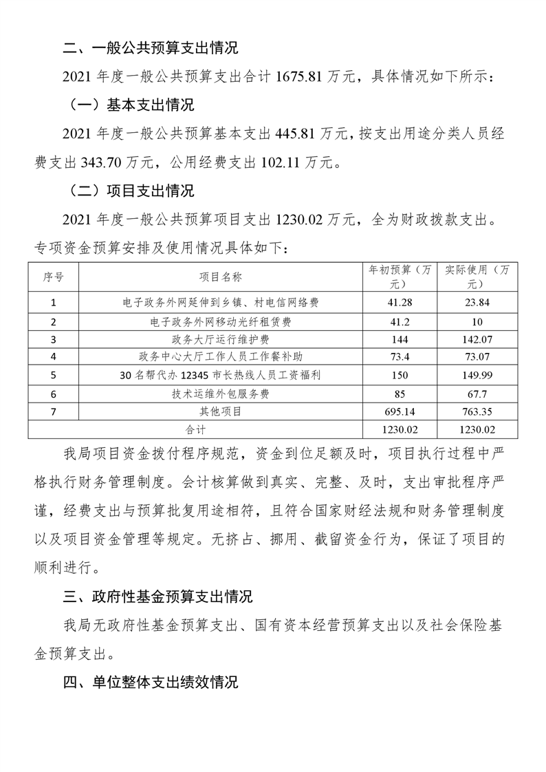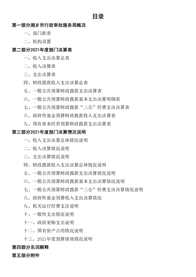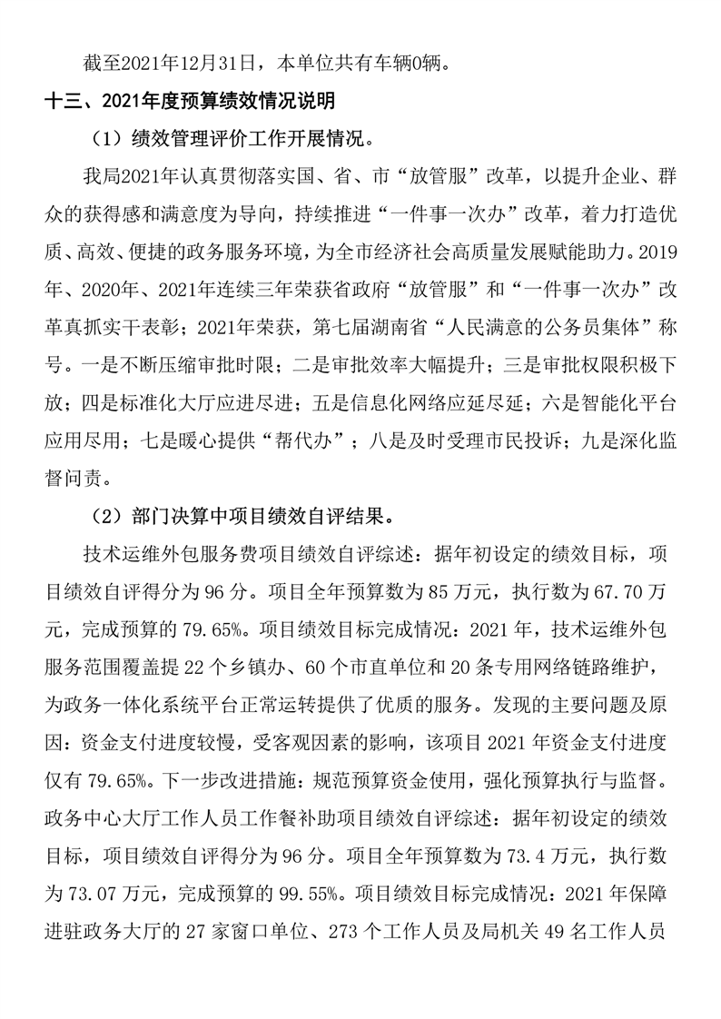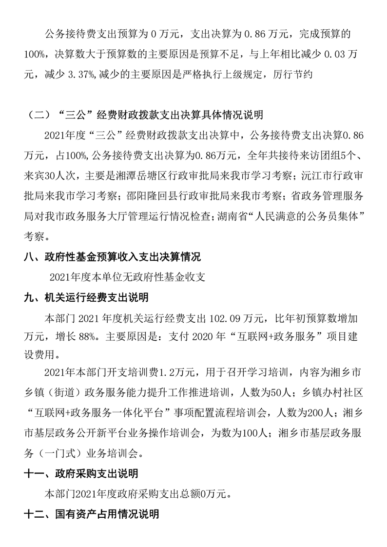 湘鄉市行政審批服務局2021年度部門決算