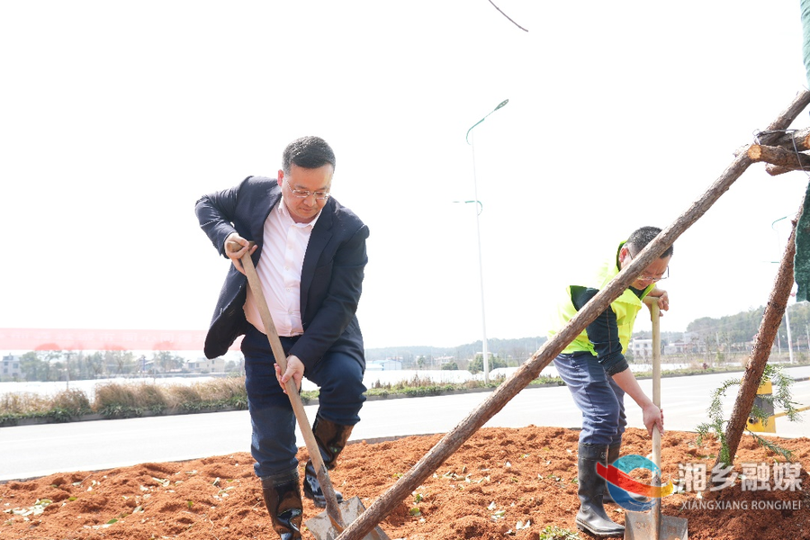 新湘鄉客戶端3月12日訊(湘鄉融媒記者:潘永)又是一年春好處,植樹添綠正當時。今天是我國第46個植樹節,湘潭市人大常委會副主任、湘鄉市委書記趙新文,湘鄉市委副書記、市長郭勇帶隊來到紅侖西線道路泉塘段,同干部群眾一起參加義務植樹活動,用實際行動踐行綠色發展理念。市委副書記、政法委書記謝岸燁,市人大常委會主任李文亮,市政協主席謝永根參加植樹活動。