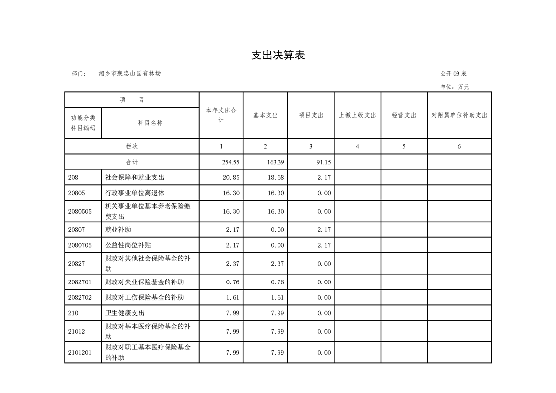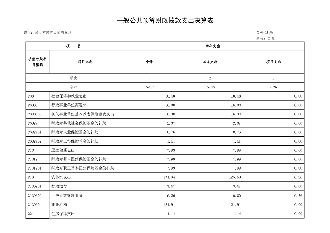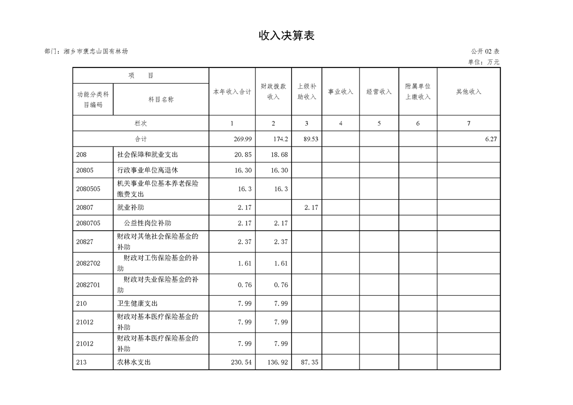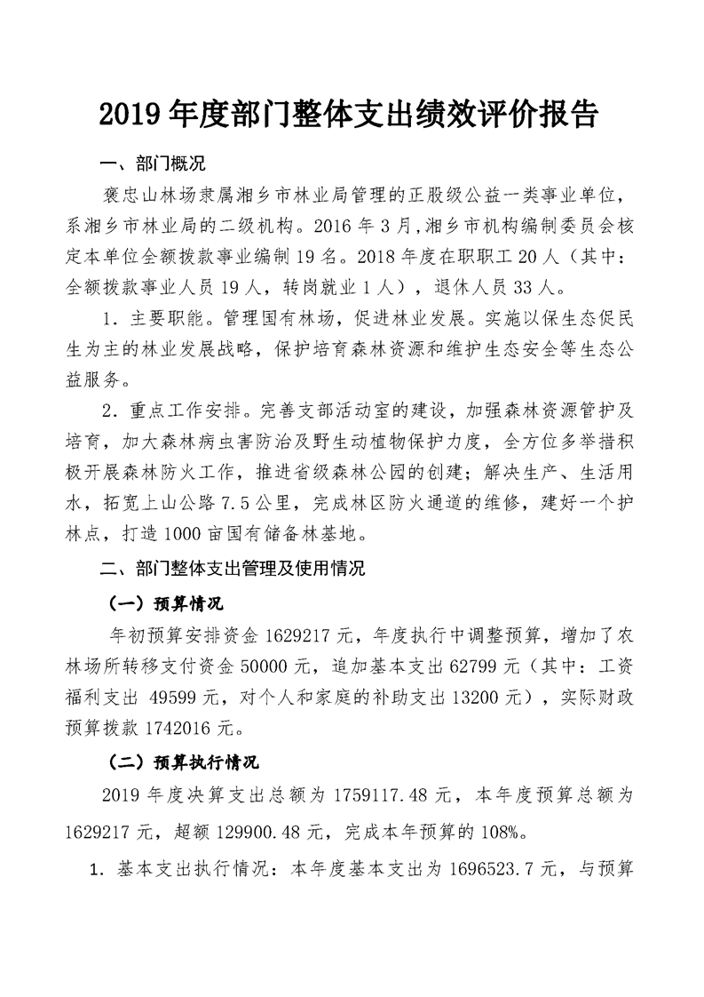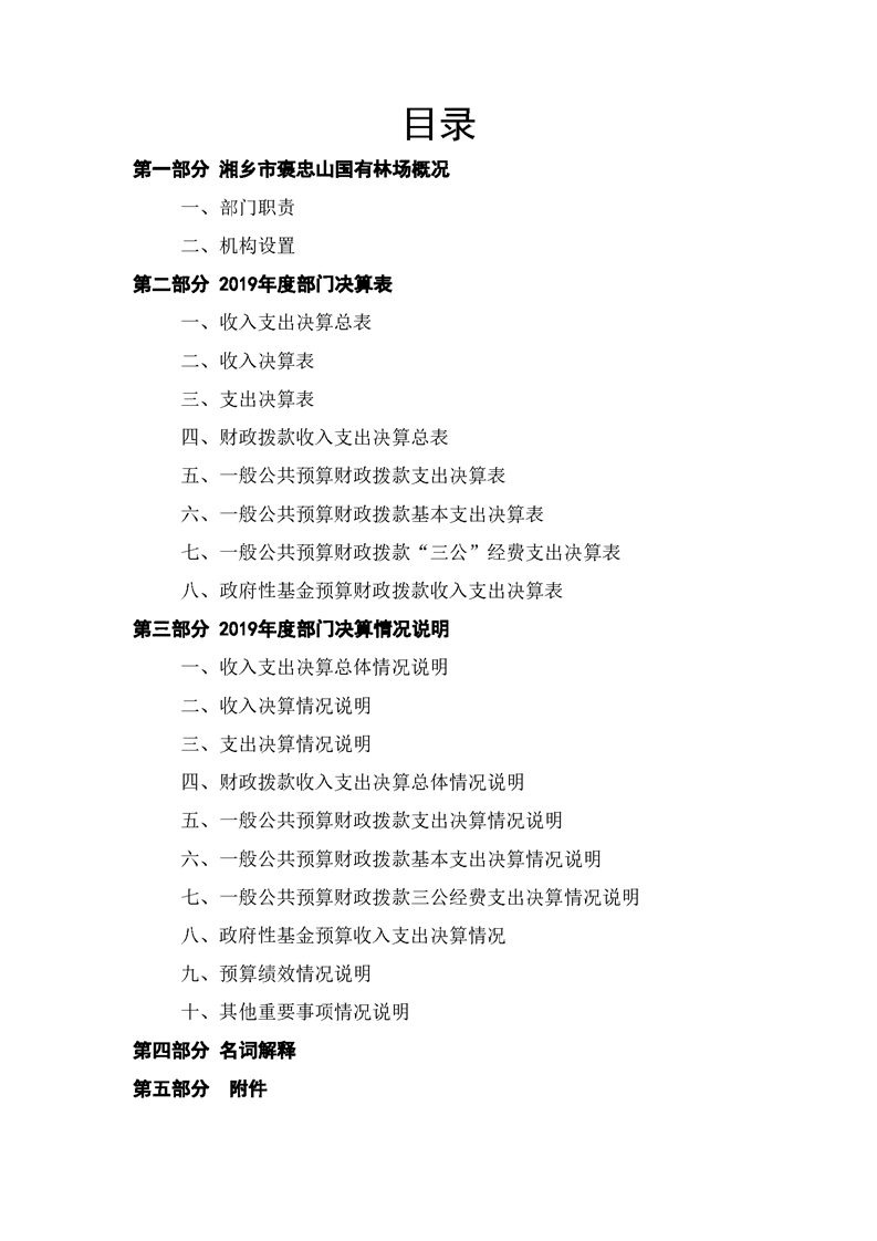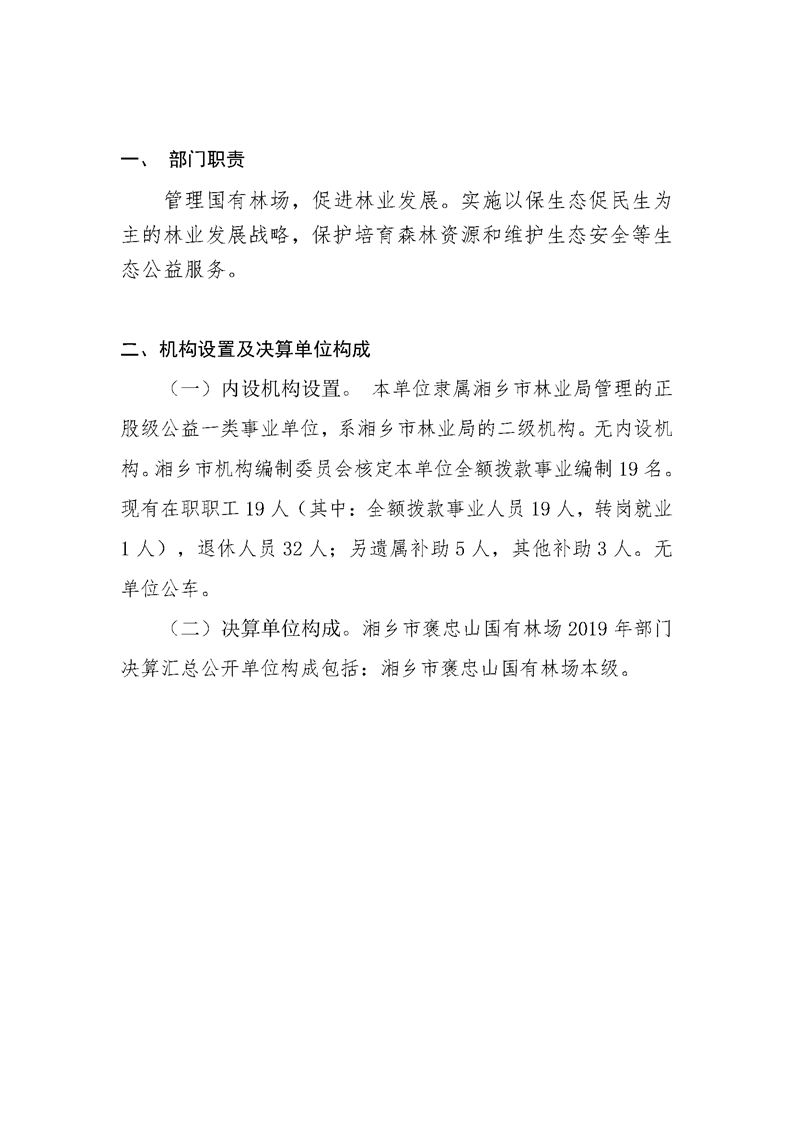 2019年度湘鄉市褒忠山國有林場部門決算公開