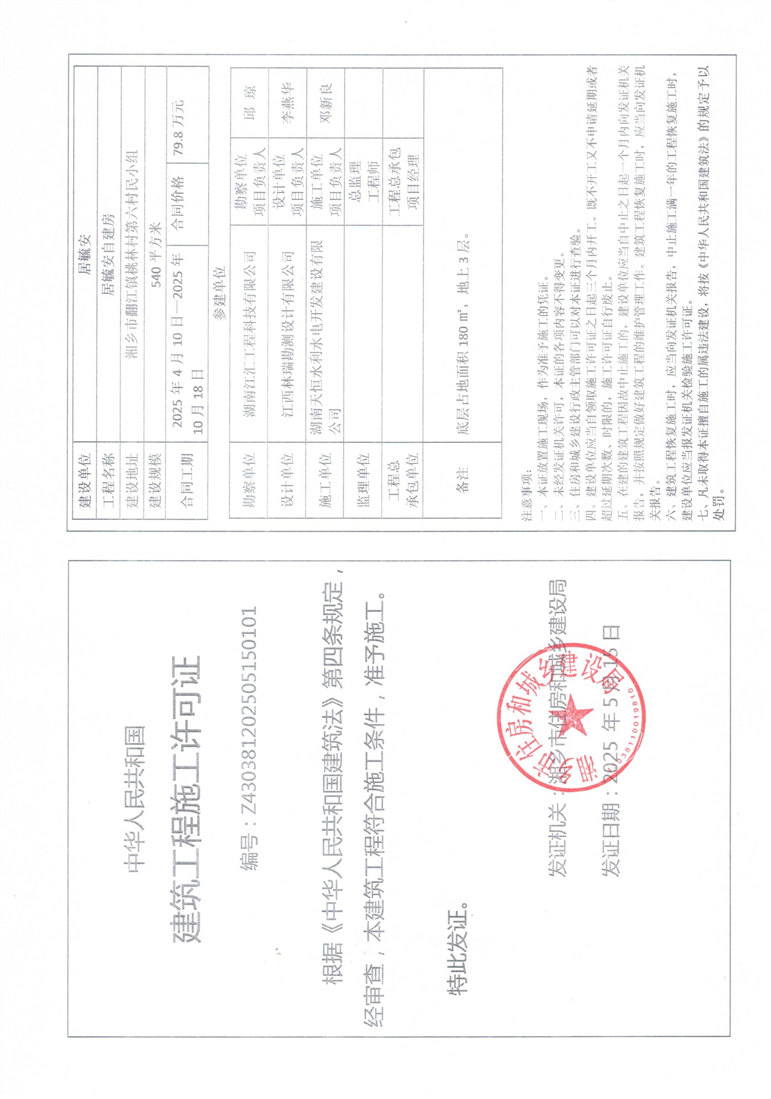 索引號:4303000006/2025-1373034 發布機構:行政執法 發布目錄:建筑工程施工許可