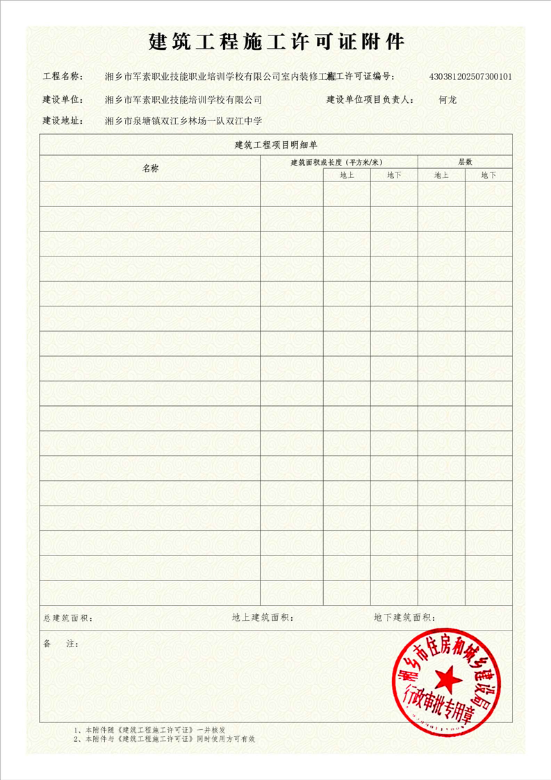 湘鄉市軍素職業技能職業培訓學校有限公司室內裝修工程