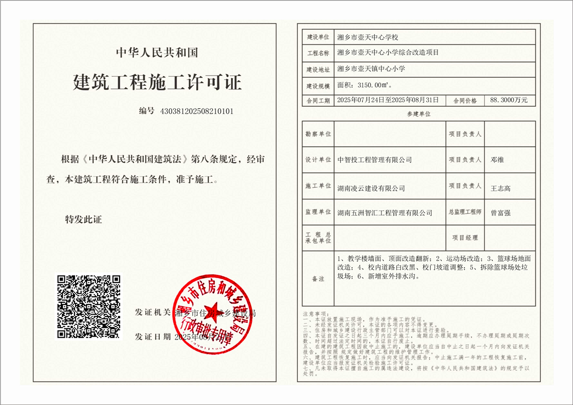索引號:4303000006/2025-1388146 發布機構:行政執法 發布目錄:建筑工程施工許可
