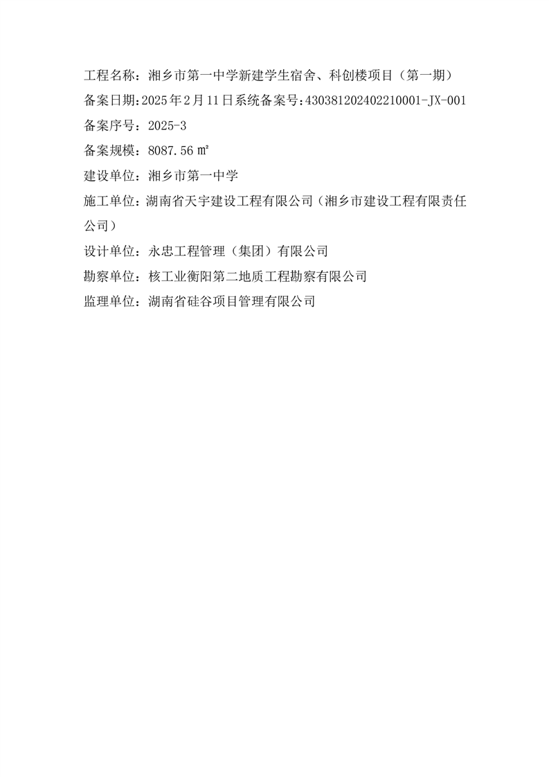湘鄉市第一中學新建學生宿舍、科創樓項目(第一期)2025-03