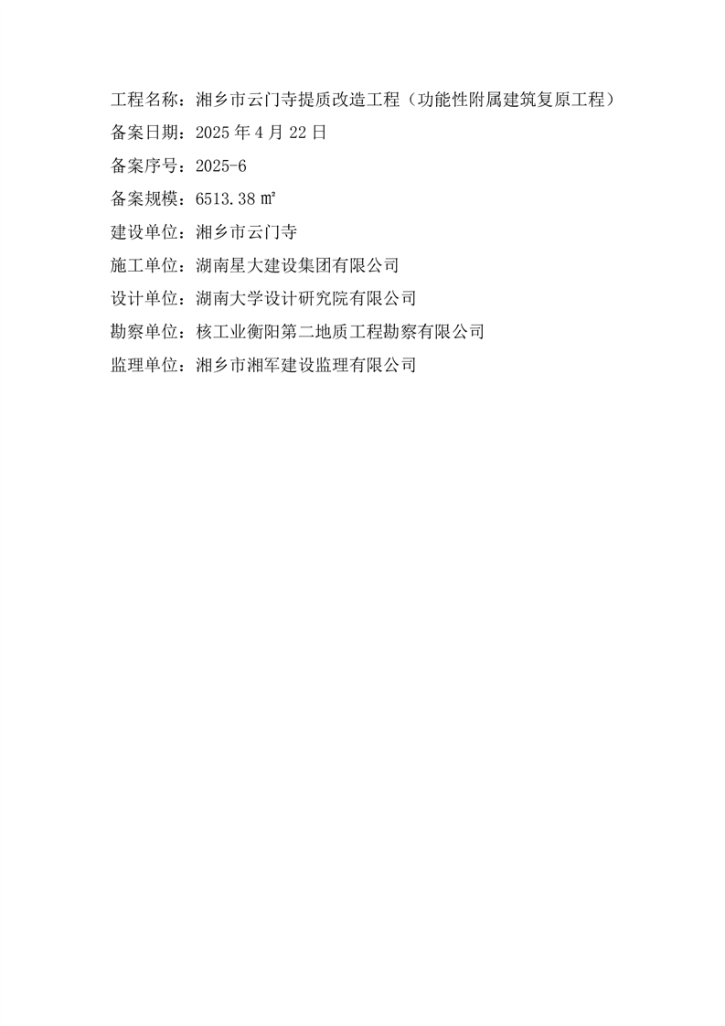 湘鄉市云門寺提質改造工程(功能性附屬建筑復原工程)2025-06