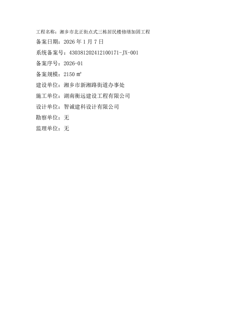 湘鄉市北正街點式三棟居民樓修繕加固工程