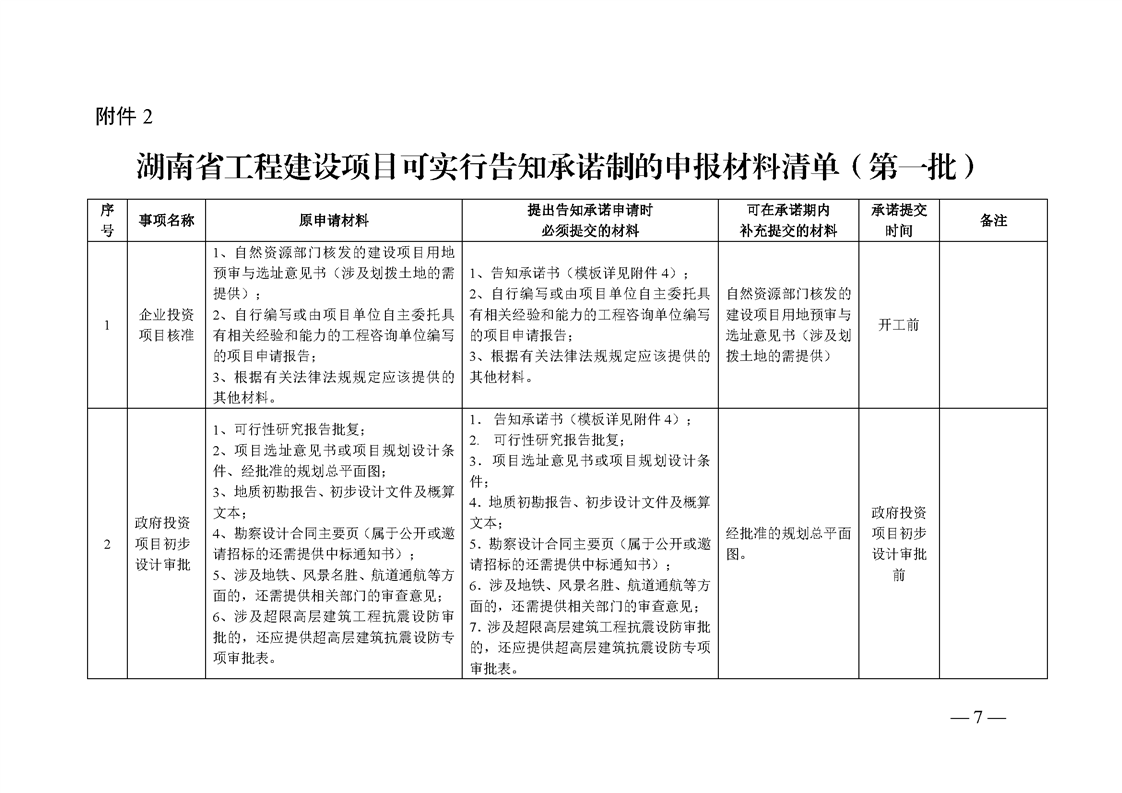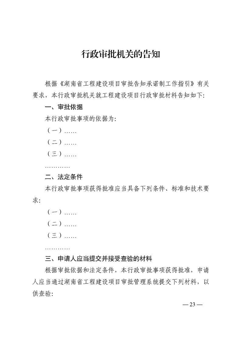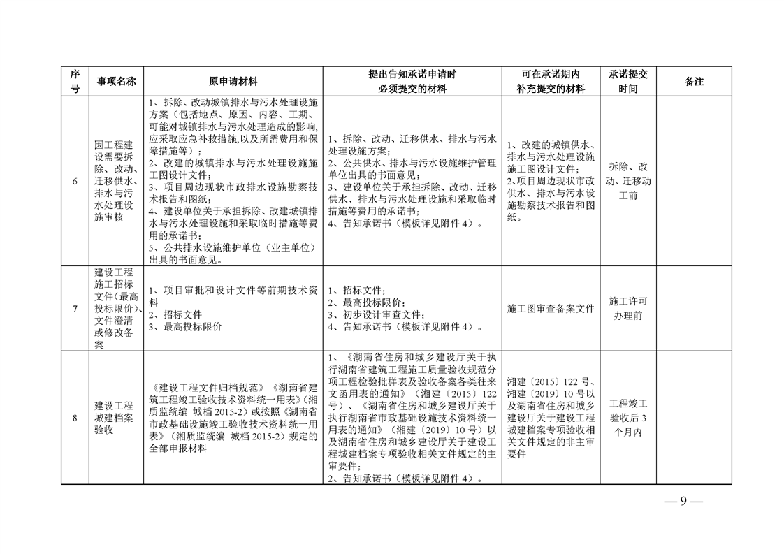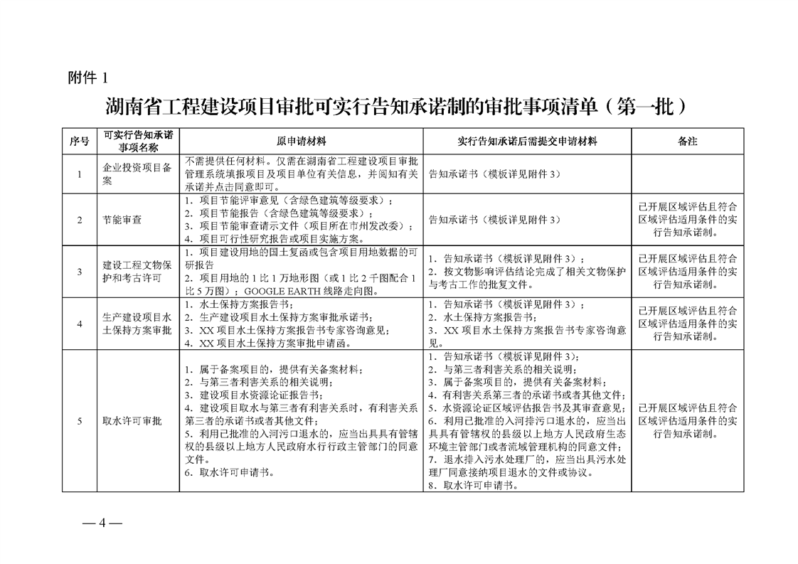 湖南省工程建設項目審批可實行告知承諾制的審批事項和申報材料清單(第一批)