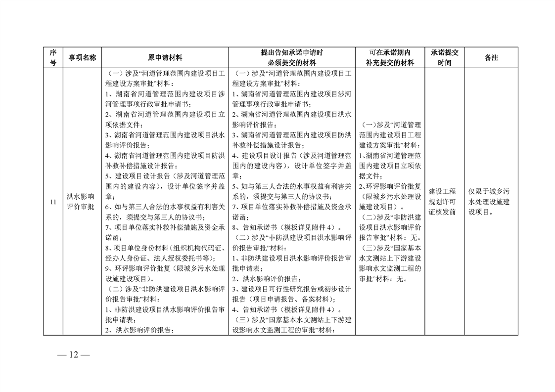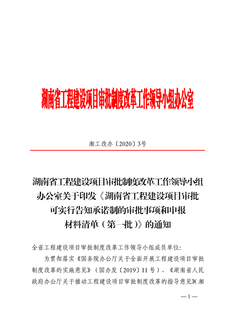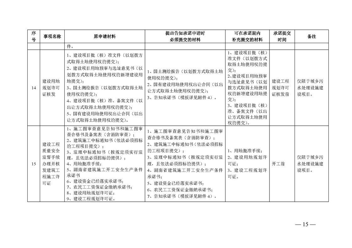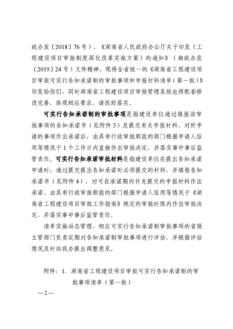 湖南省工程建設項目審批可實行告知承諾制的審批事項和申報材料清單(第一批)