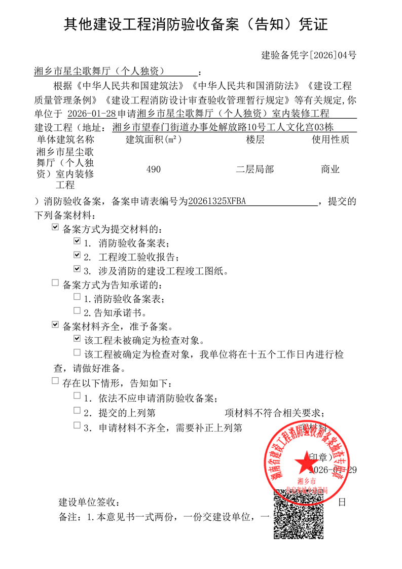 索引號:4303000006/2026-1420062 發布機構:行政執法 發布目錄:建設工程消防驗收備案