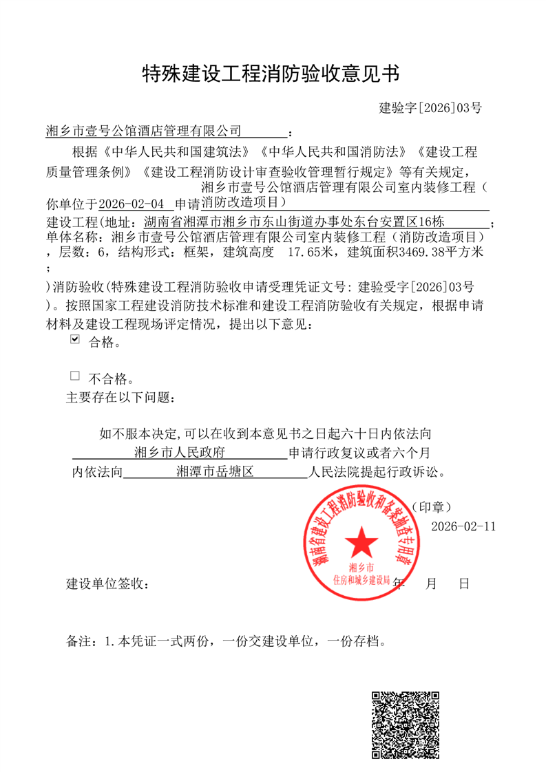 索引號:4303000006/2026-1420077 發布機構:行政執法 發布目錄:建設工程消防驗收備案