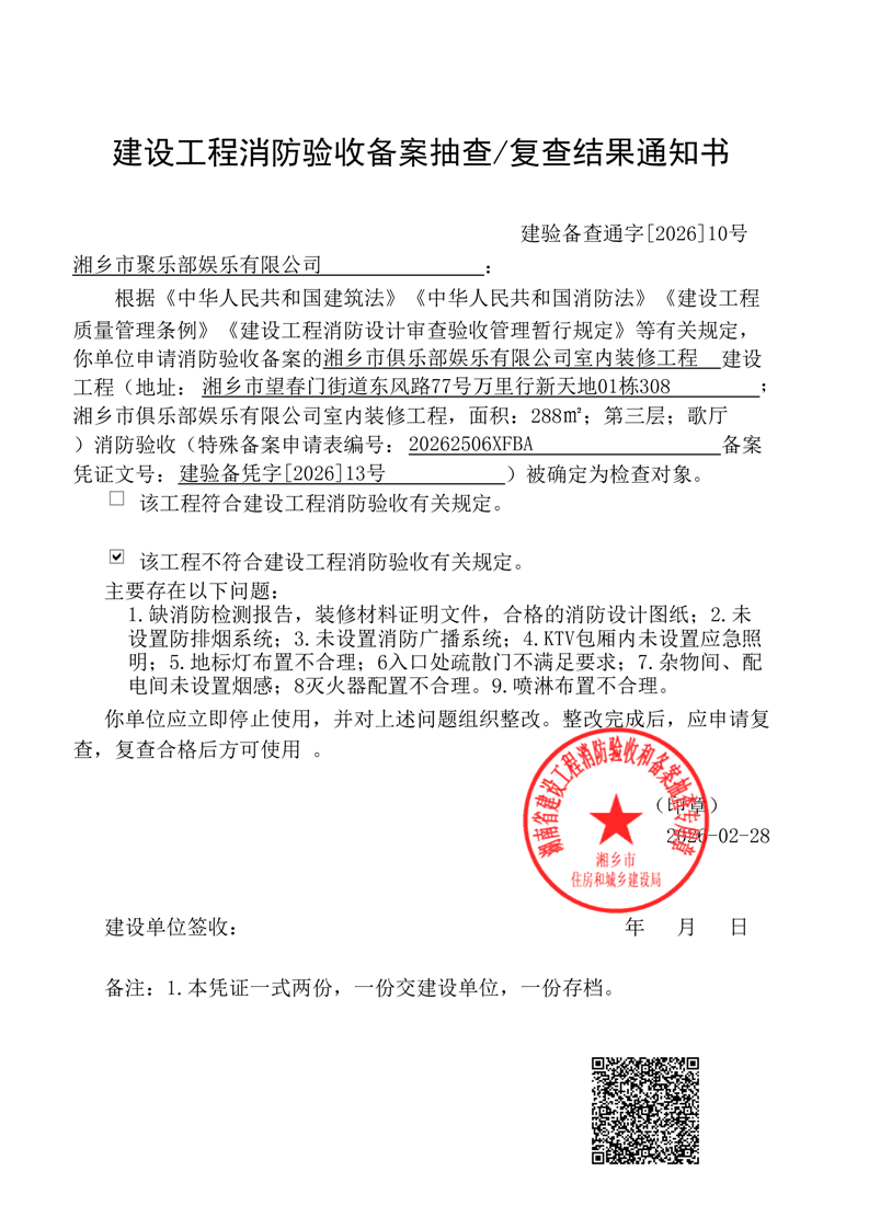 索引號:4303000006/2026-1420081 發布機構:行政執法 發布目錄:建設工程消防驗收備案
