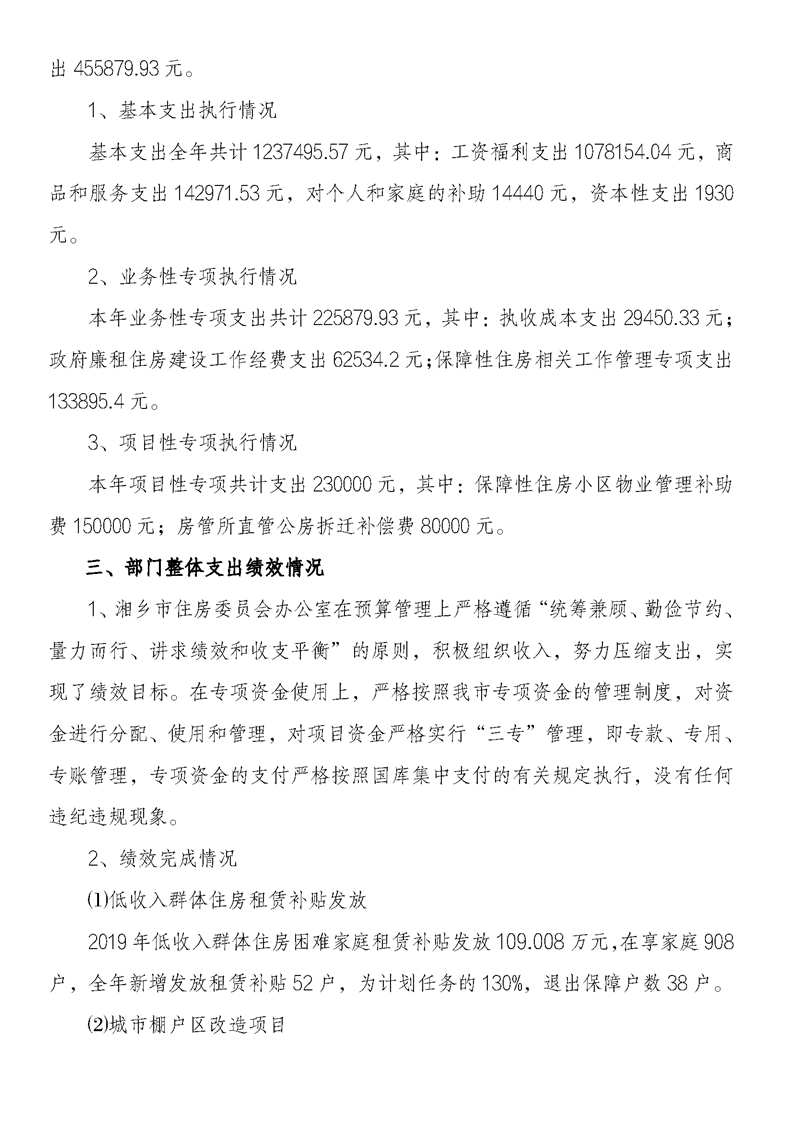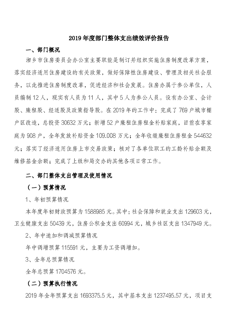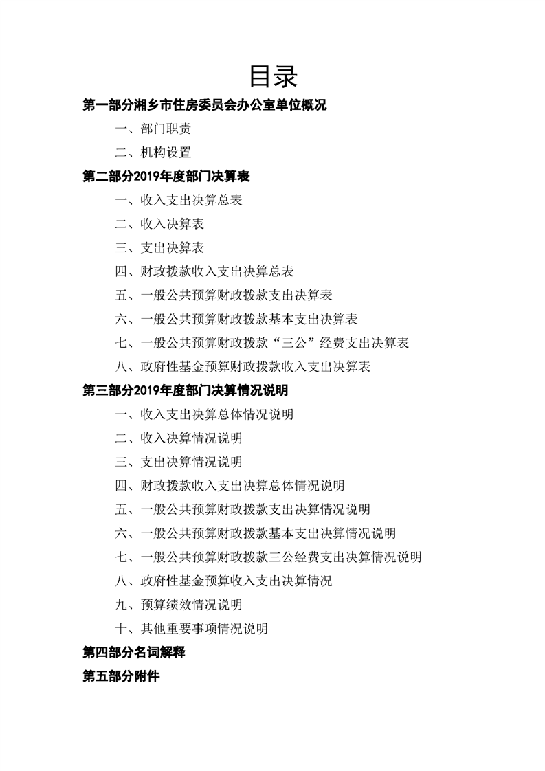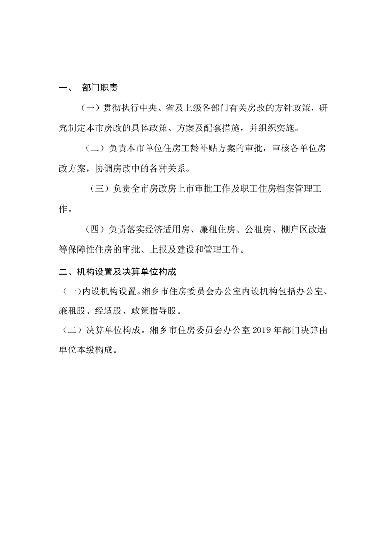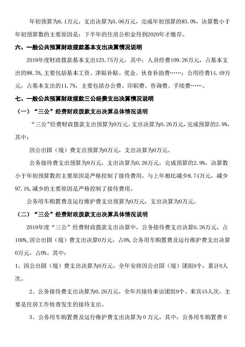 2019年度湘鄉市住房委員會辦公室單位部門決算公開