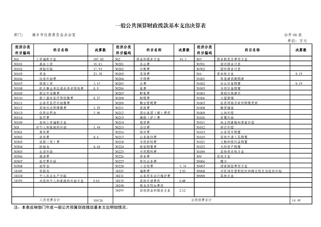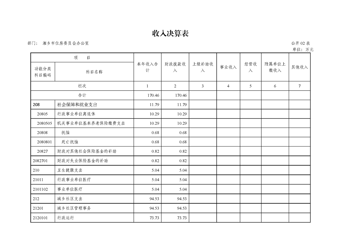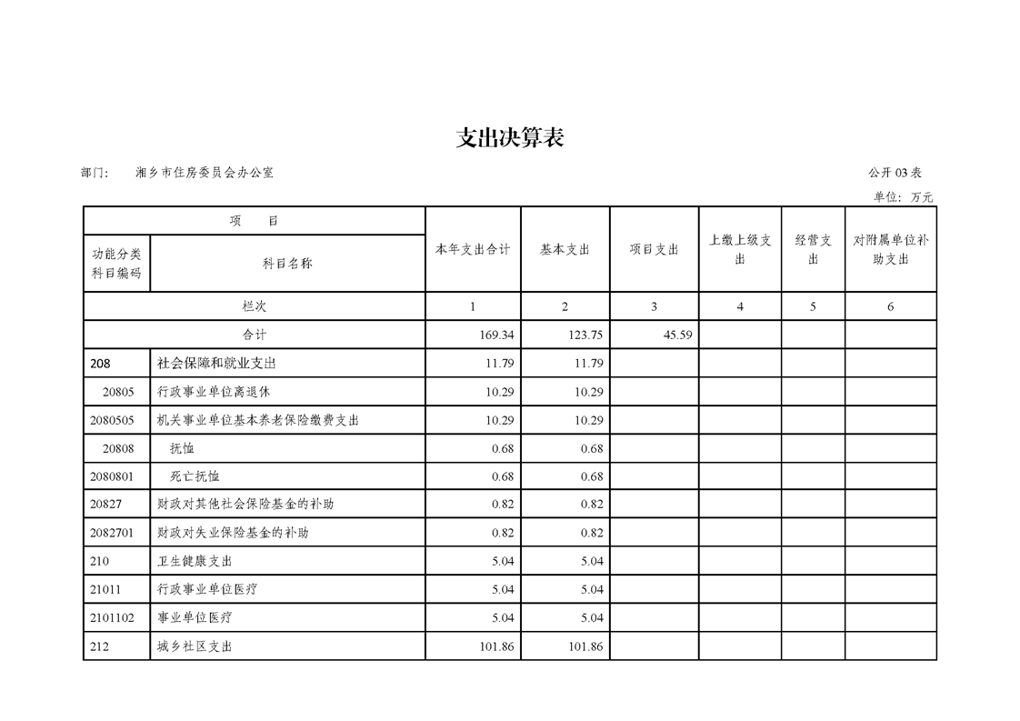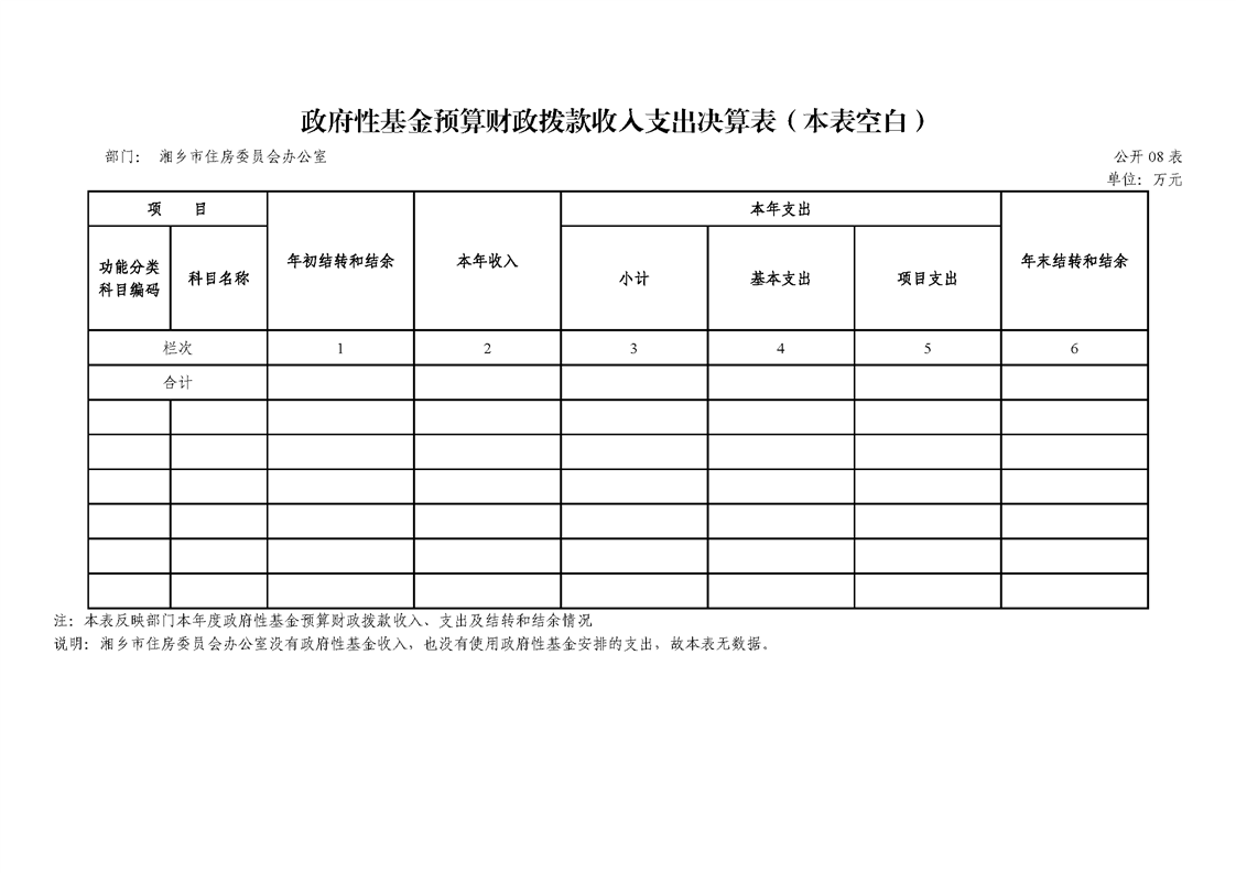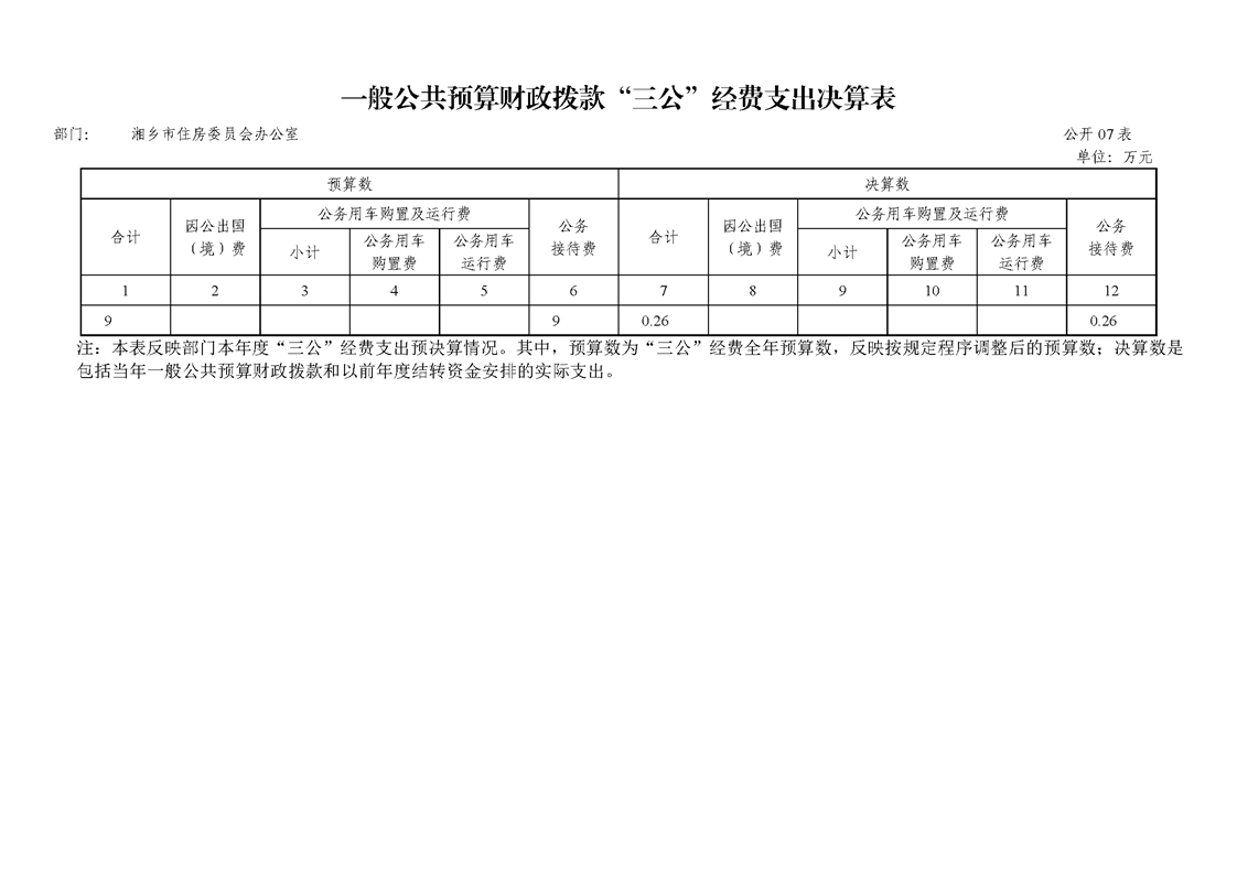 2019年度湘鄉市住房委員會辦公室單位部門決算公開