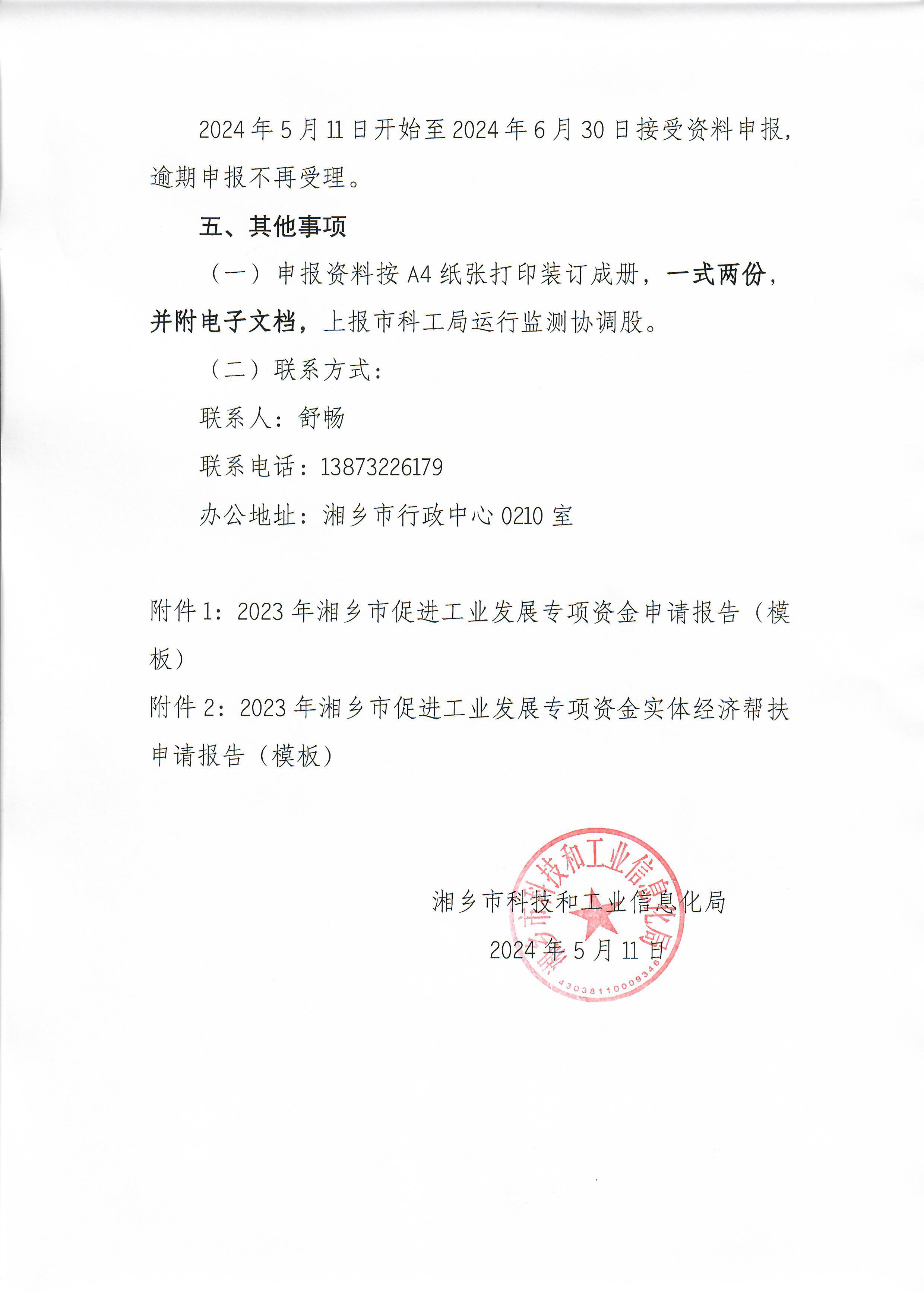 關(guān)于申報(bào)2023年湘鄉(xiāng)市促進(jìn)工業(yè)發(fā)展專項(xiàng)資金的通知