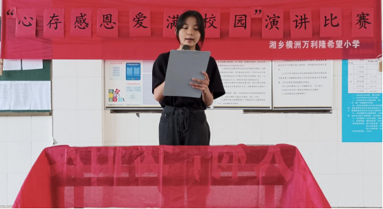 橫洲萬利隆希望小學開展"心存感恩,愛滿校園"學生演講比賽