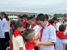 。ㄍㄓ崋T:楊禮)潤心伴成長,同心護未來!5月31日,在兒童節來臨之際,潭市鎮新鋪學校開展了慶“六一”多彩文藝活動暨少先隊入隊儀式,為同學們送上了一份特別的節日禮物。