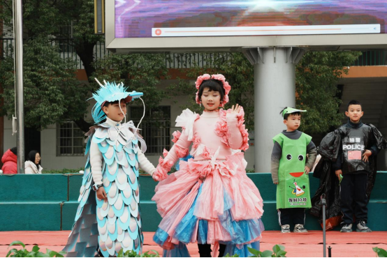 活動開場,二年級小朋友帶來的創意服裝秀瞬間點燃了現場氣氛。孩子們身著用廢舊物品精心制作的服裝,自信滿滿地走上舞臺,那些原本被丟棄的物品在他們的奇思妙想下化身為一件件時尚獨特的服飾,充分展現了孩子們的無限創意和環保意識,為活動拉開了充滿歡樂與驚喜的序幕。 緊接著,湘潭市青少年宮帶來的科技秀表演成為全場矚目的焦點。炫酷的機器人機甲一亮相,便吸引了所有同學的目光。它們以靈活多變的動作展示著科技的魅力,快速而精準的移動、復雜又流暢的姿態切換,讓現場觀眾目不暇接,驚嘆聲此起彼伏,同學們深深折服于科技為機械賦予的無限可能。與此同時,無人機在空中輕盈“起舞”,它們整齊的編隊不斷變換出各種創意造型,飛翔的白鴿象征著和平與希望,奔騰的駿馬展現出活力與激情,將科技之美演繹得淋漓盡致,極大地激發了學生們對神秘科技世界的向往和探索熱情。 在科技秀的精彩表演間隙,口風琴表演悠揚的旋律如潺潺流水般響起,為緊張刺激的科技氛圍增添了一抹清新優雅的藝術氣息,讓觀眾們在科技的震撼中感受到了藝術的撫慰。