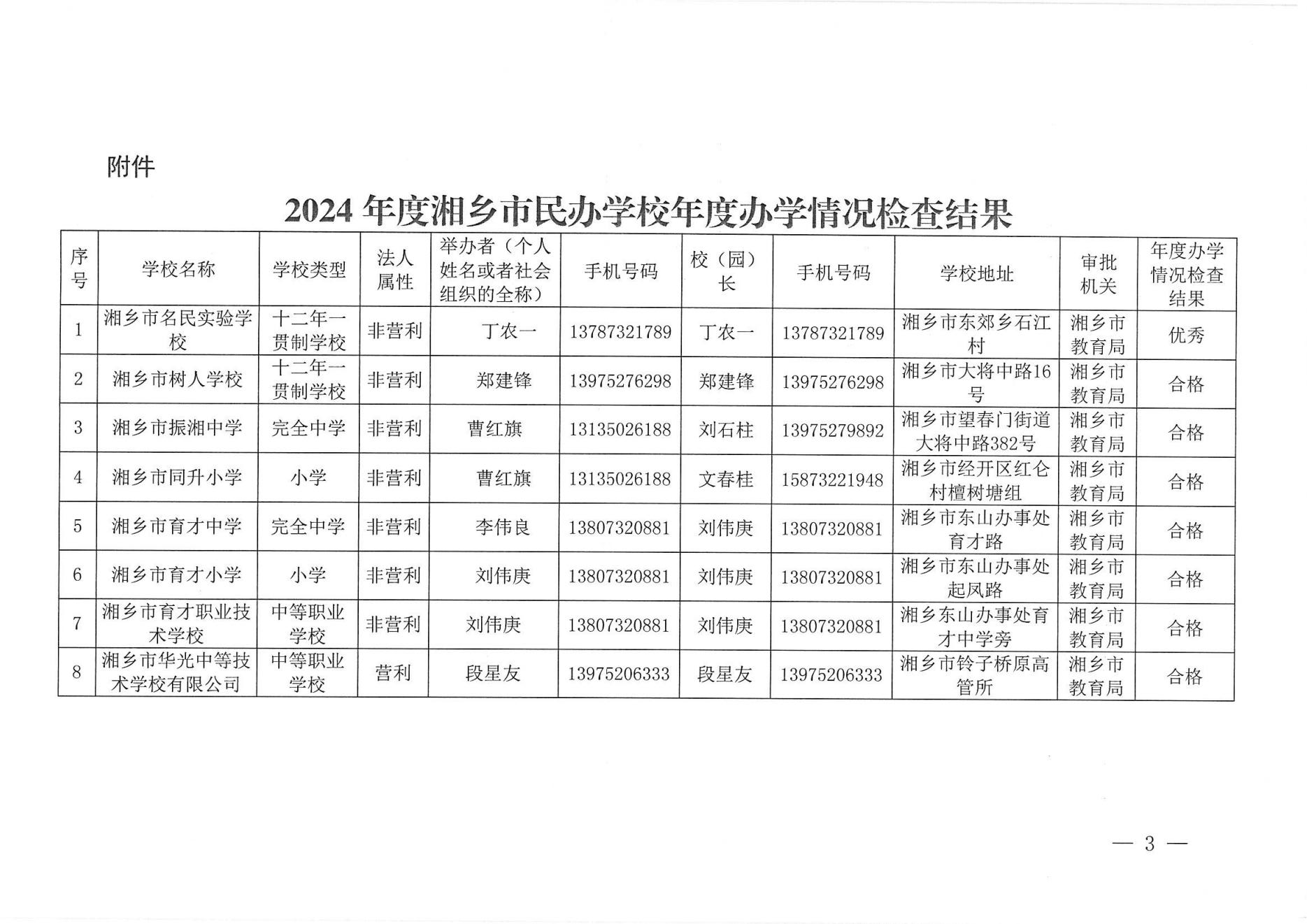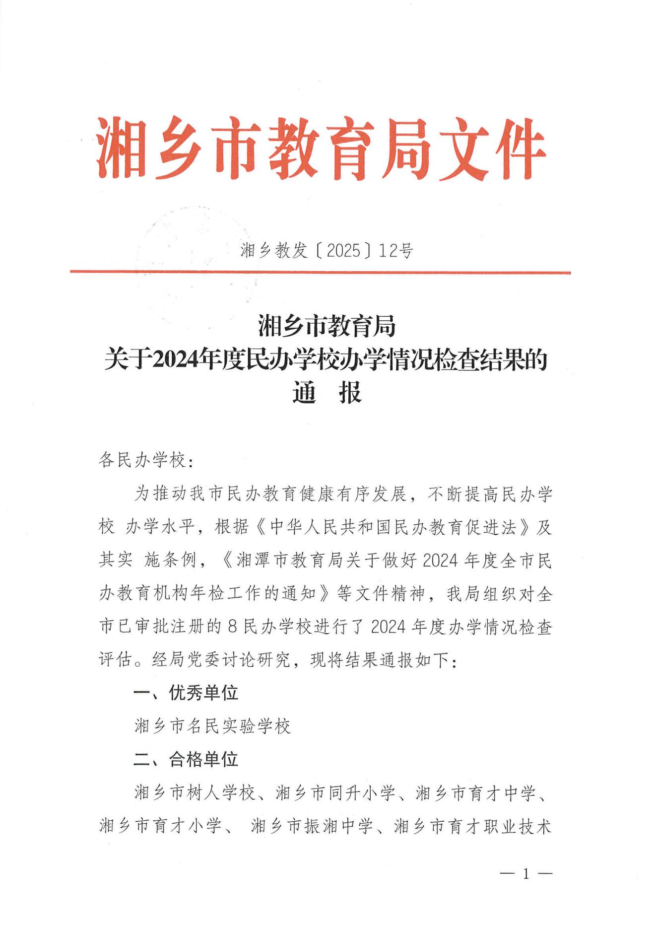 湘鄉市教育局關于2024年度民辦學校辦學情況評估結果的通報