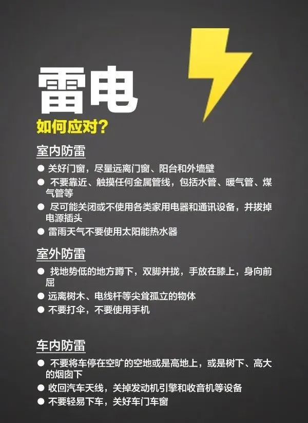 暴雨雷電天氣時要加強煤氣和電源管理,要斷開家中用電設備的開關,防止管道氣體泄漏和電線浸水造成漏電失火、傷人事故。