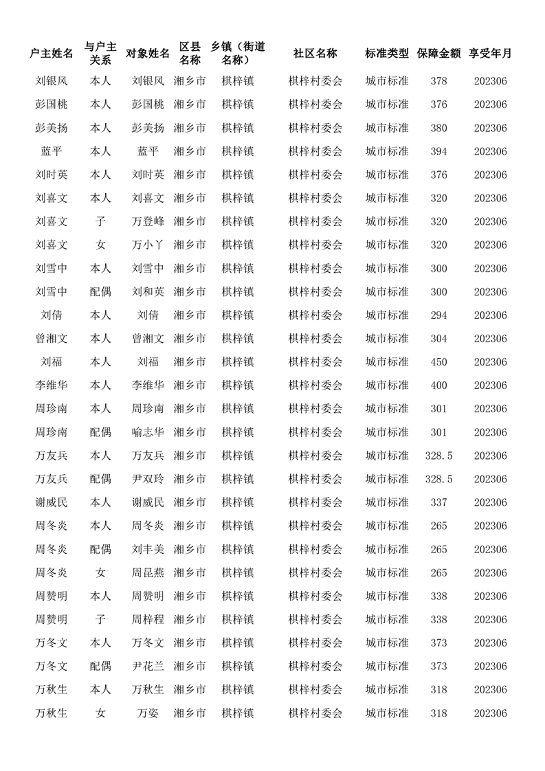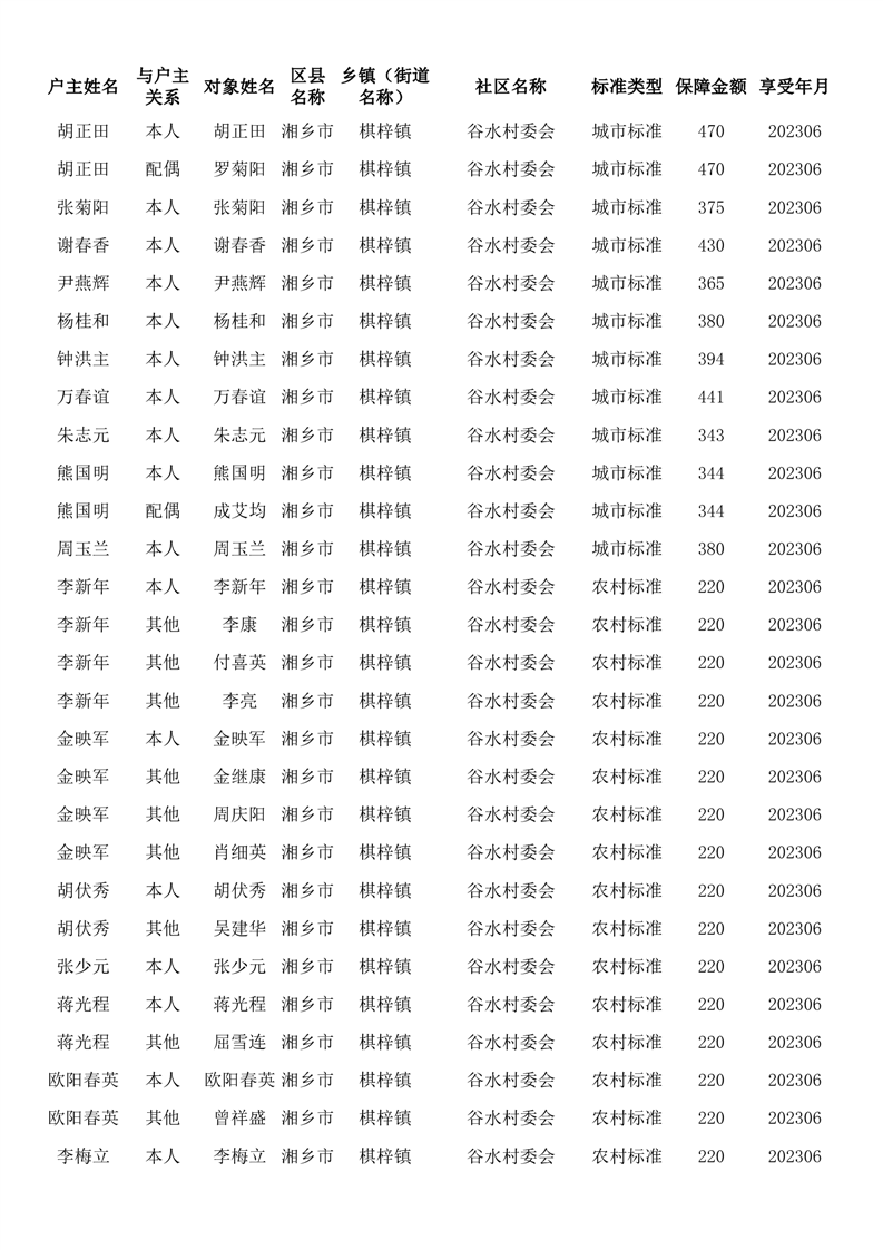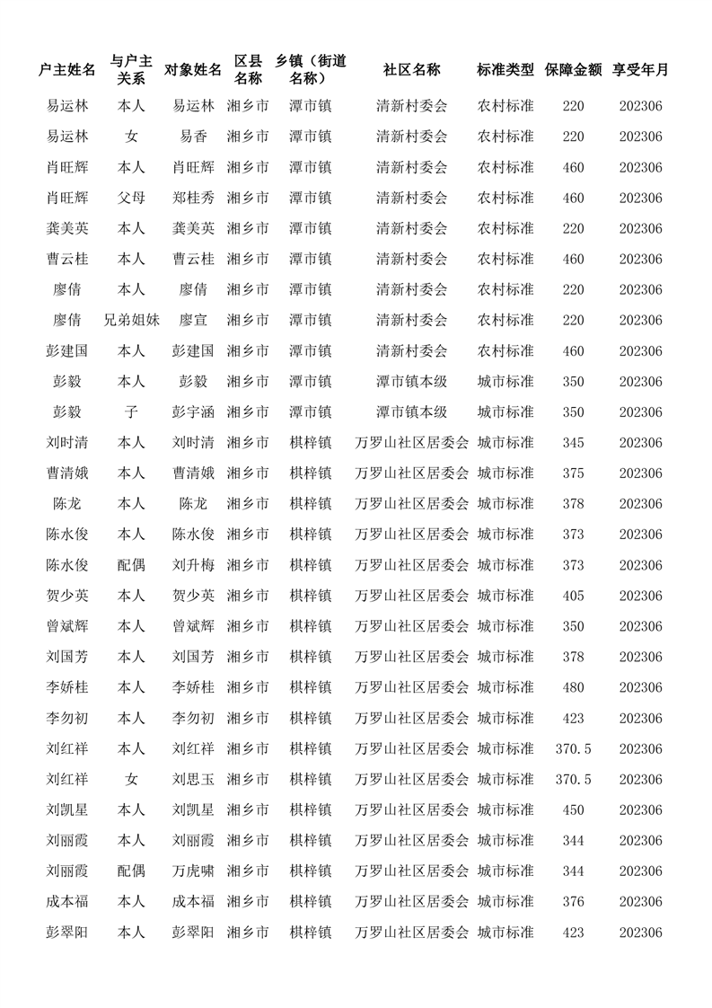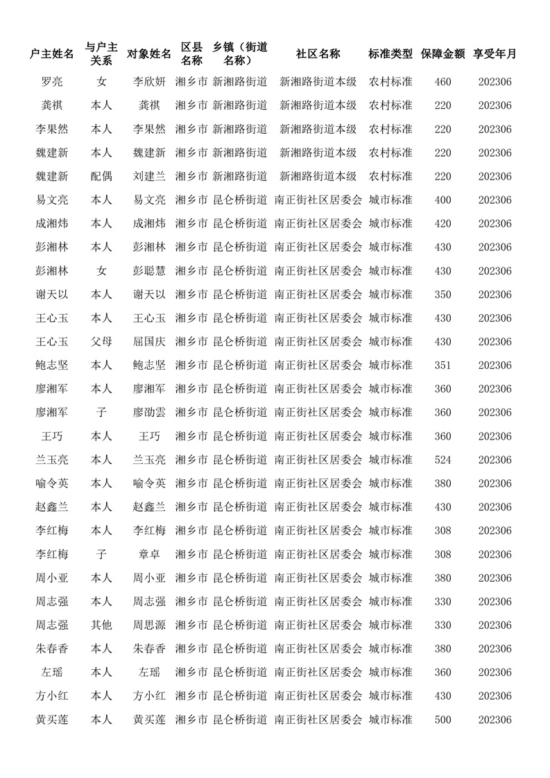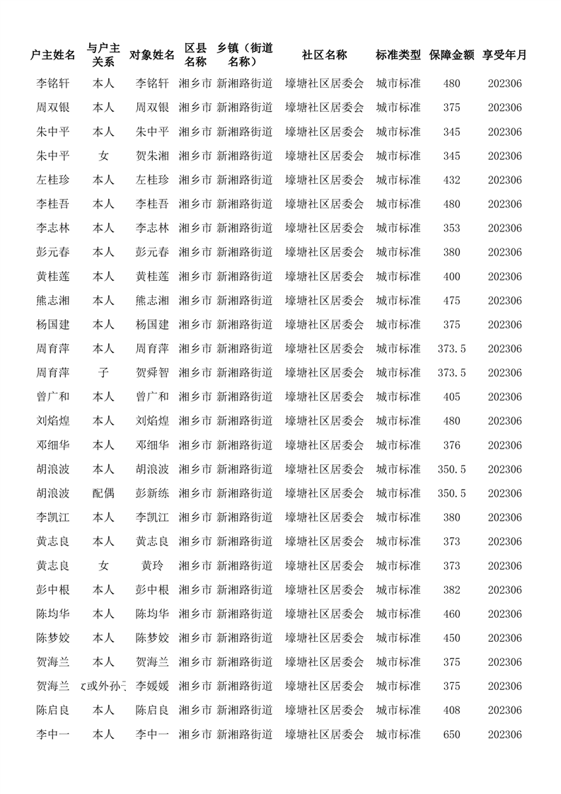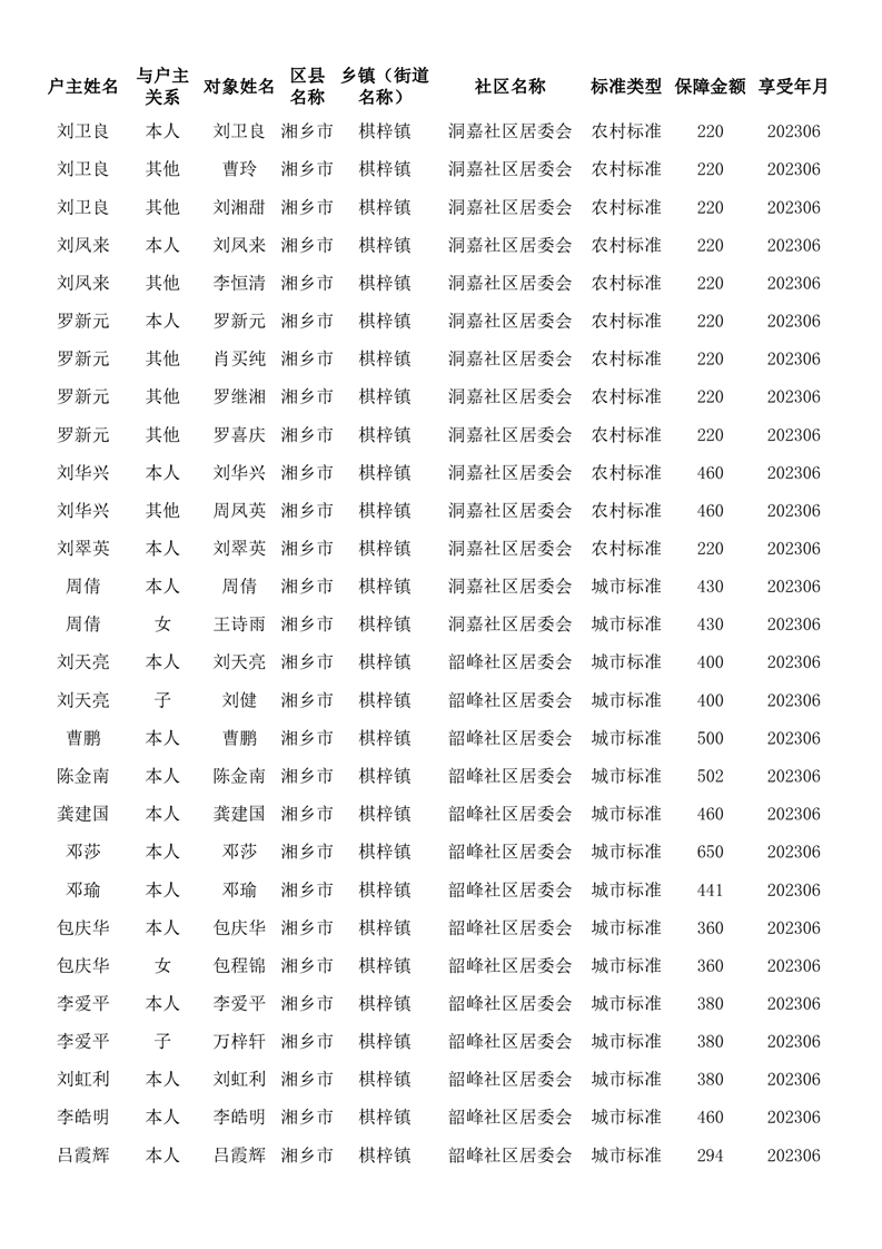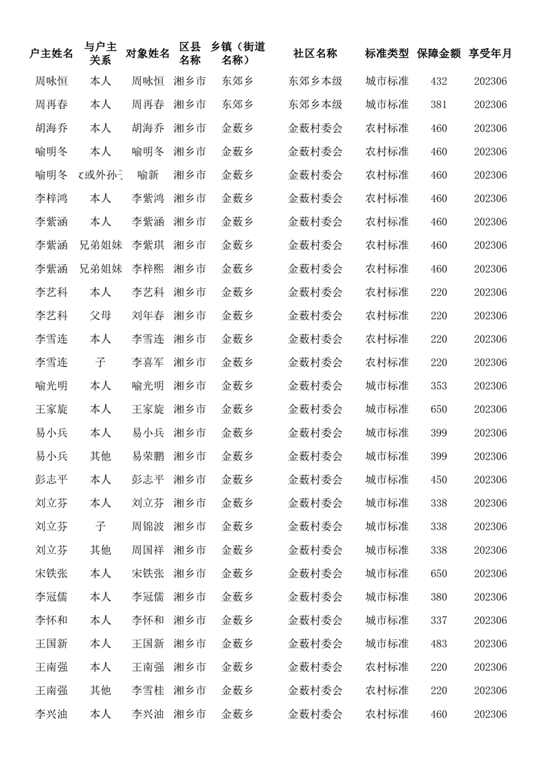 湘鄉(xiāng)市2023年6月城鄉(xiāng)低保救助對象審批匯總表