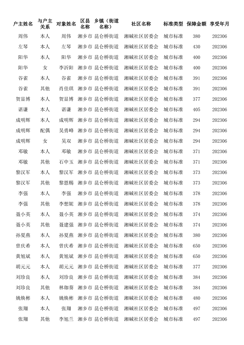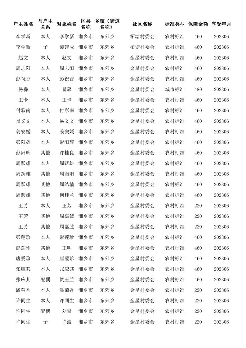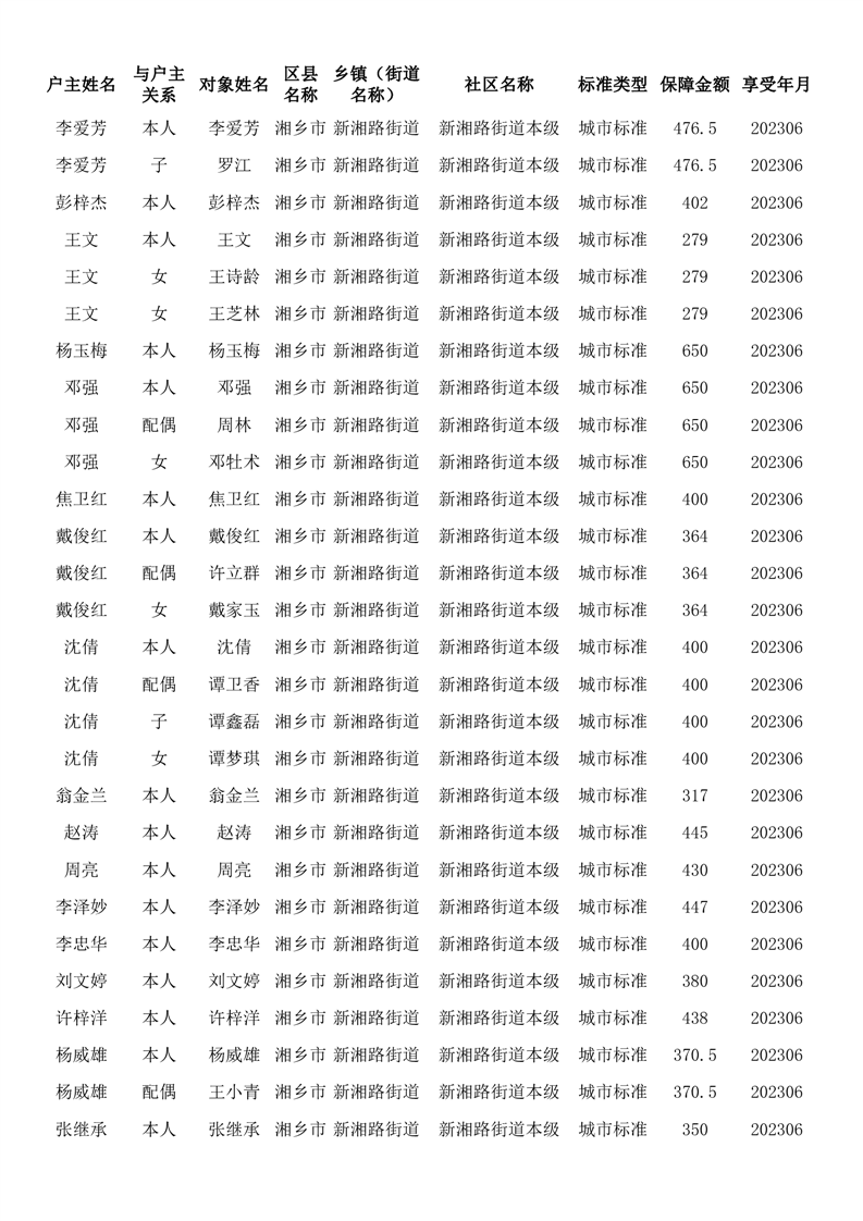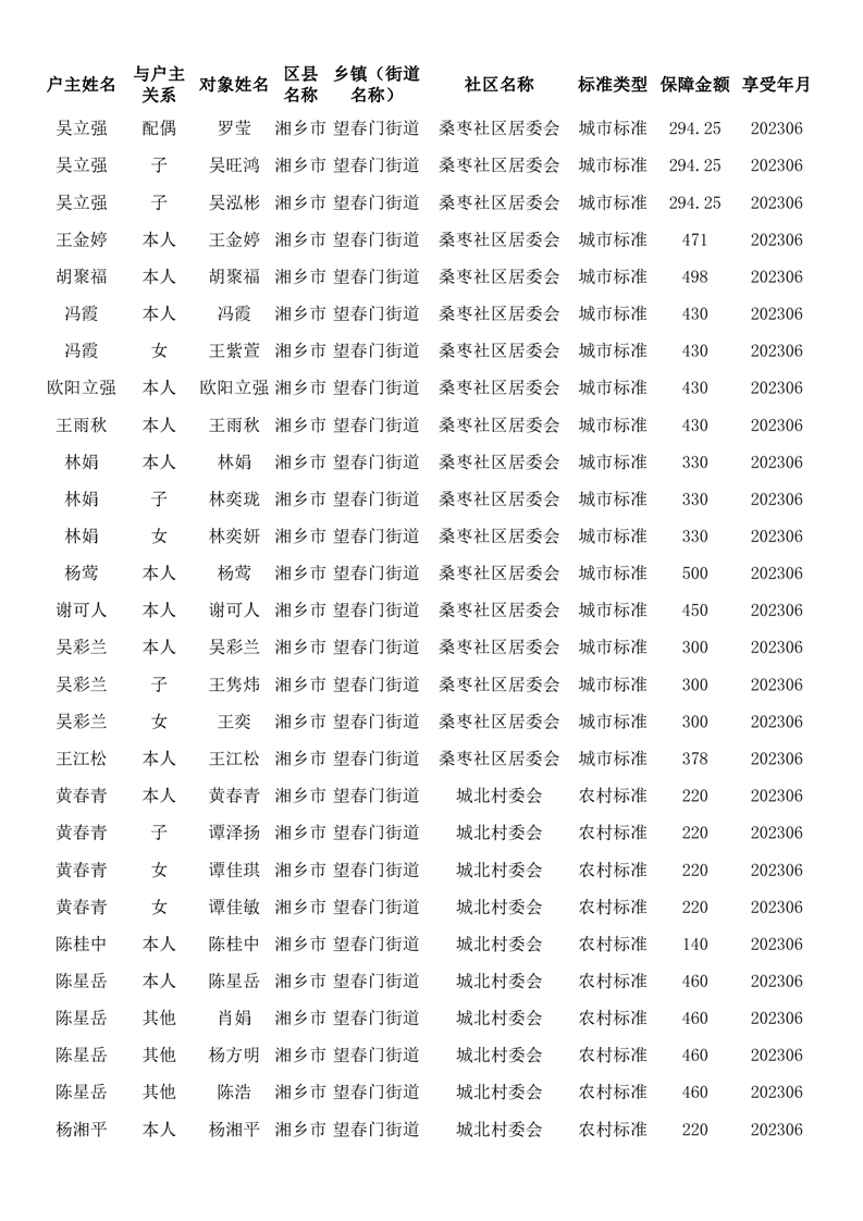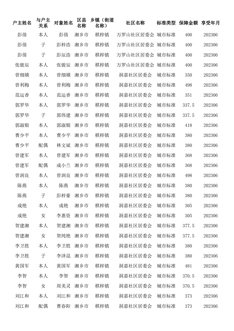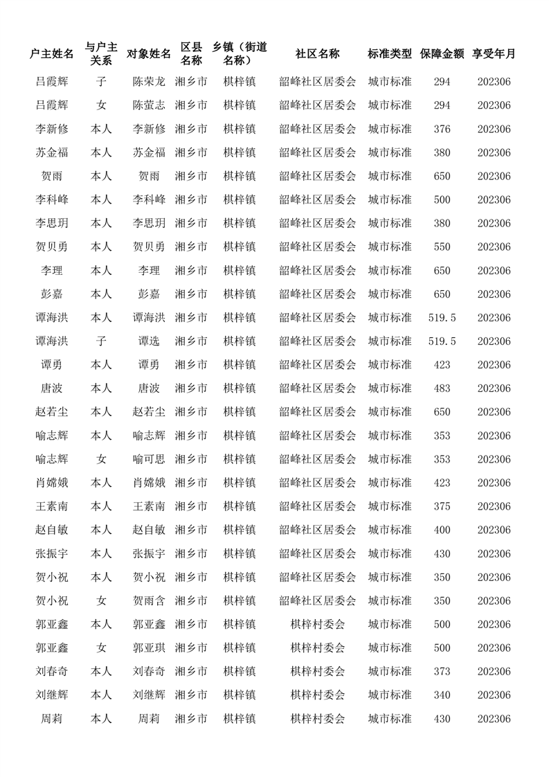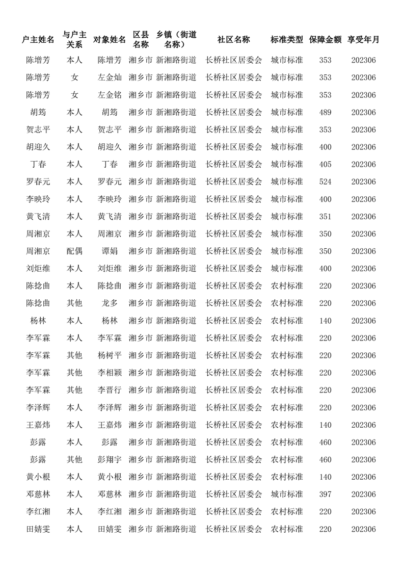 湘鄉(xiāng)市2023年6月城鄉(xiāng)低保救助對象審批匯總表