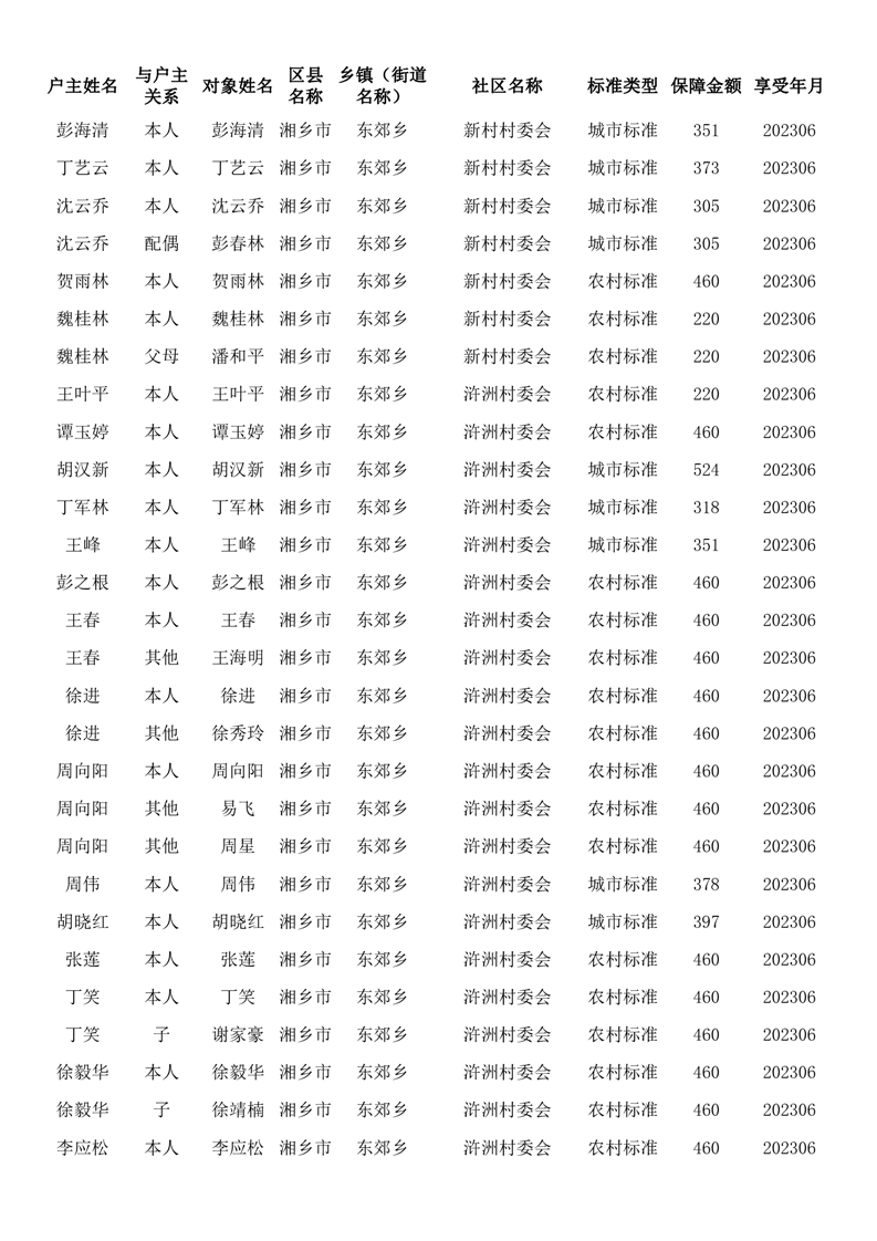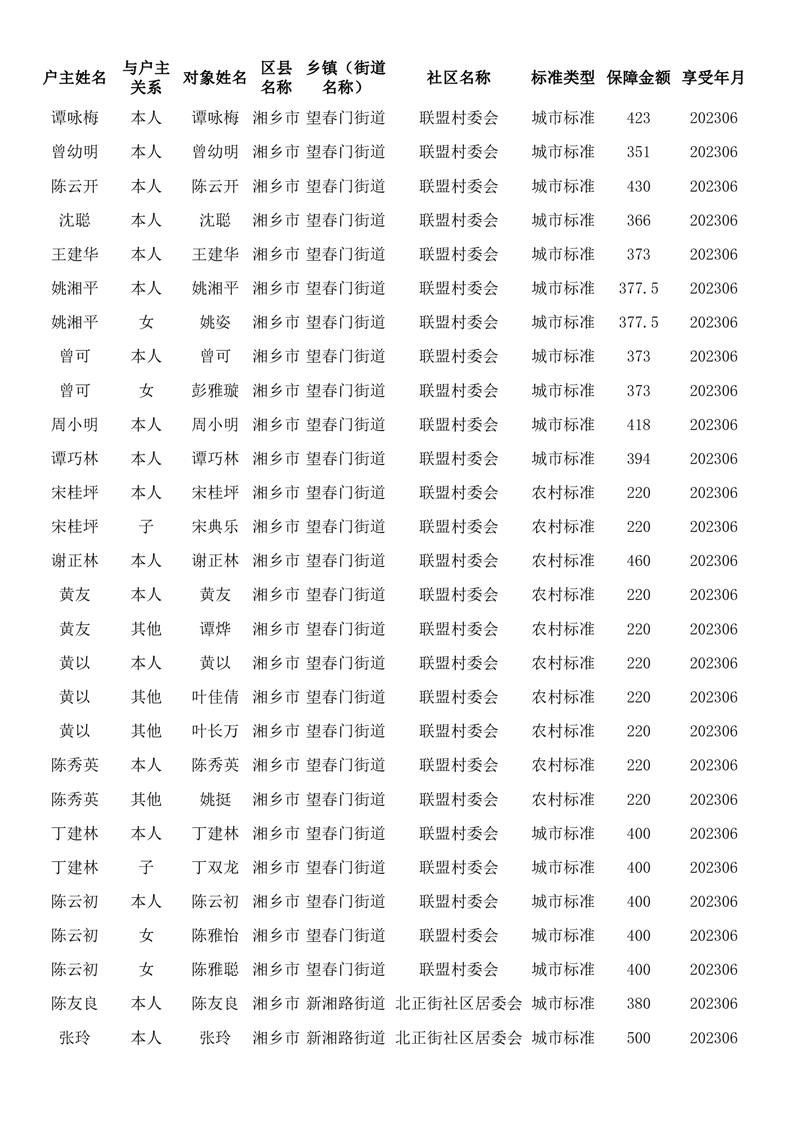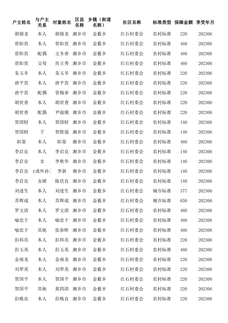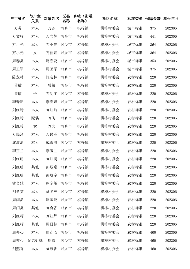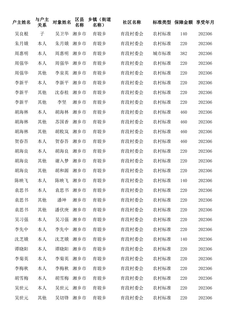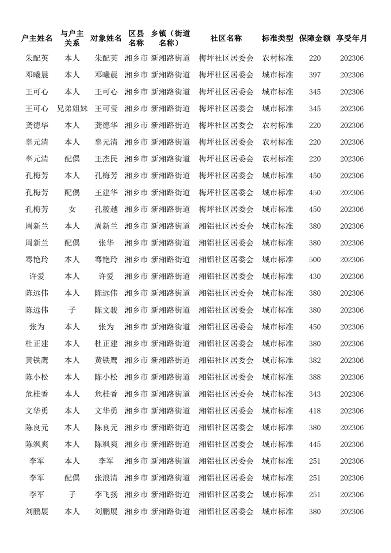 湘鄉(xiāng)市2023年6月城鄉(xiāng)低保救助對象審批匯總表