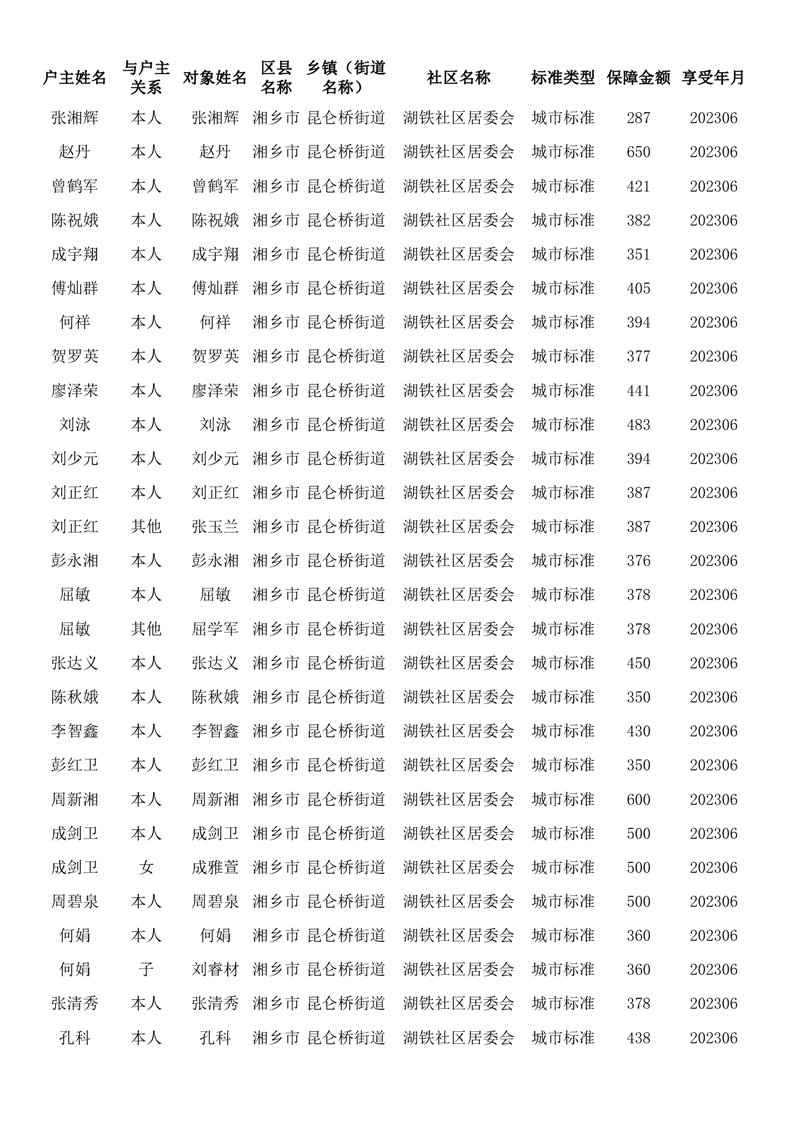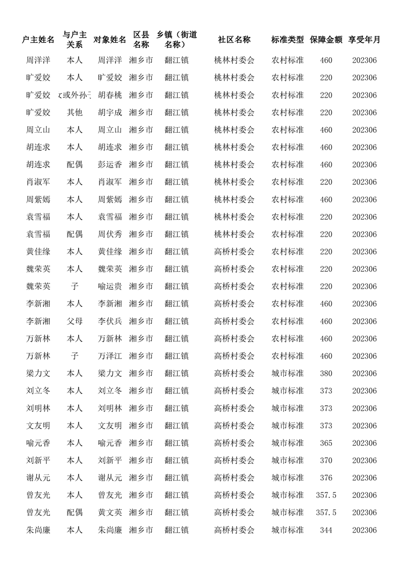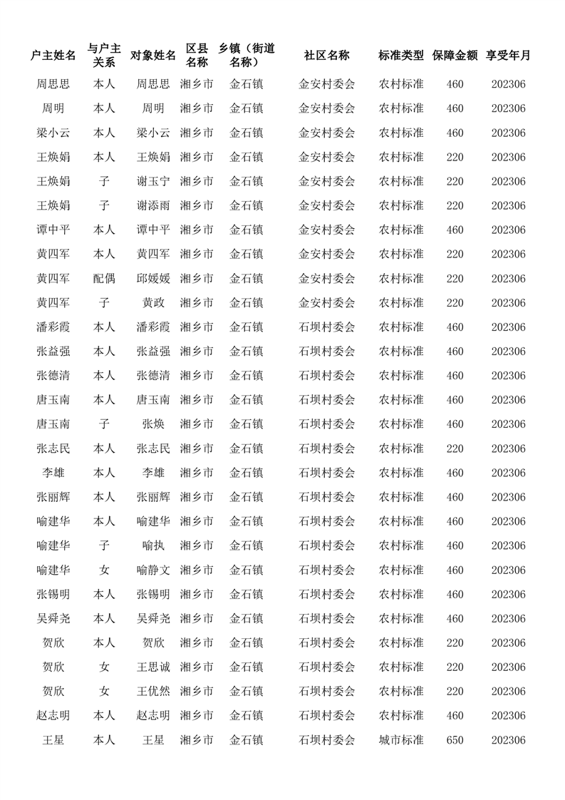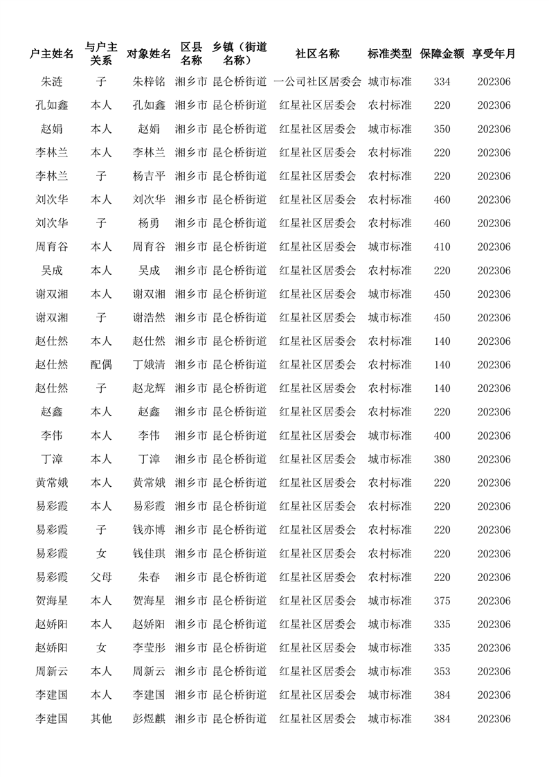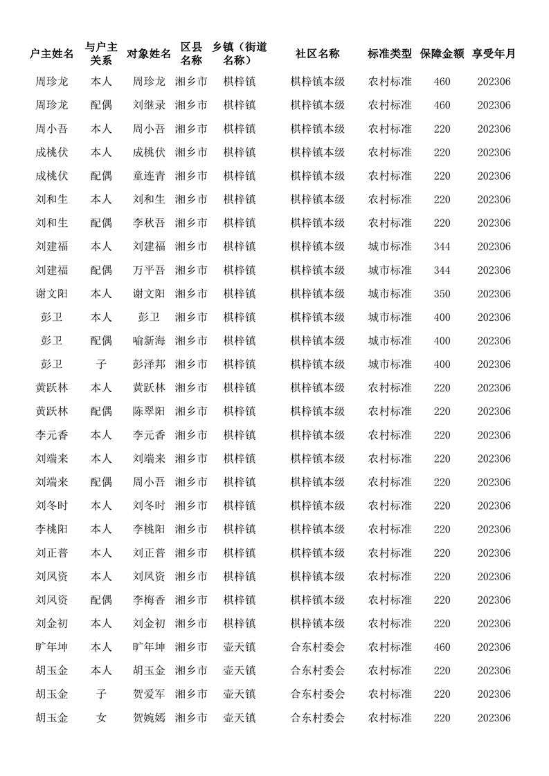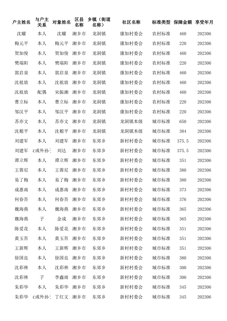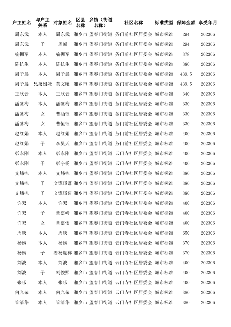 湘鄉(xiāng)市2023年6月城鄉(xiāng)低保救助對象審批匯總表