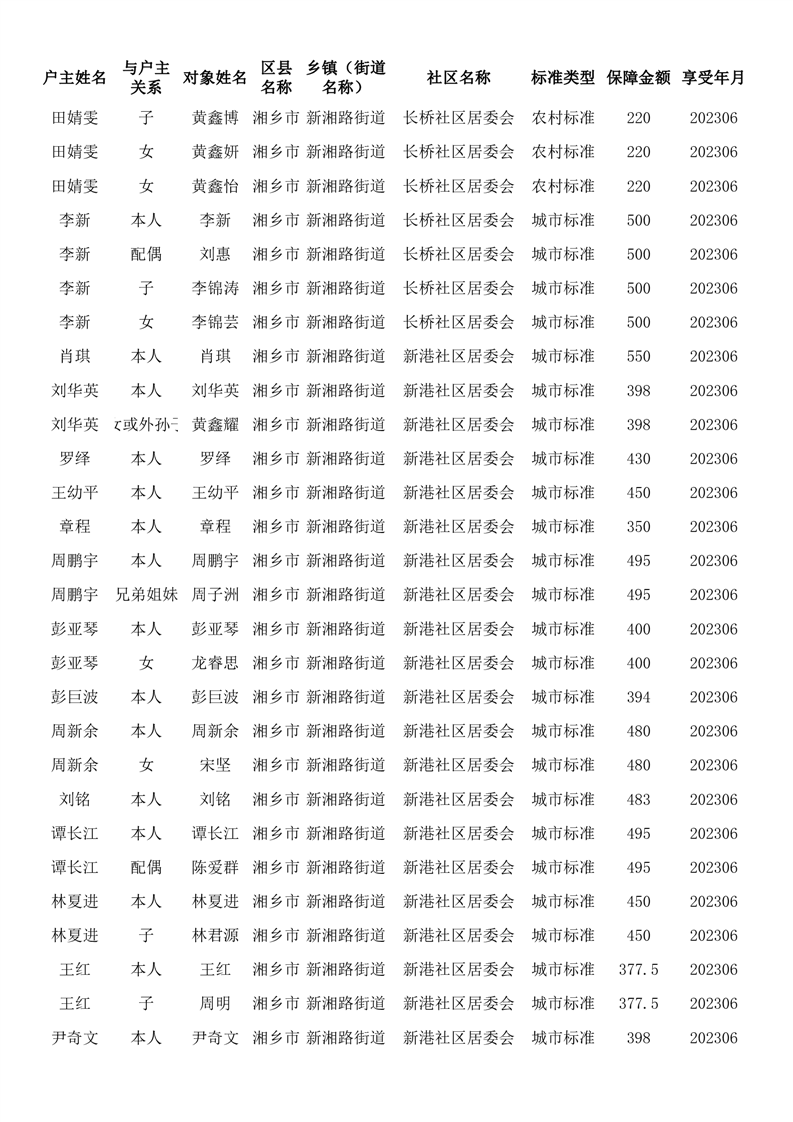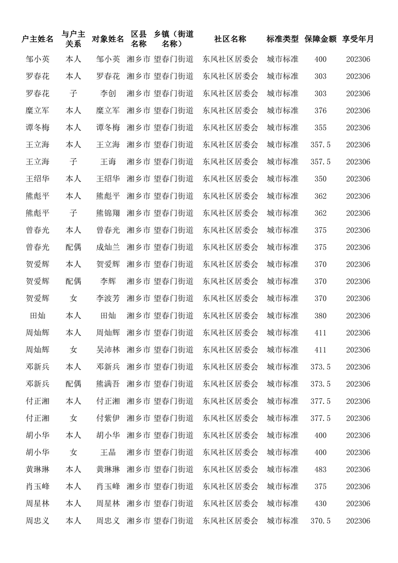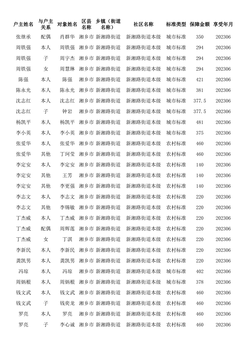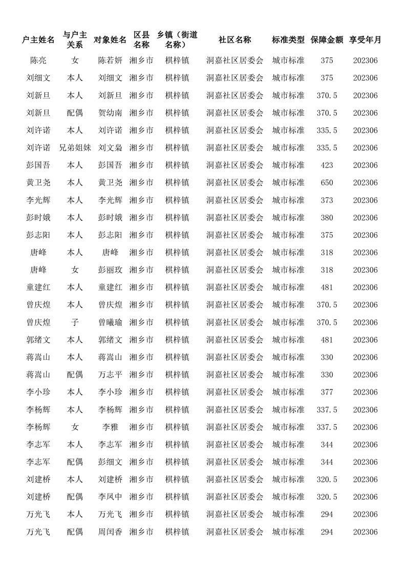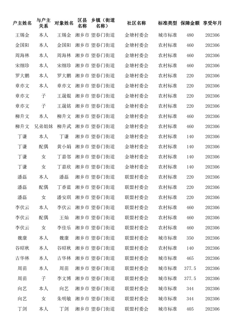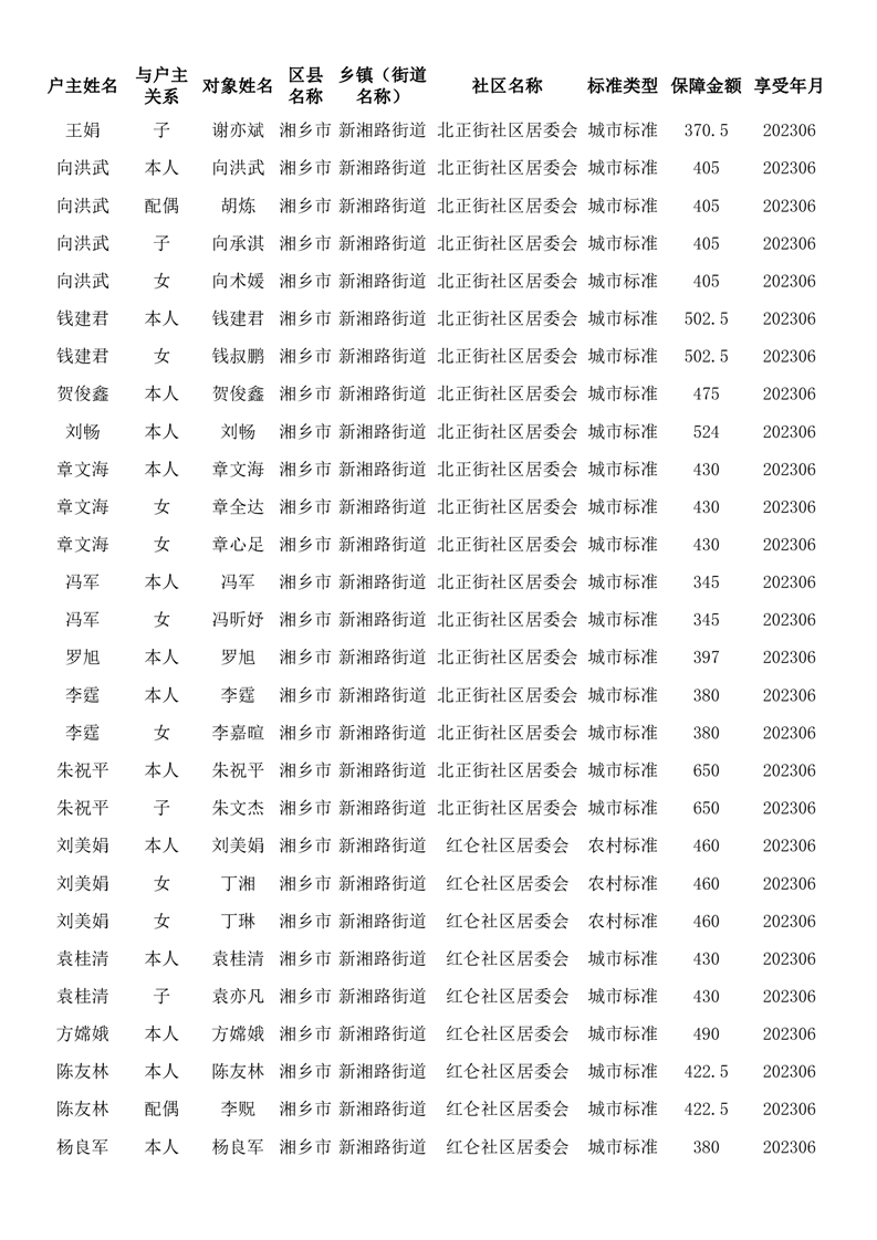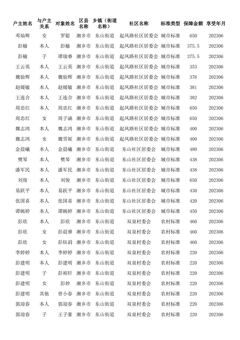 湘鄉(xiāng)市2023年6月城鄉(xiāng)低保救助對象審批匯總表