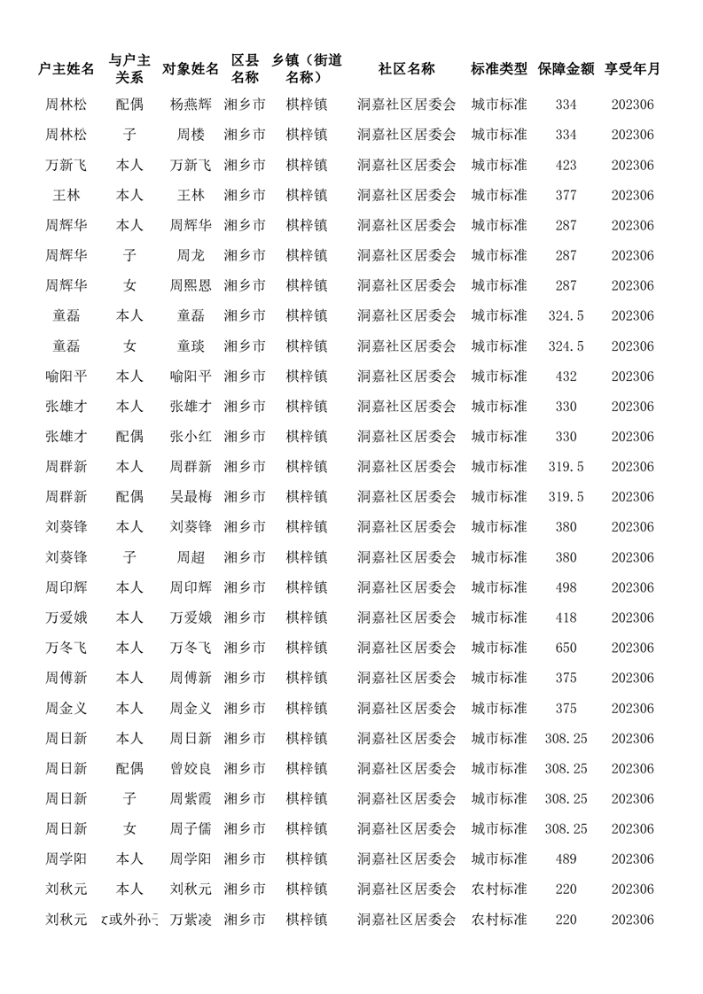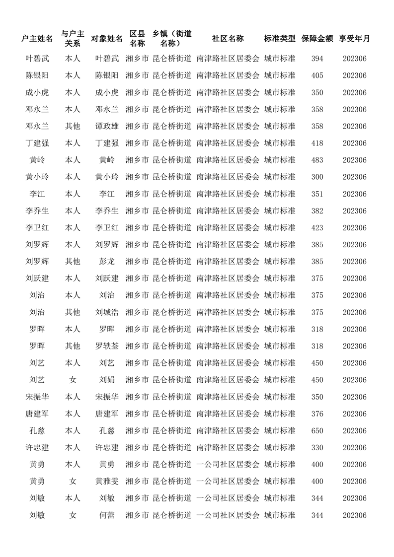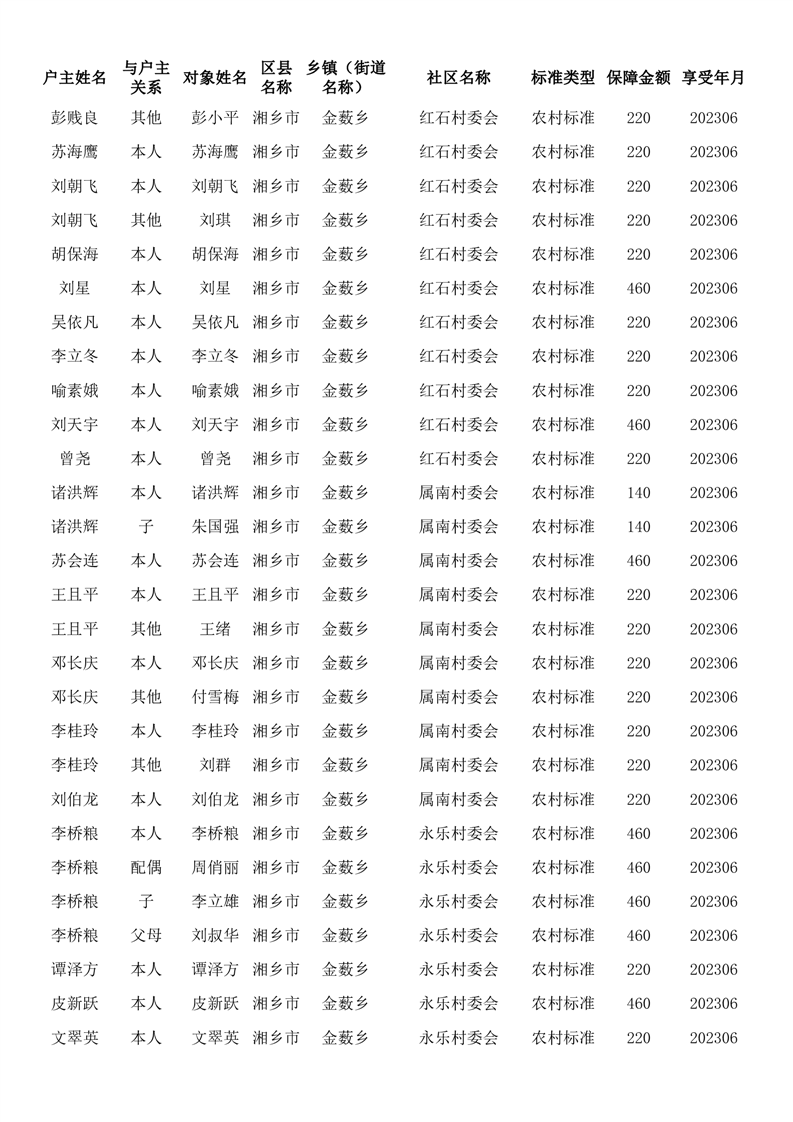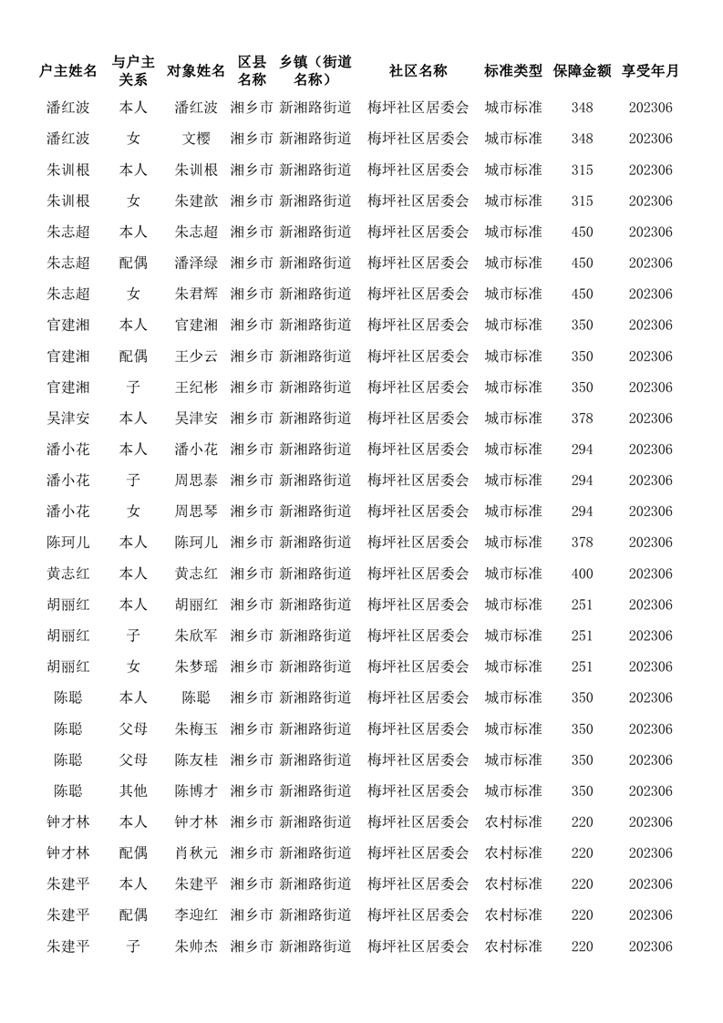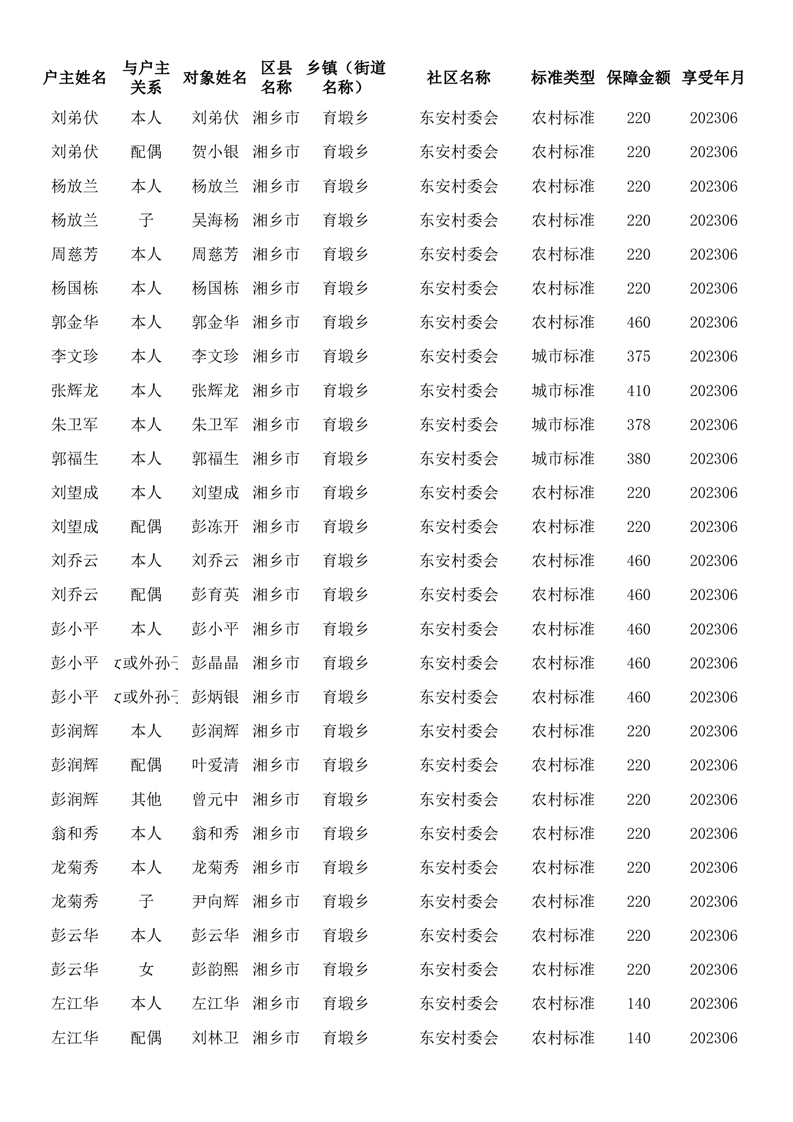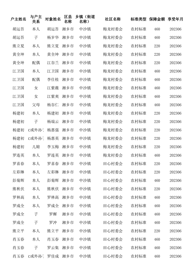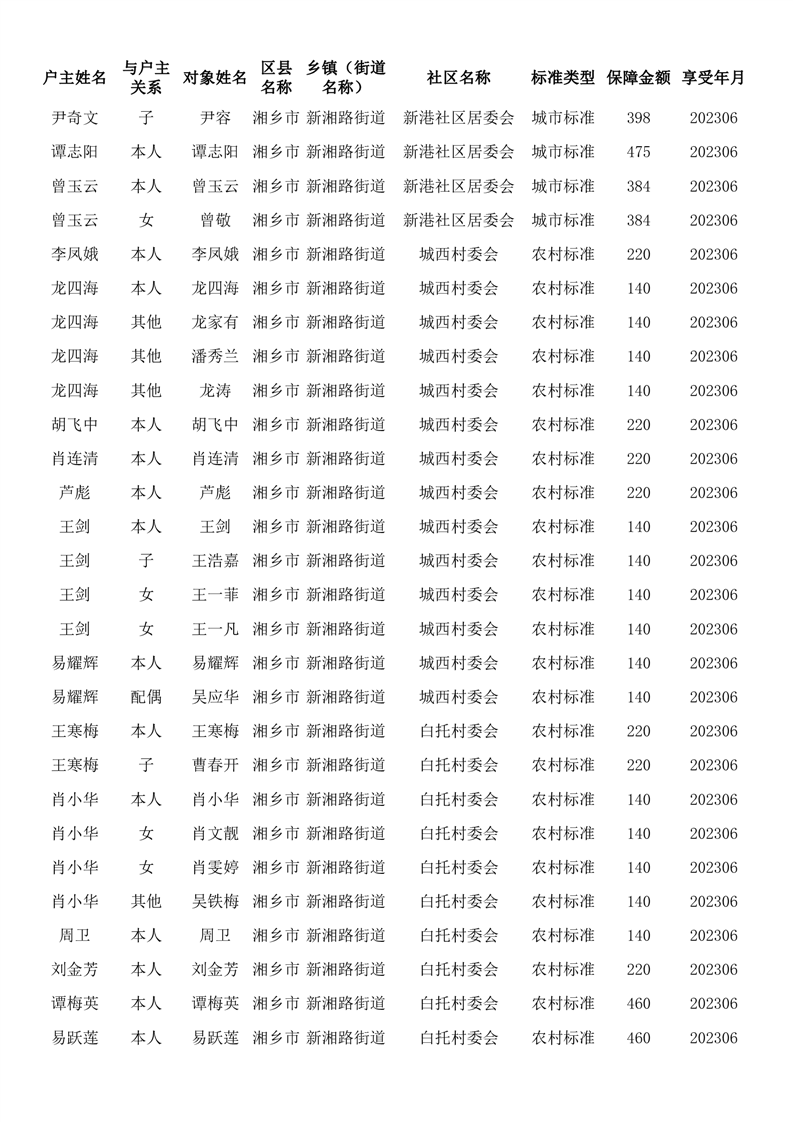 湘鄉(xiāng)市2023年6月城鄉(xiāng)低保救助對象審批匯總表