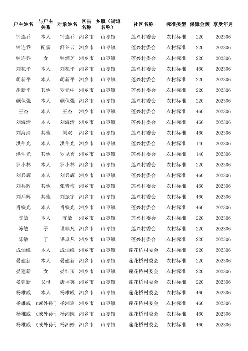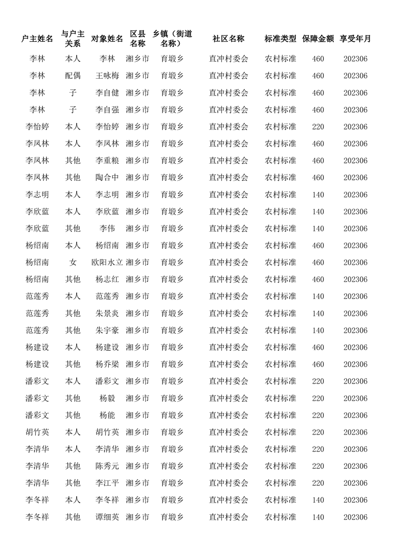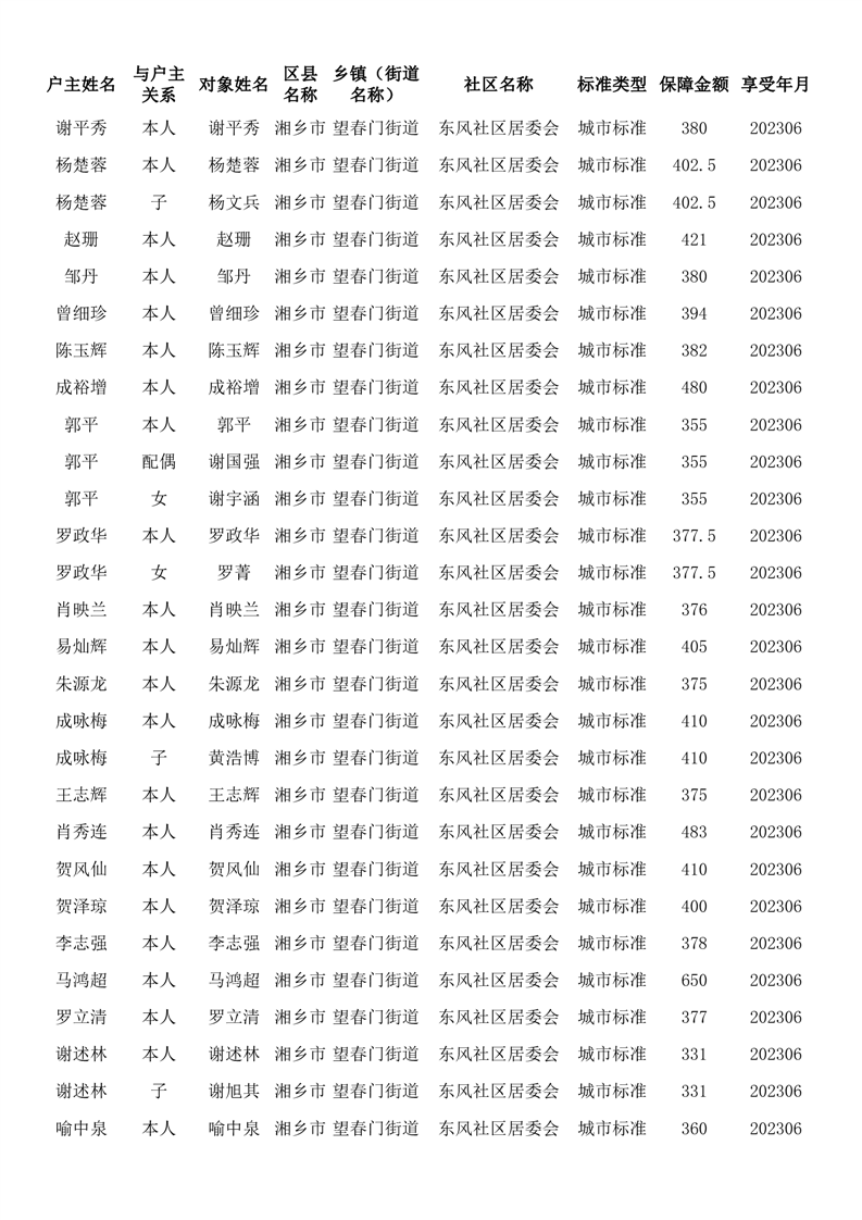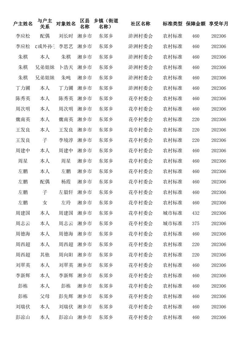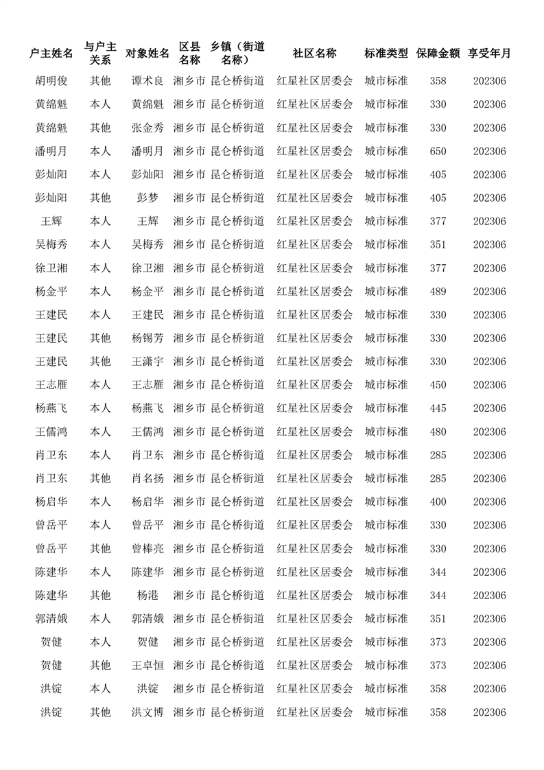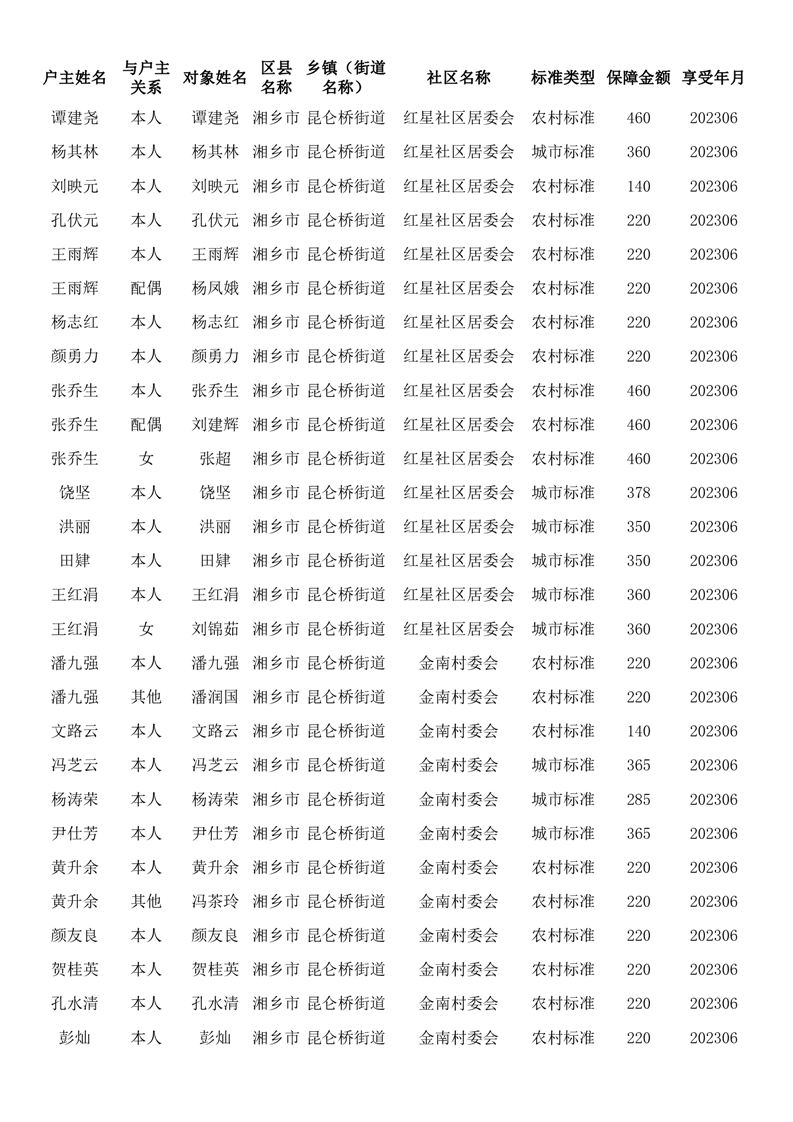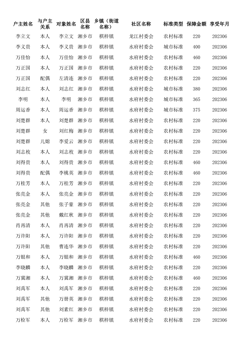 湘鄉(xiāng)市2023年6月城鄉(xiāng)低保救助對象審批匯總表