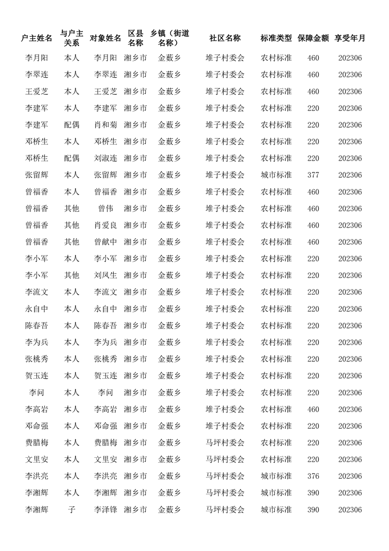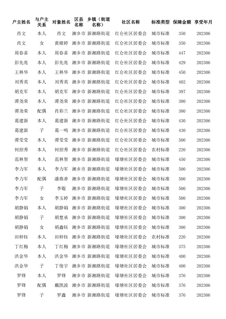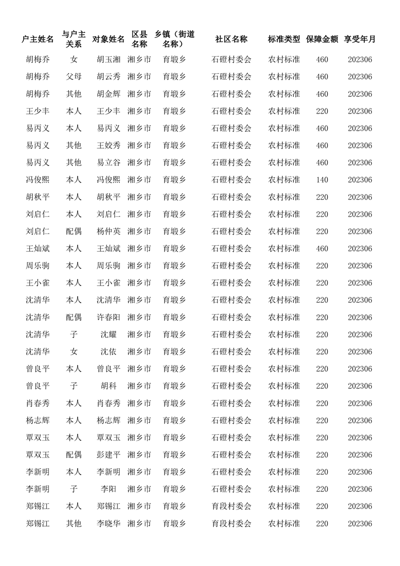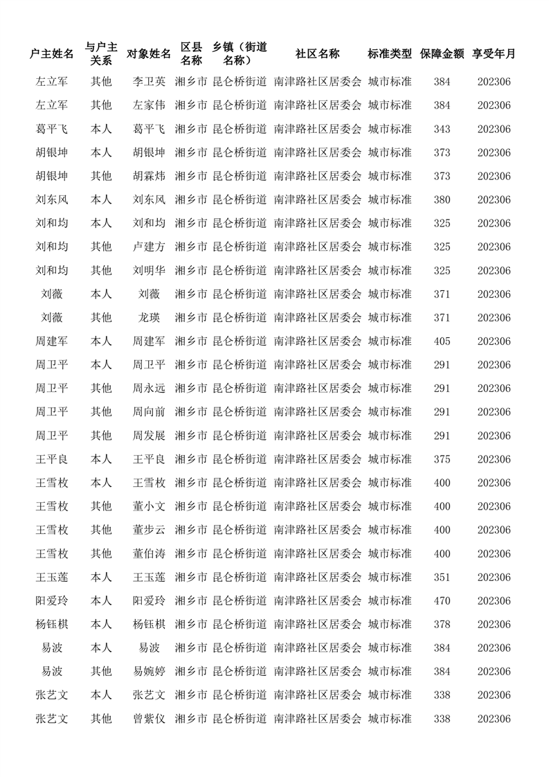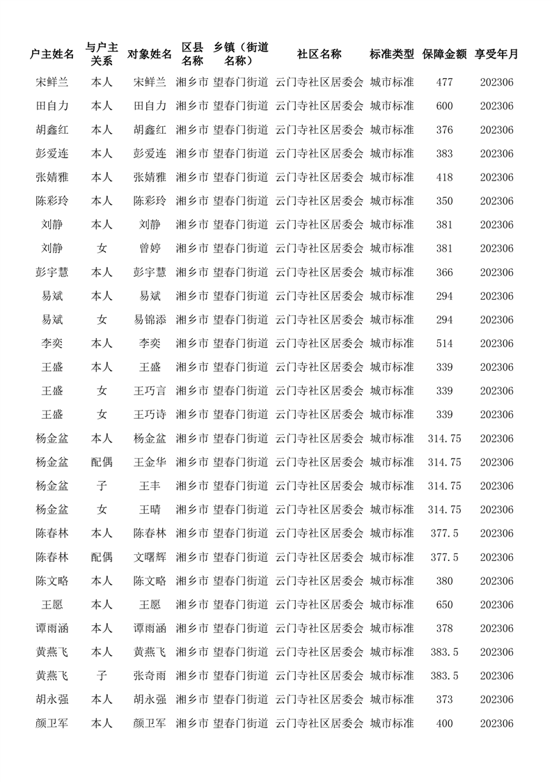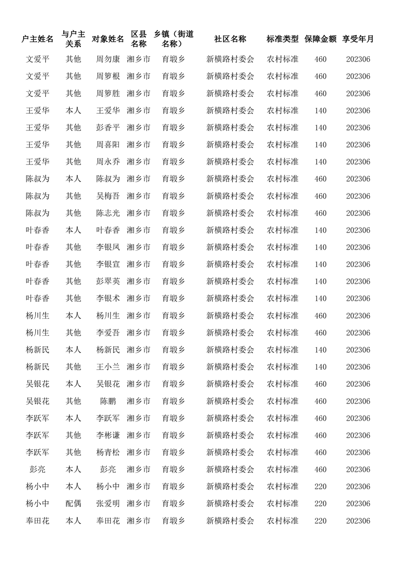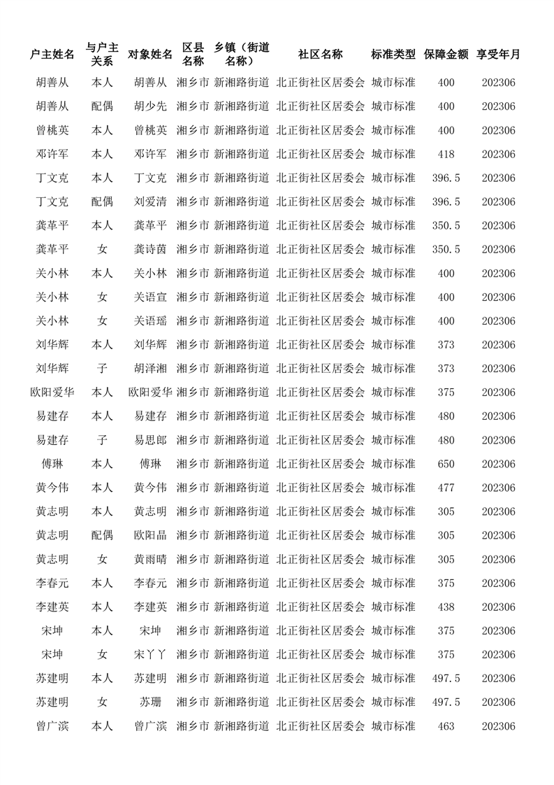 湘鄉(xiāng)市2023年6月城鄉(xiāng)低保救助對象審批匯總表