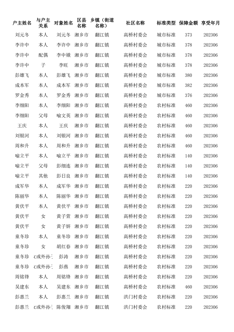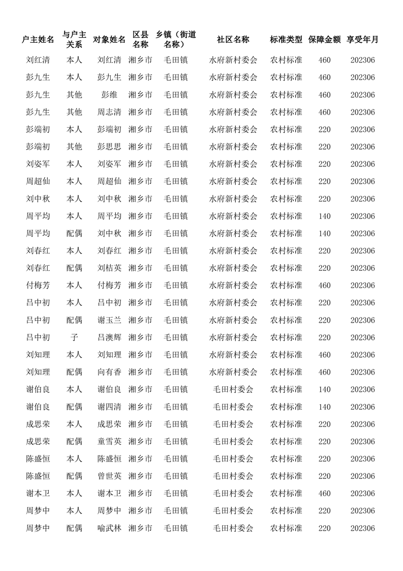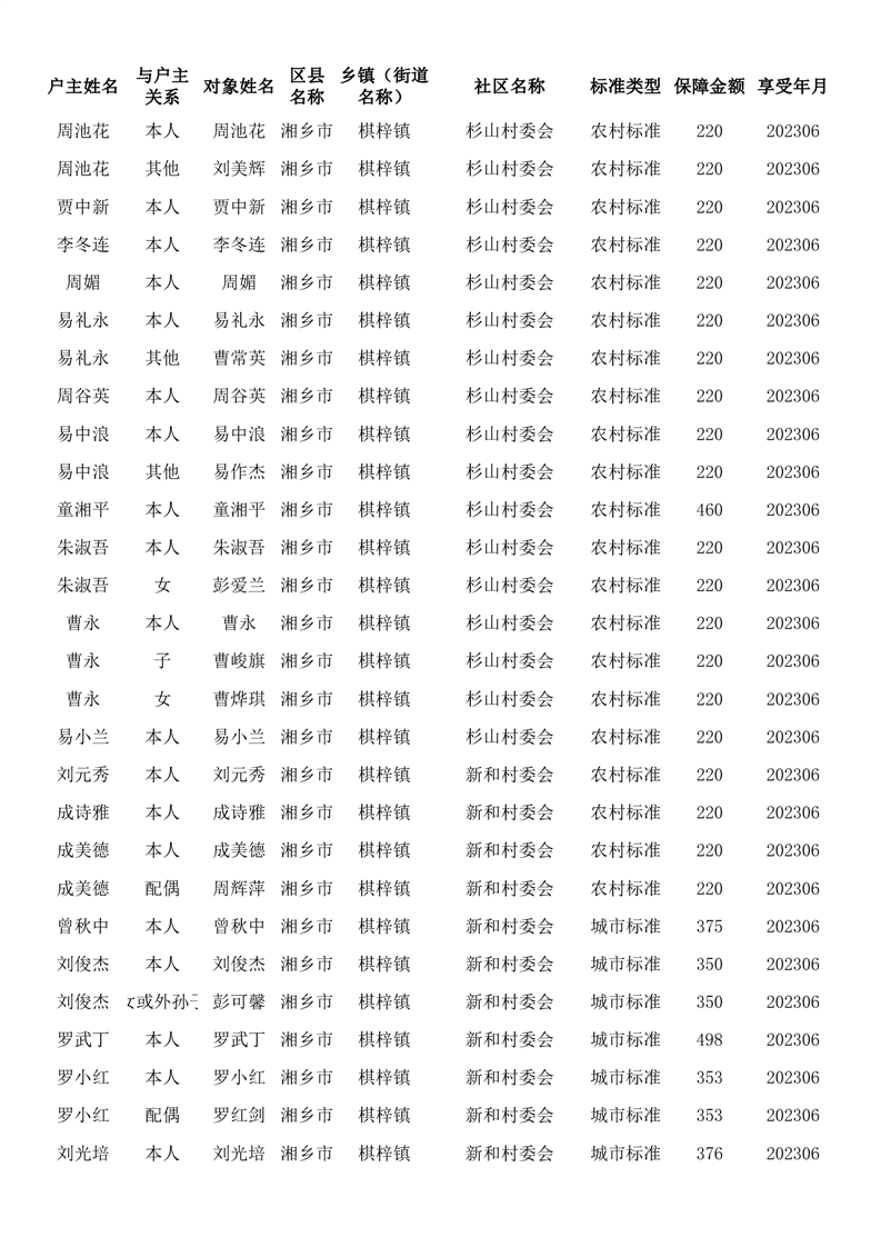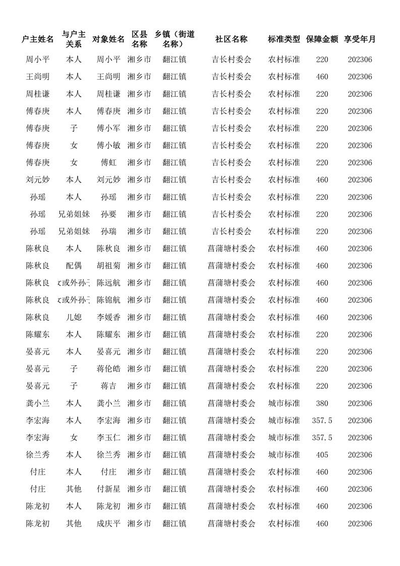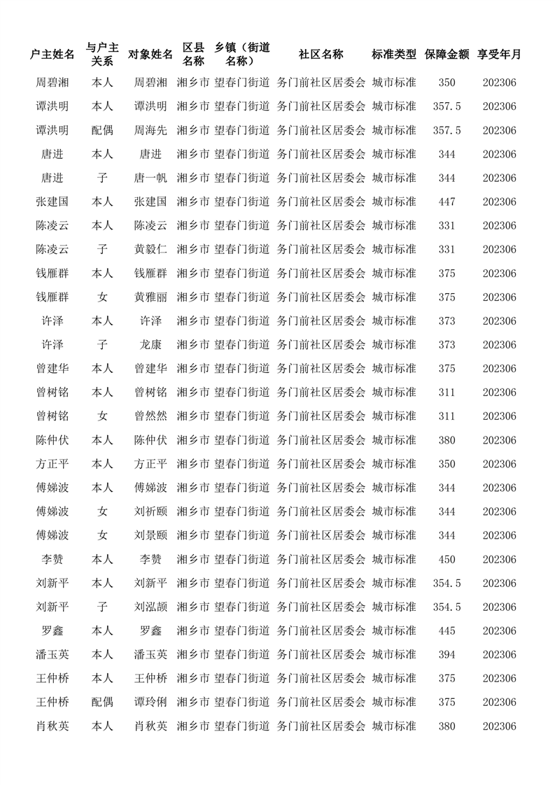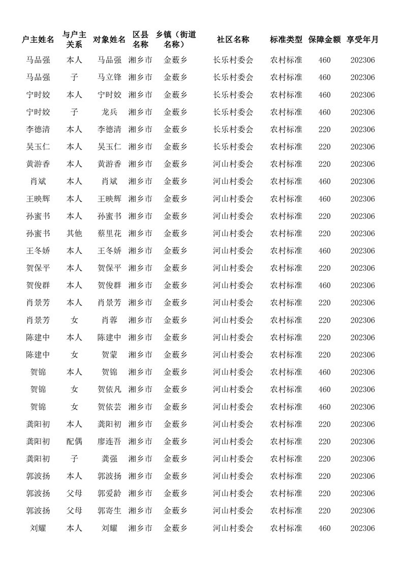 湘鄉(xiāng)市2023年6月城鄉(xiāng)低保救助對象審批匯總表