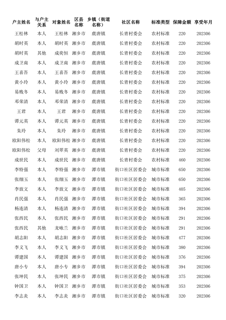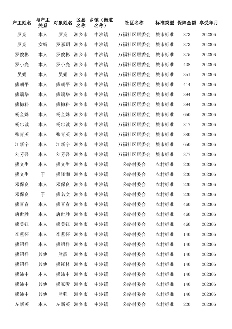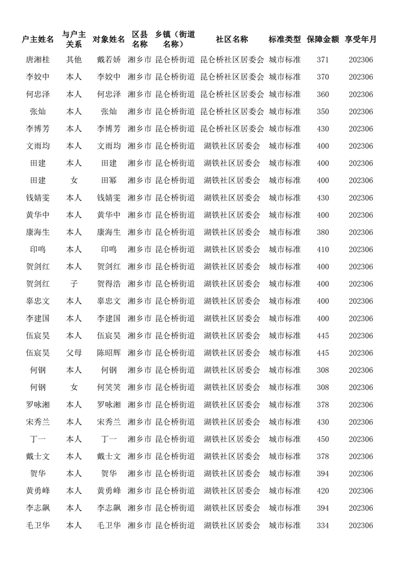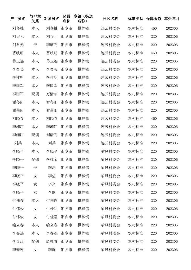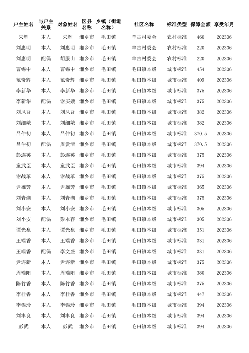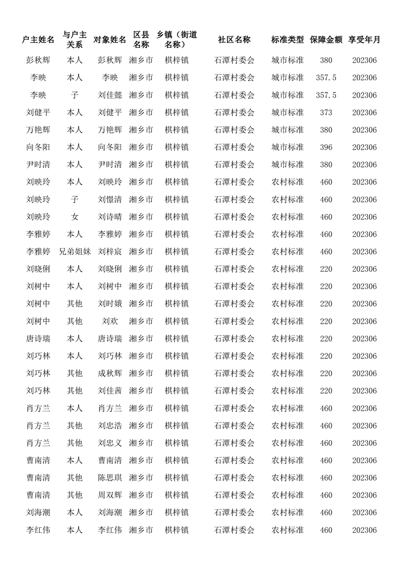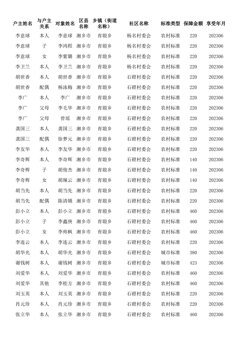 湘鄉(xiāng)市2023年6月城鄉(xiāng)低保救助對象審批匯總表