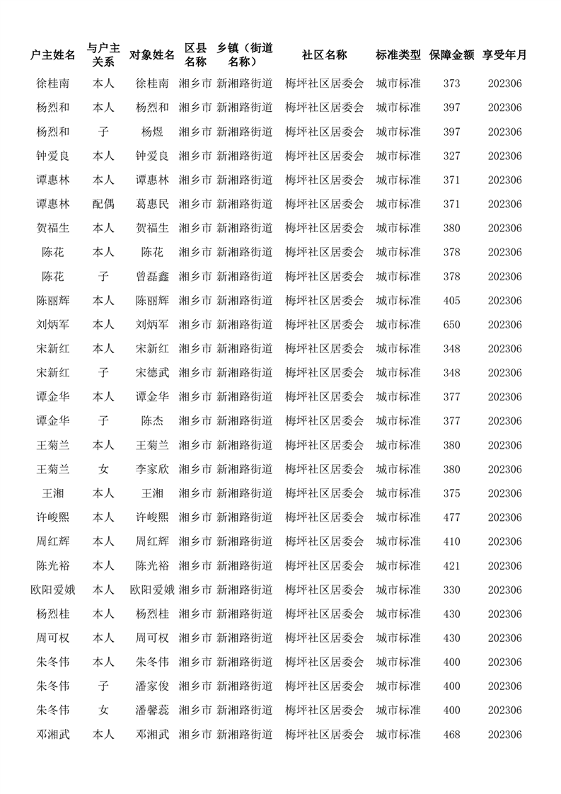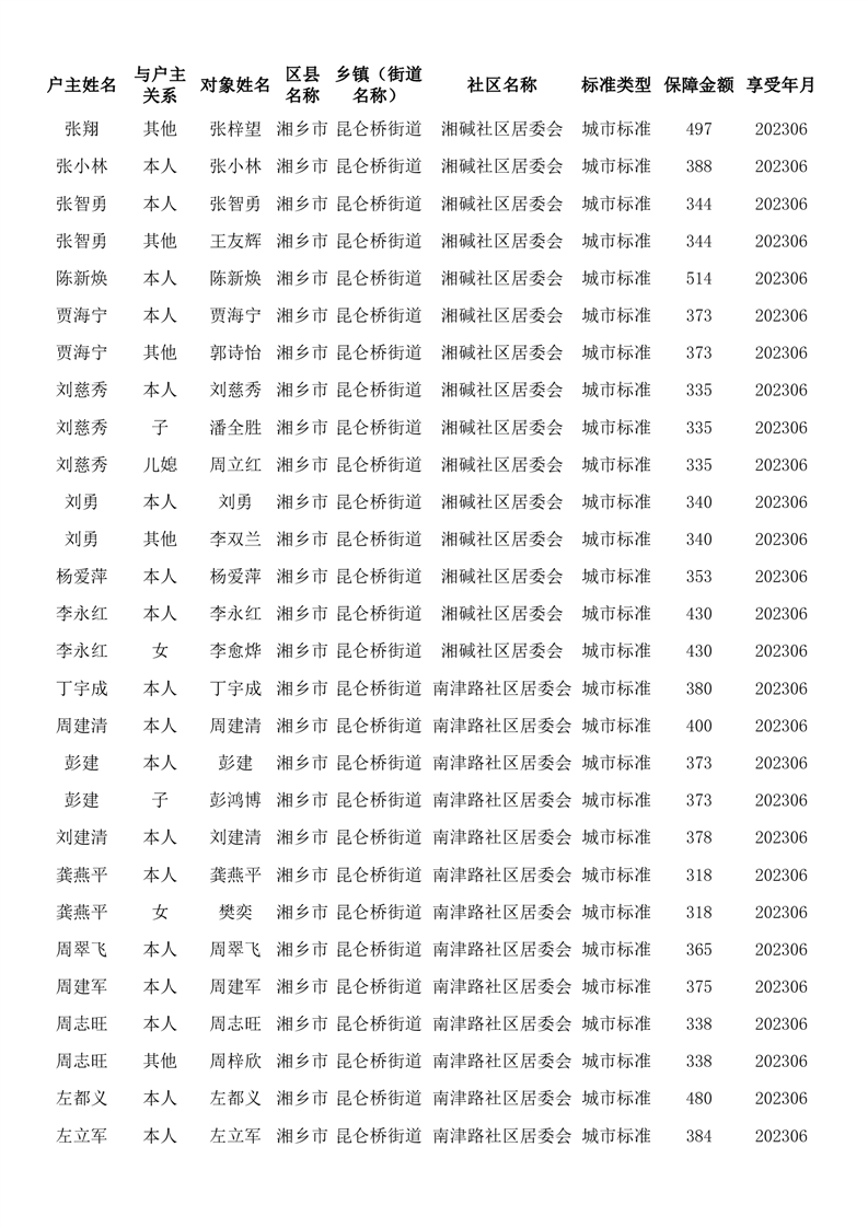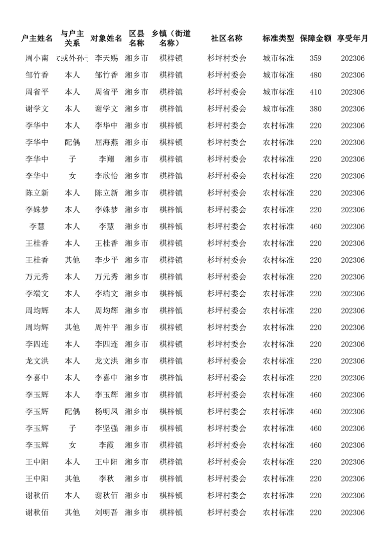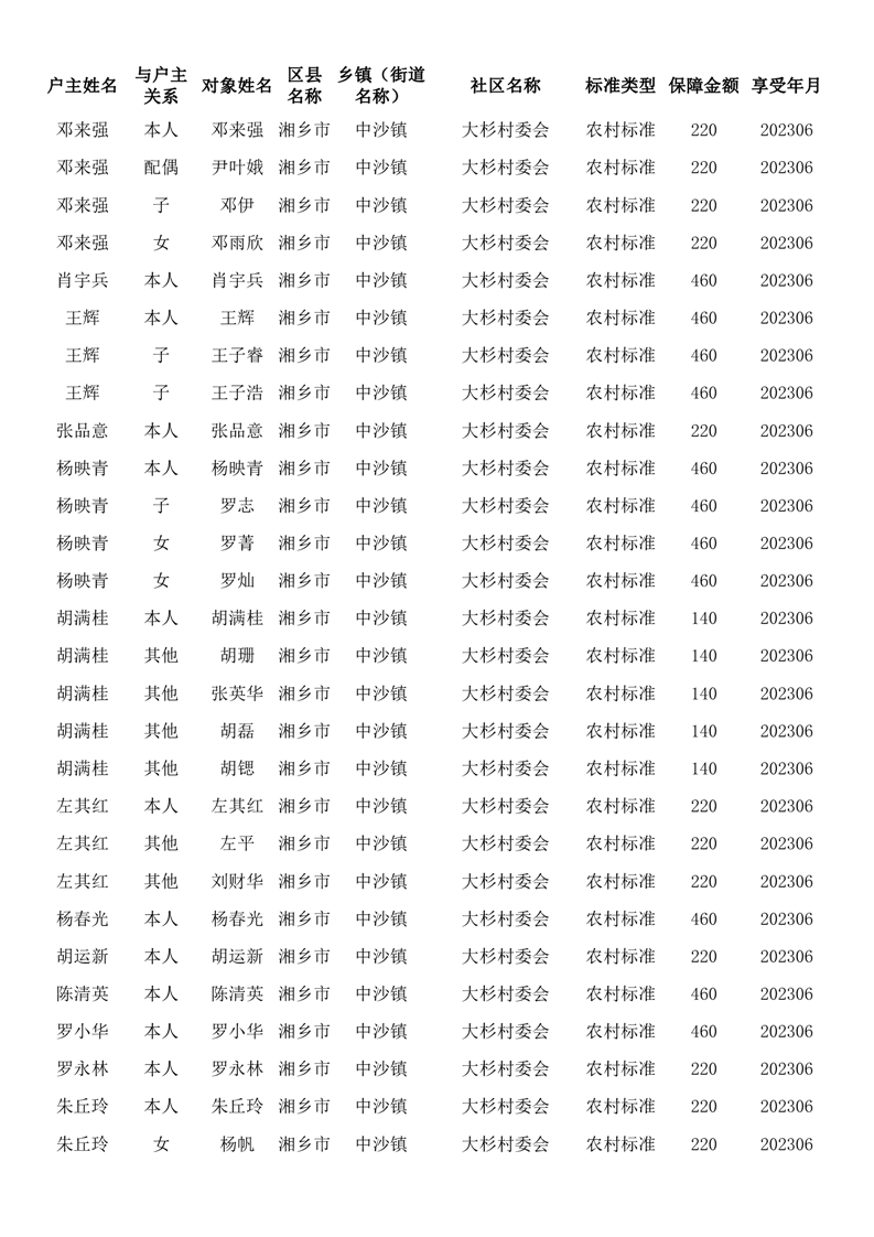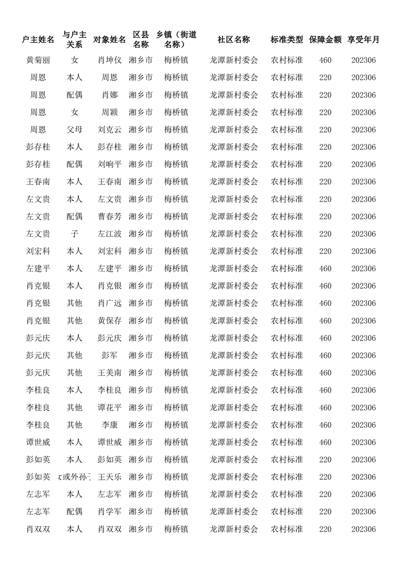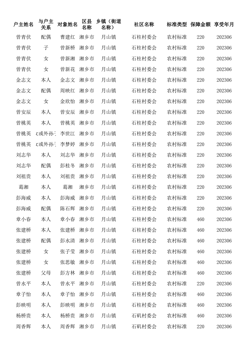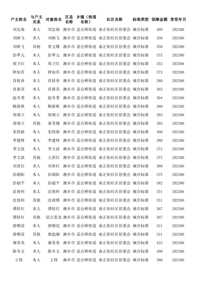 湘鄉(xiāng)市2023年6月城鄉(xiāng)低保救助對象審批匯總表