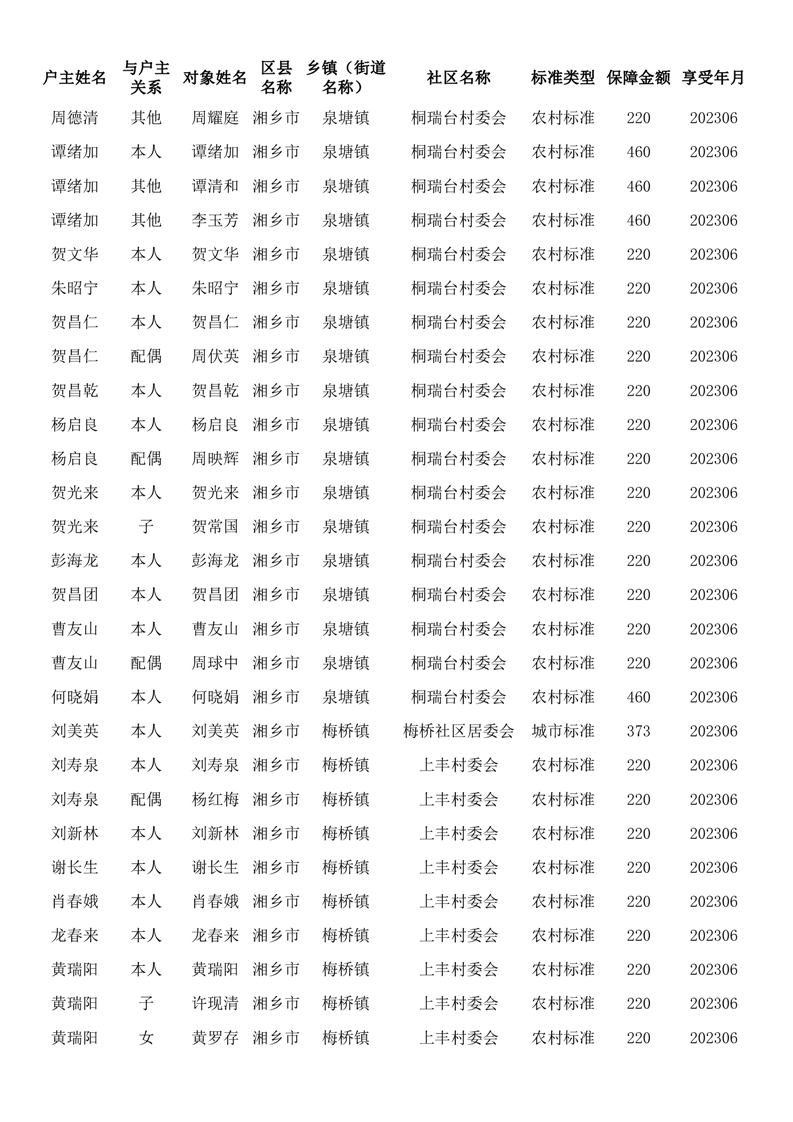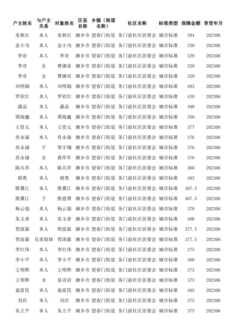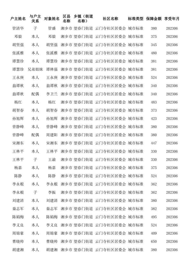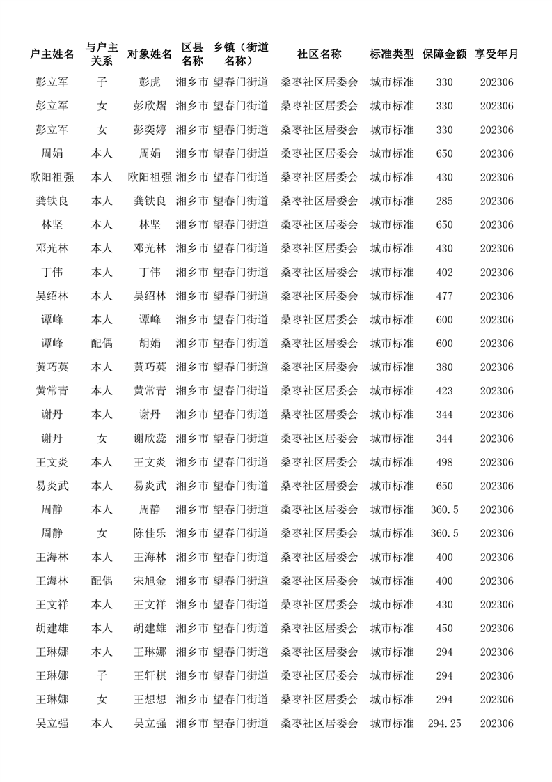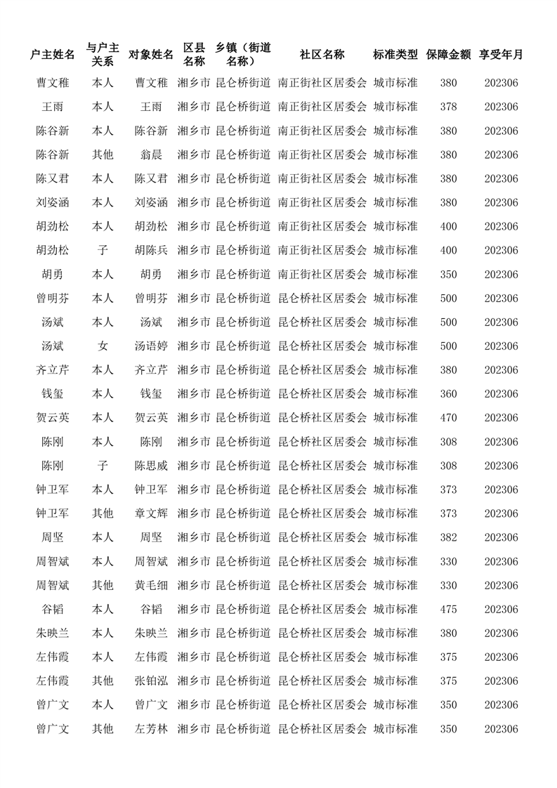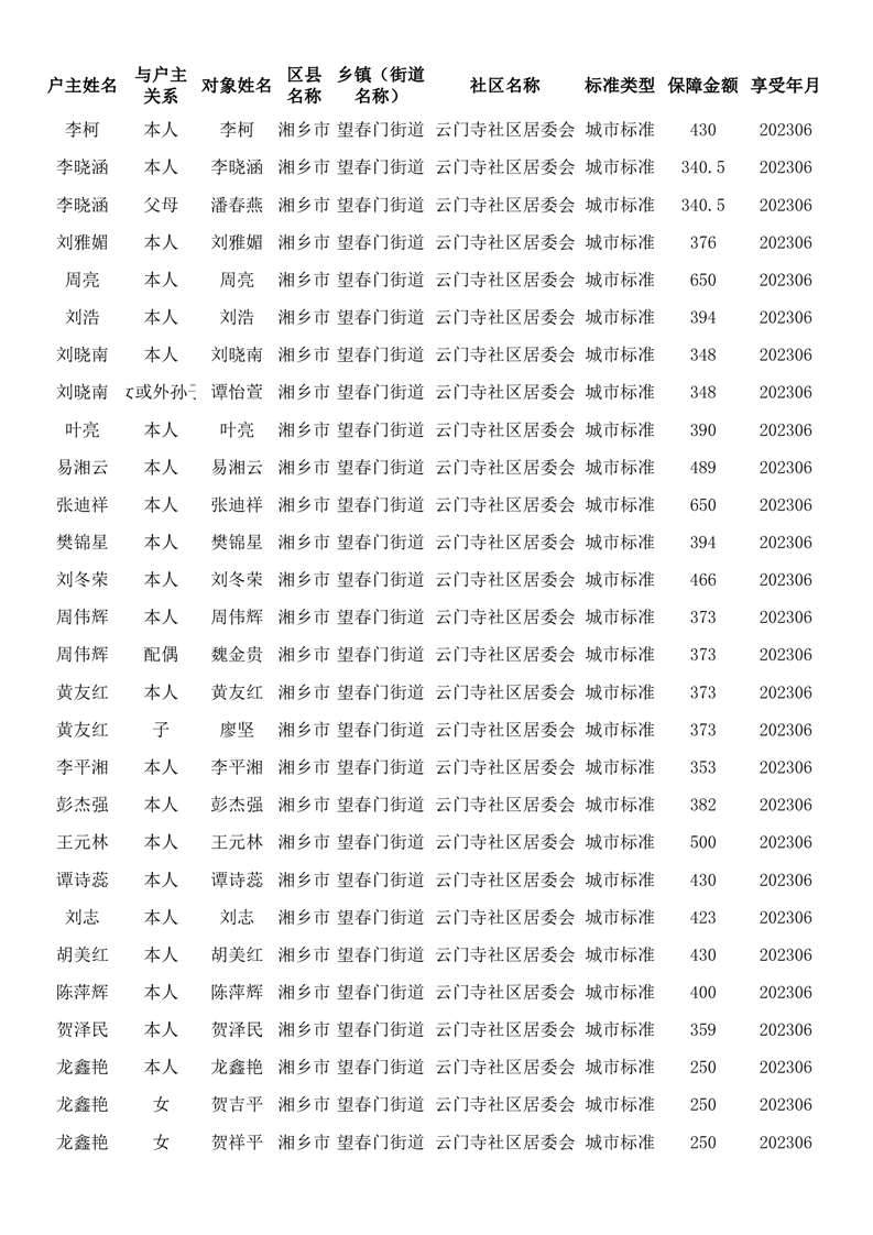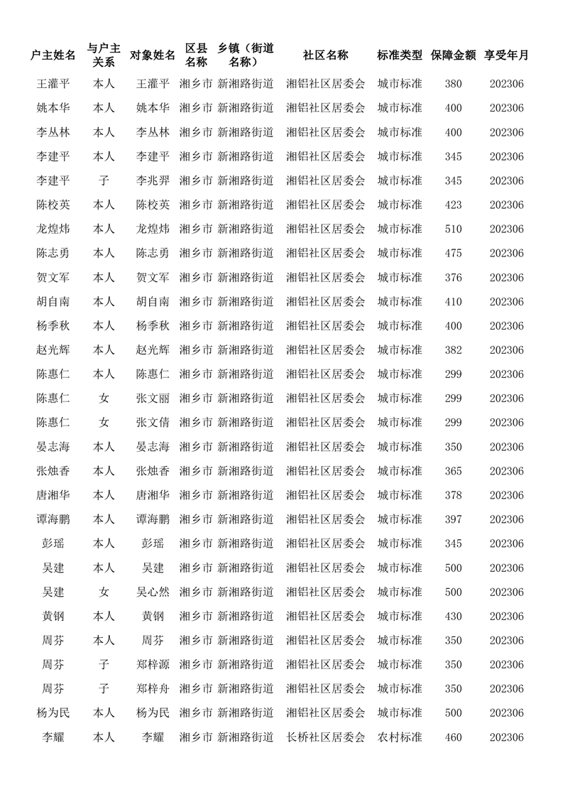 湘鄉(xiāng)市2023年6月城鄉(xiāng)低保救助對象審批匯總表