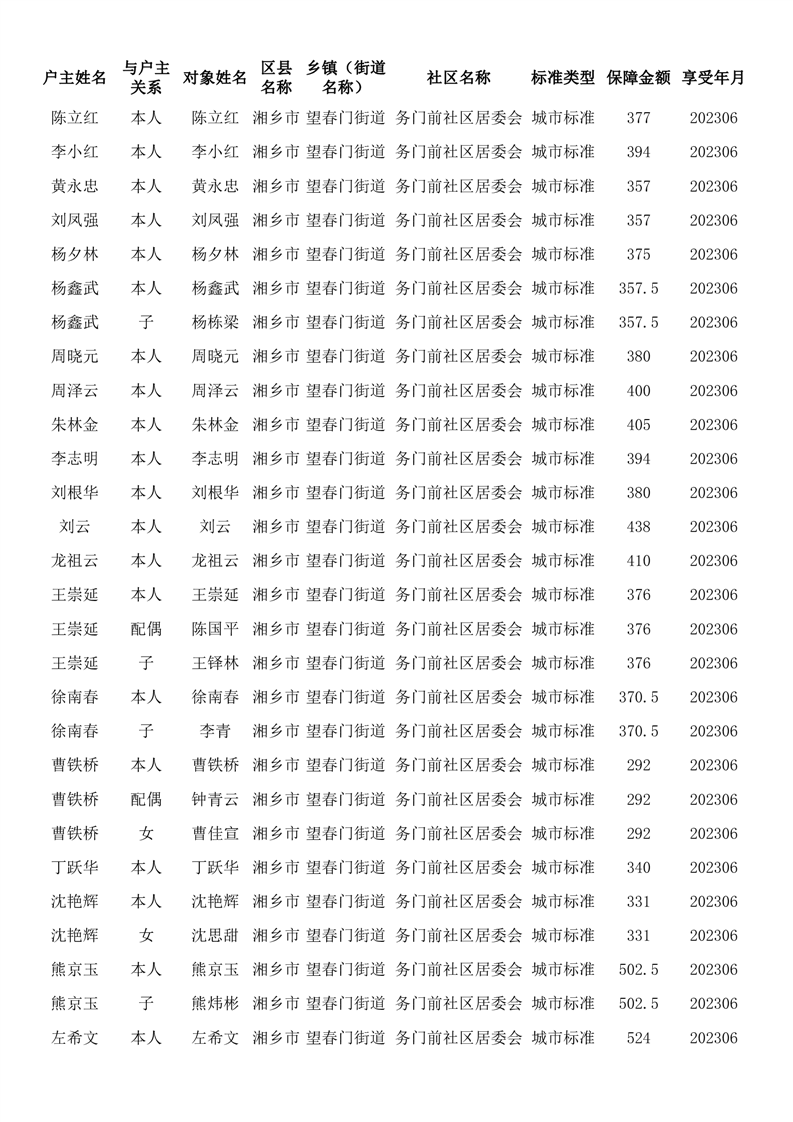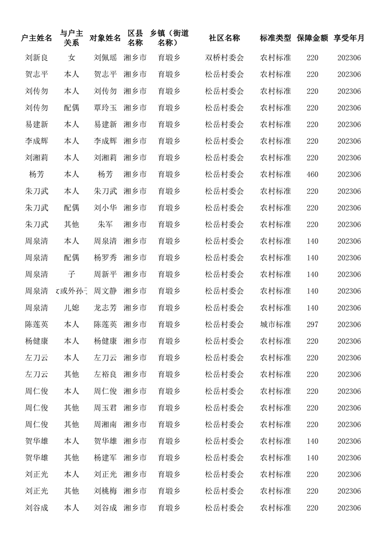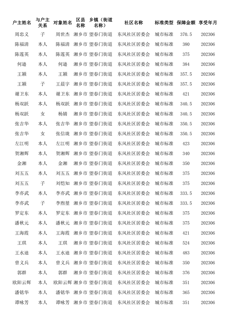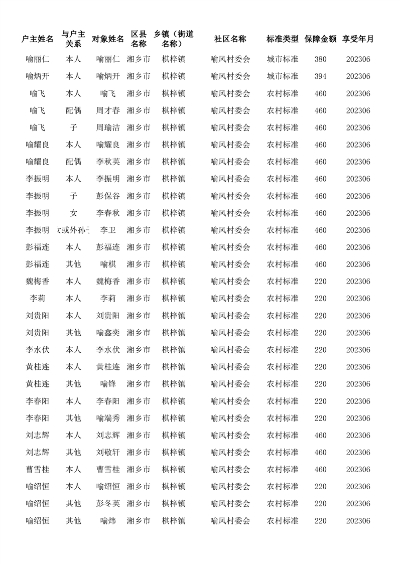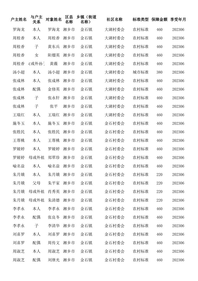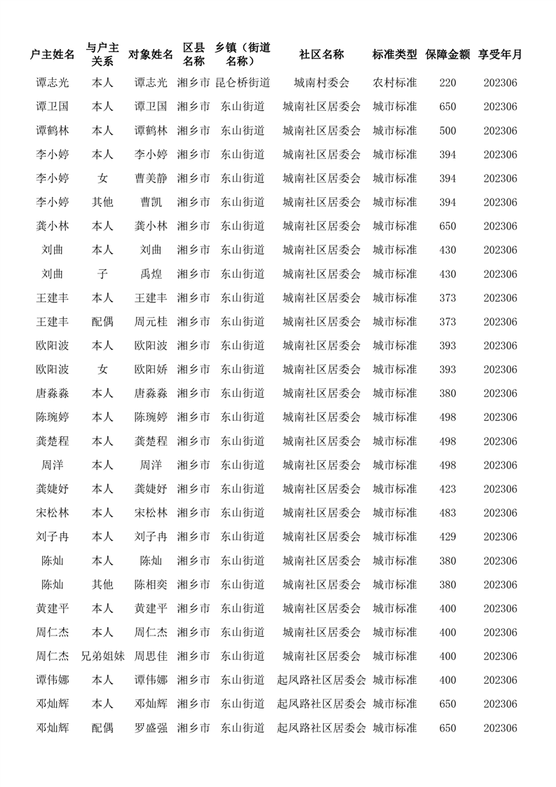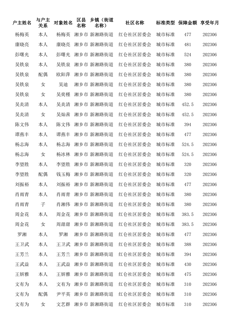 湘鄉(xiāng)市2023年6月城鄉(xiāng)低保救助對象審批匯總表