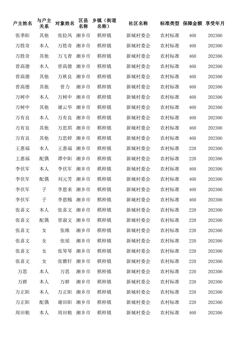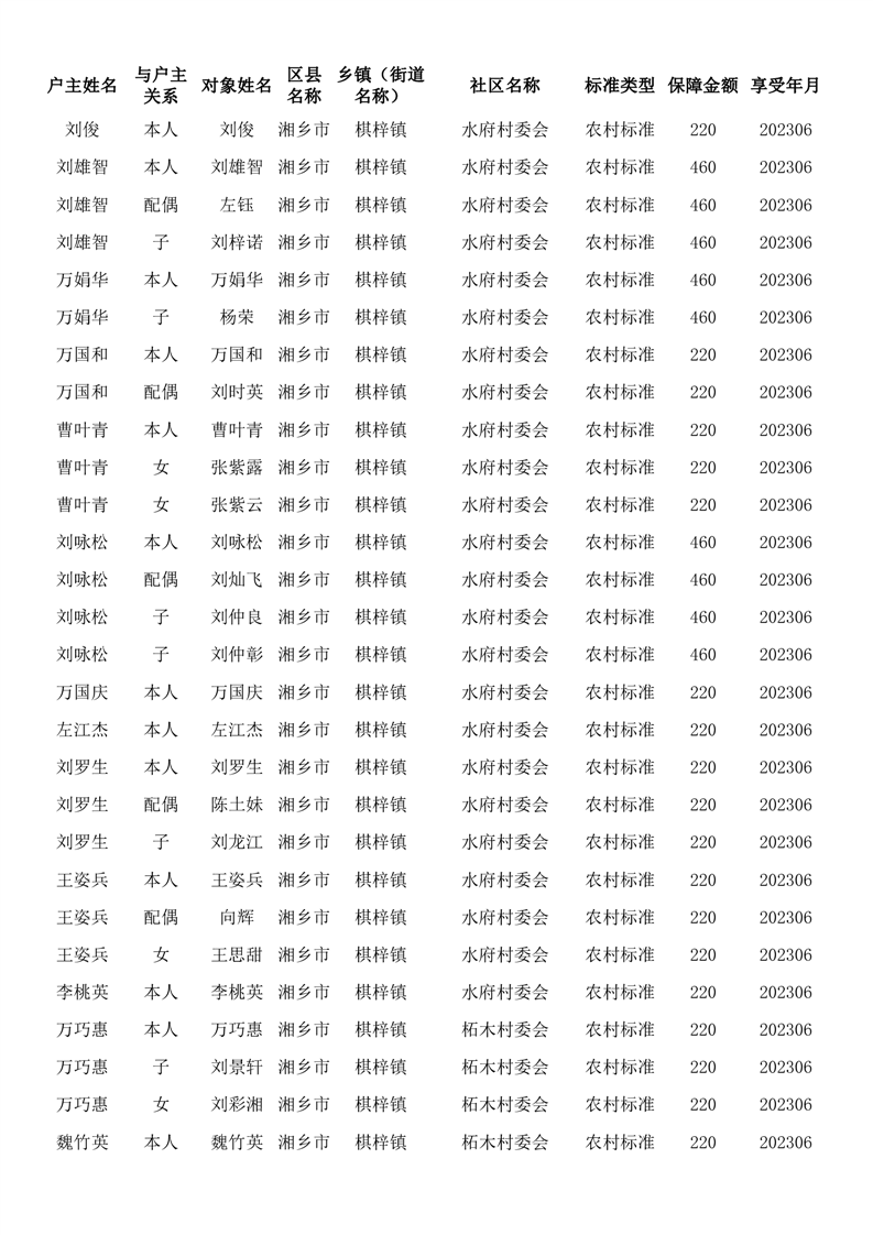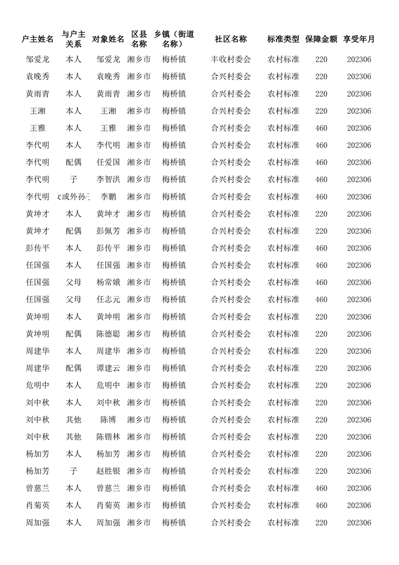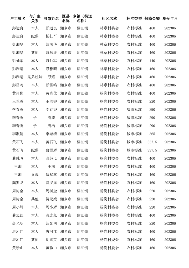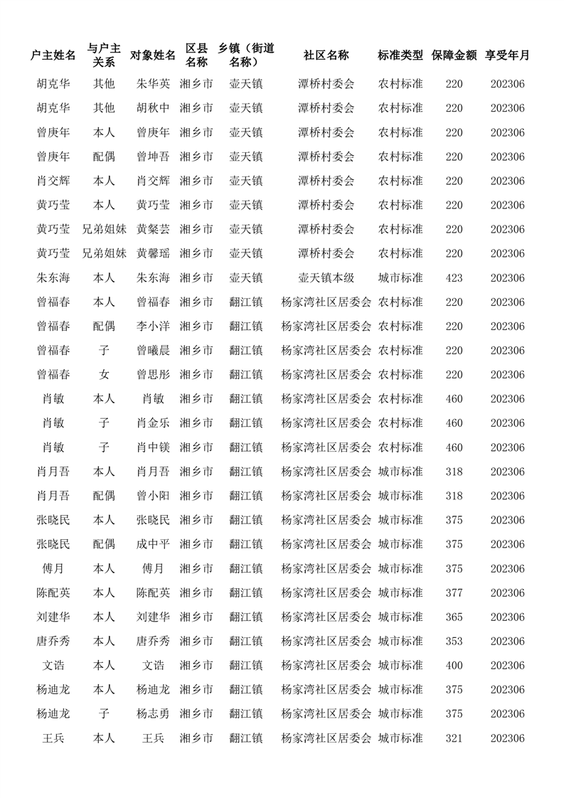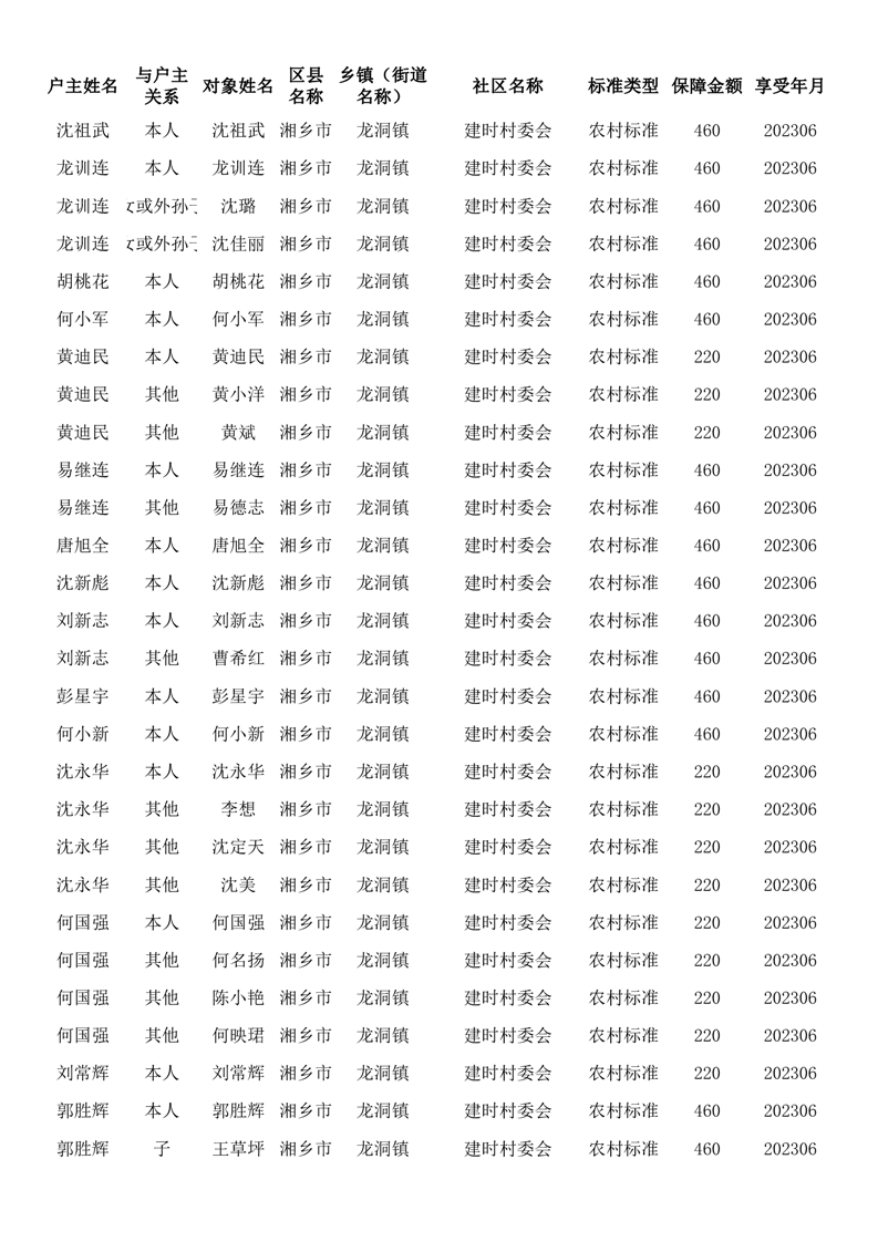 湘鄉(xiāng)市2023年6月城鄉(xiāng)低保救助對象審批匯總表