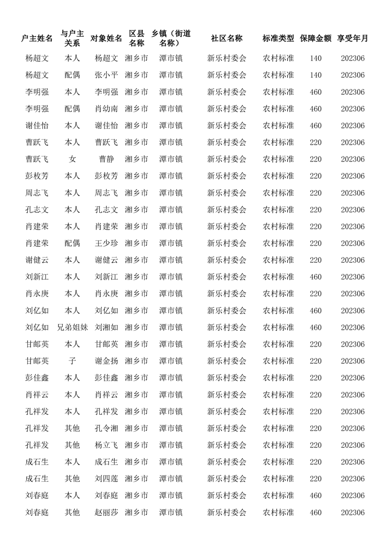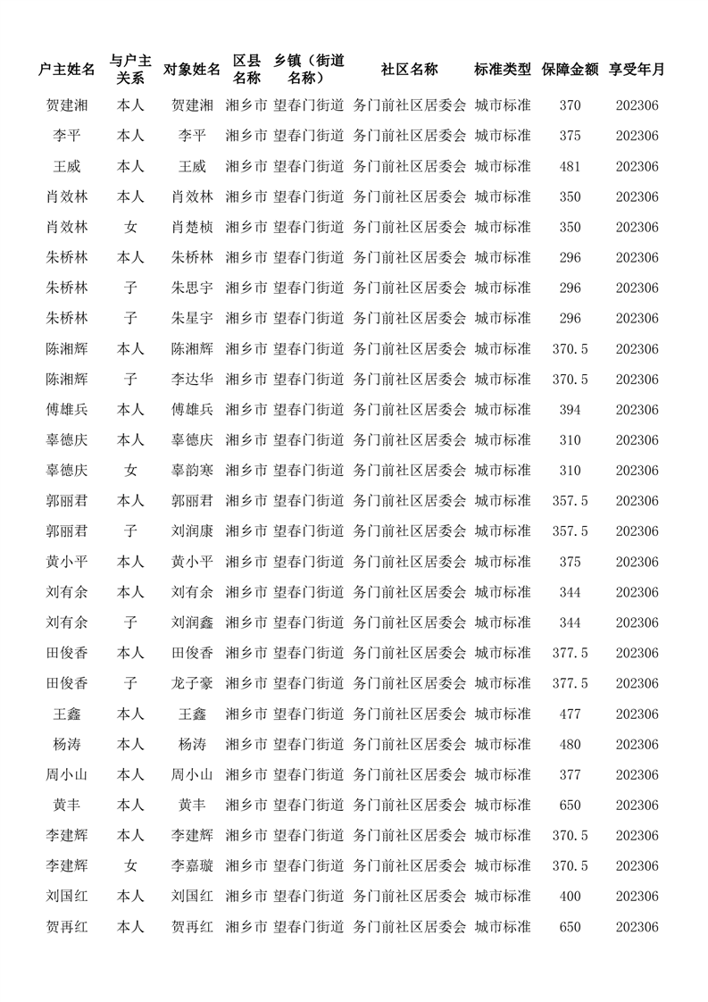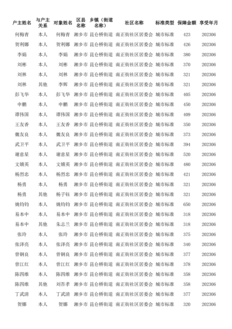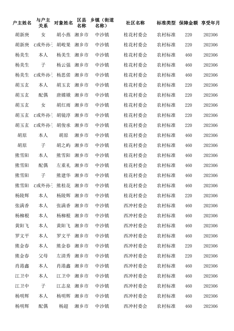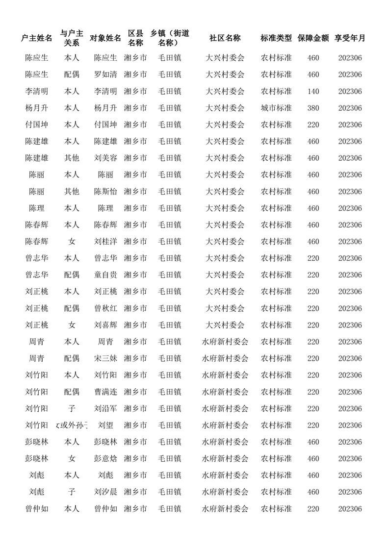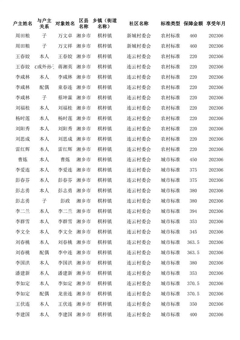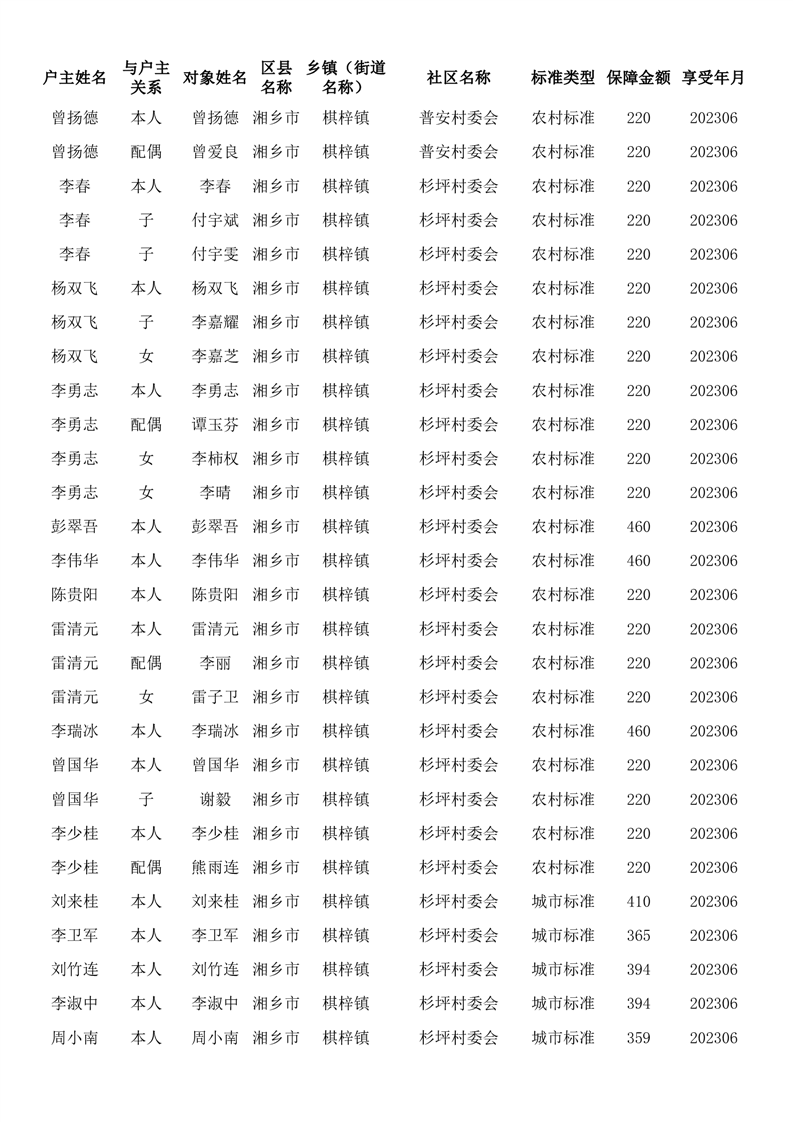 湘鄉(xiāng)市2023年6月城鄉(xiāng)低保救助對象審批匯總表