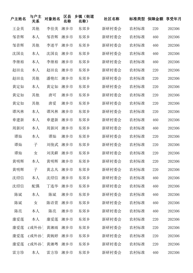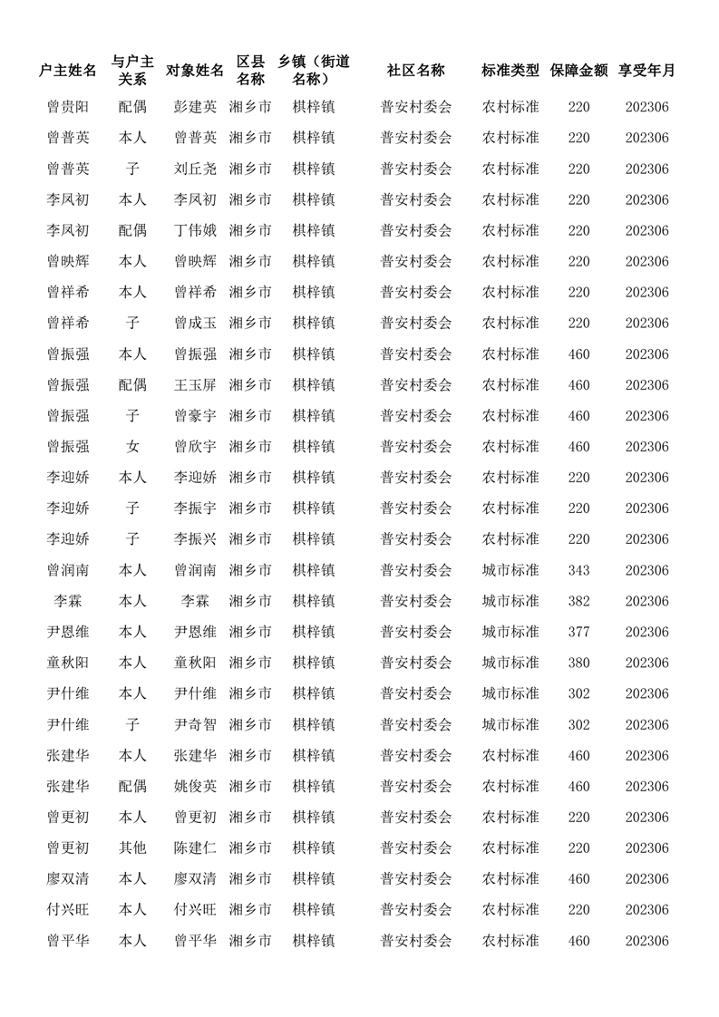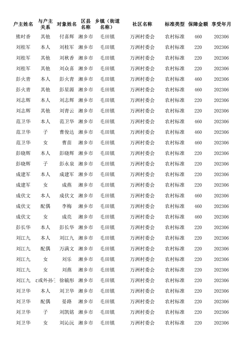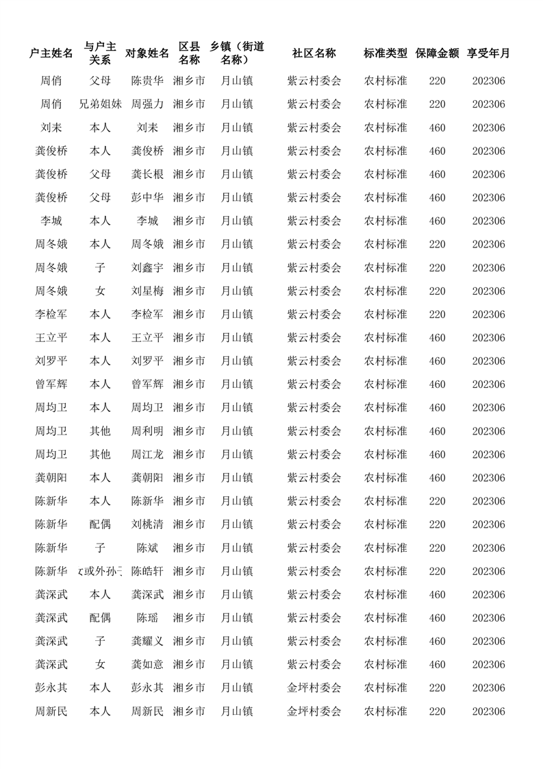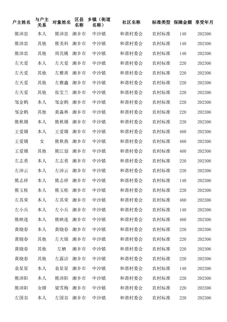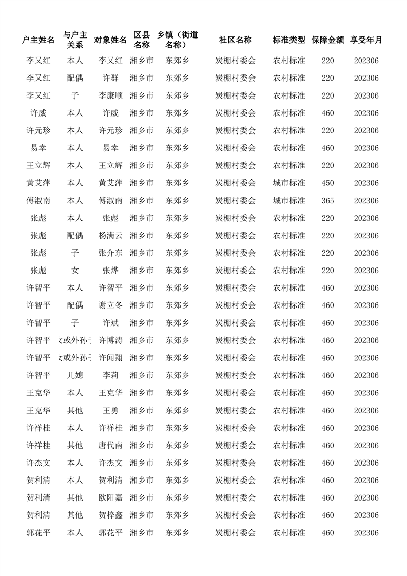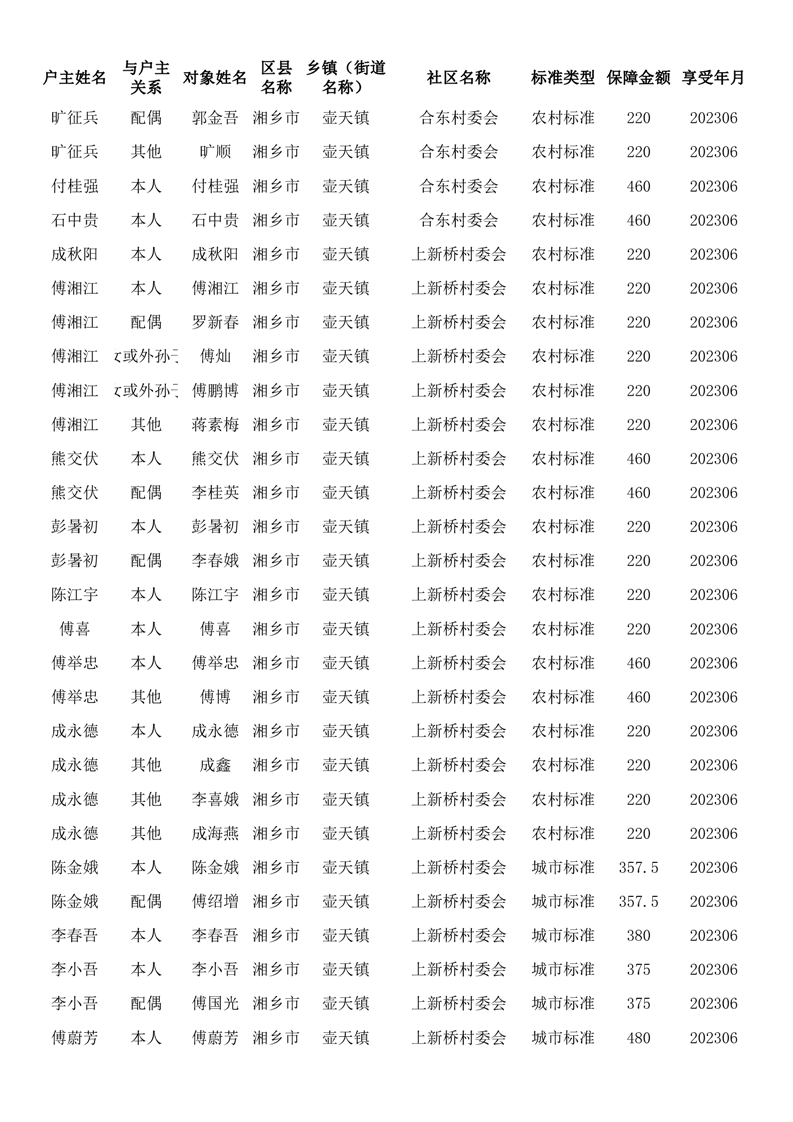 湘鄉(xiāng)市2023年6月城鄉(xiāng)低保救助對象審批匯總表