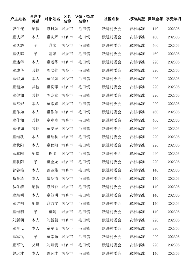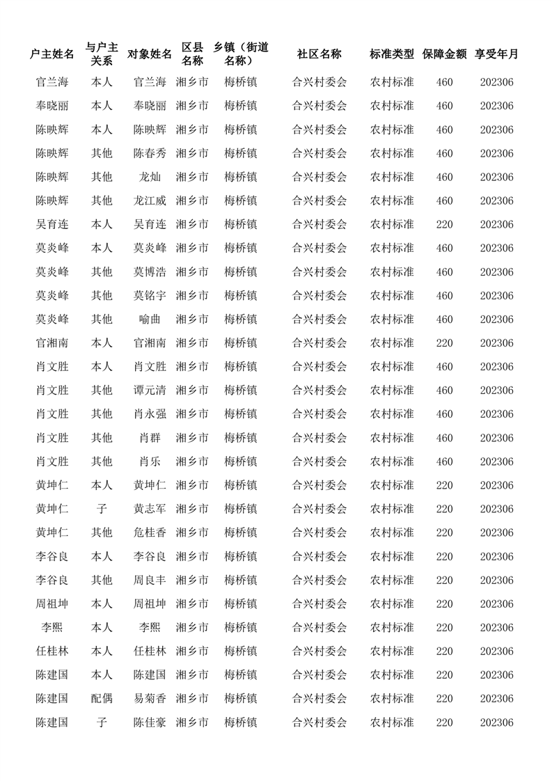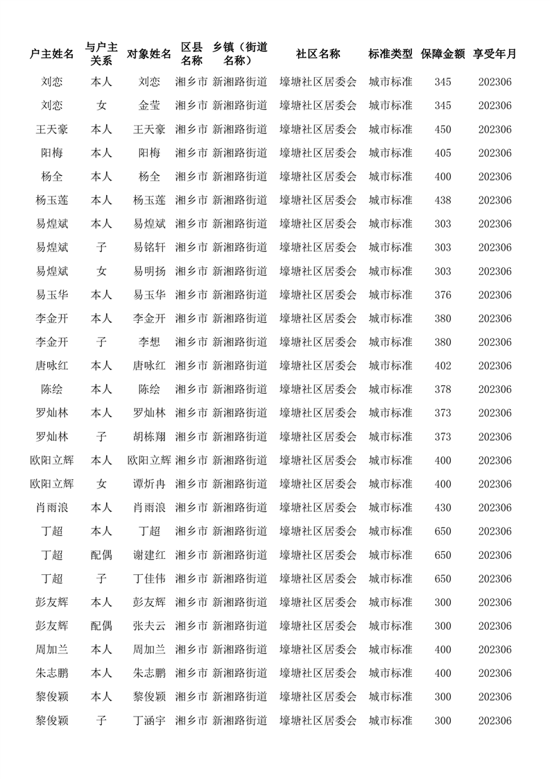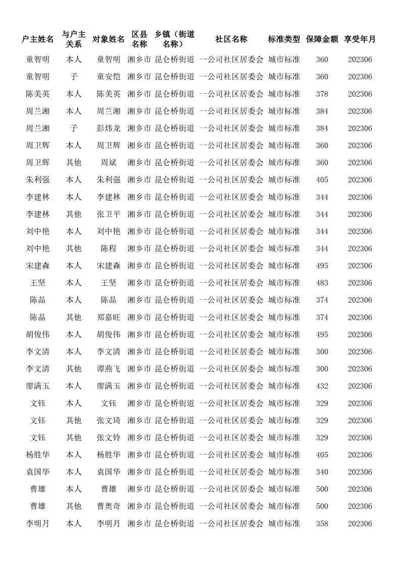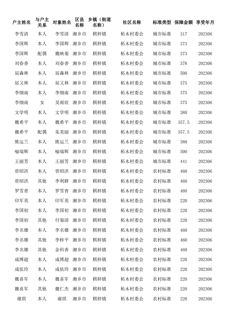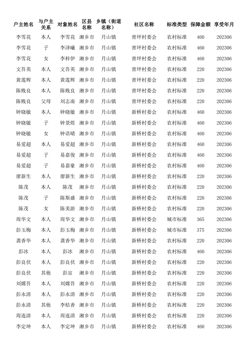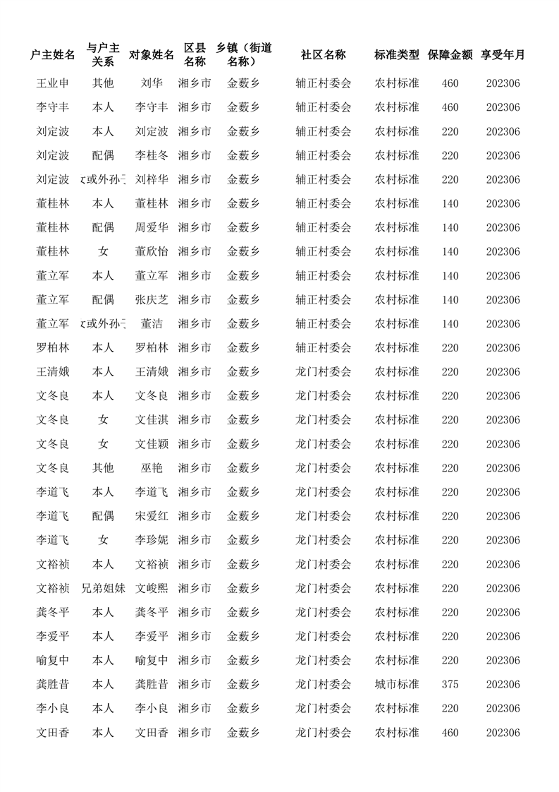 湘鄉(xiāng)市2023年6月城鄉(xiāng)低保救助對象審批匯總表