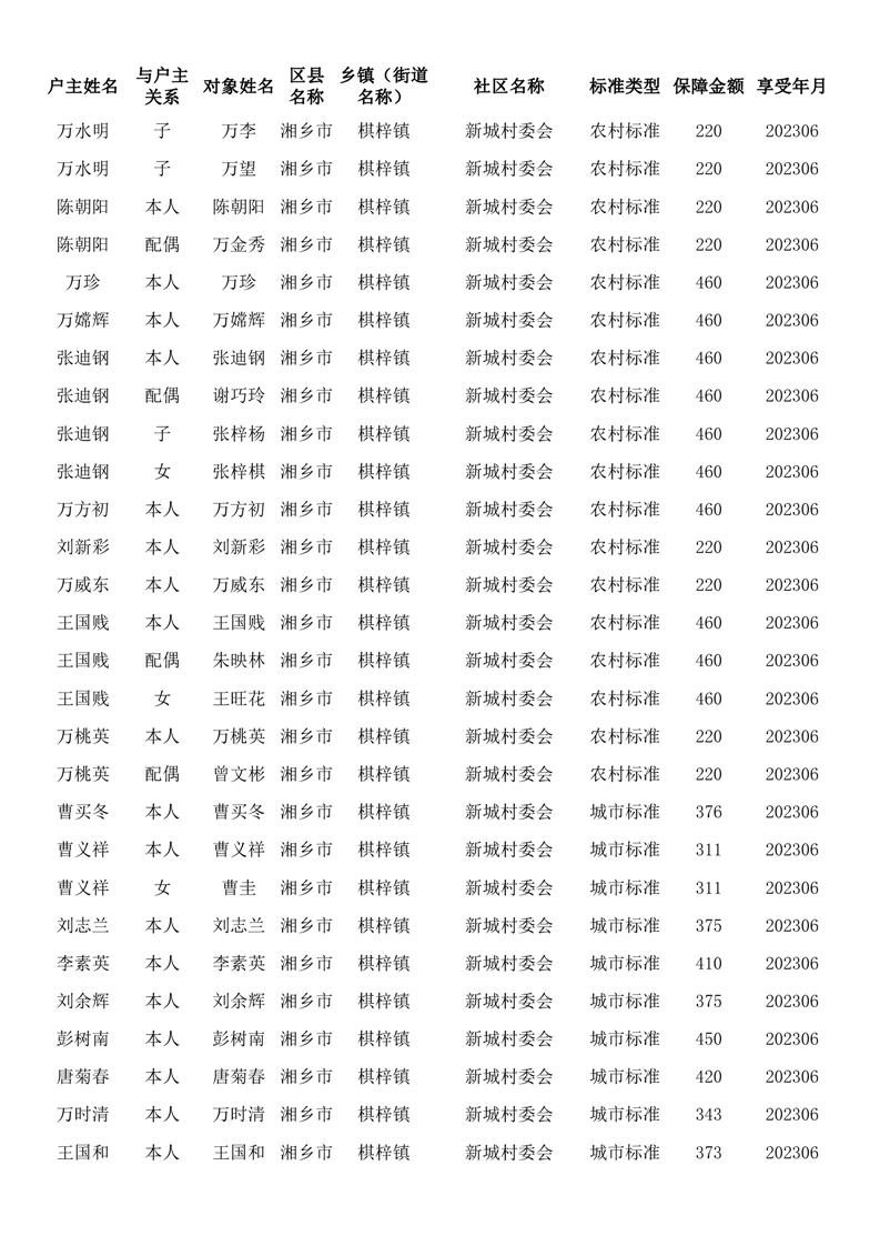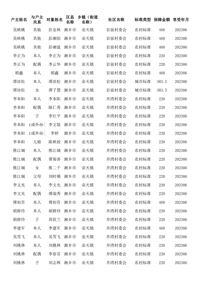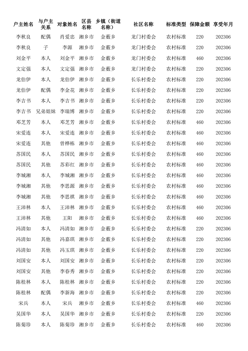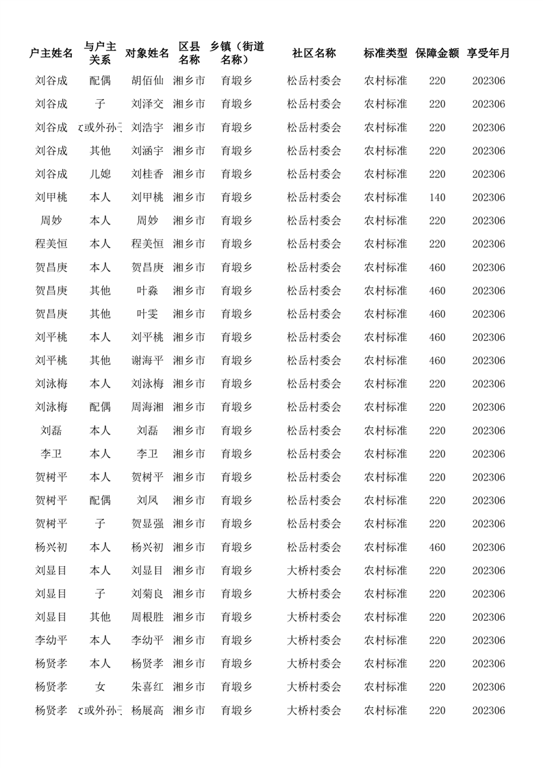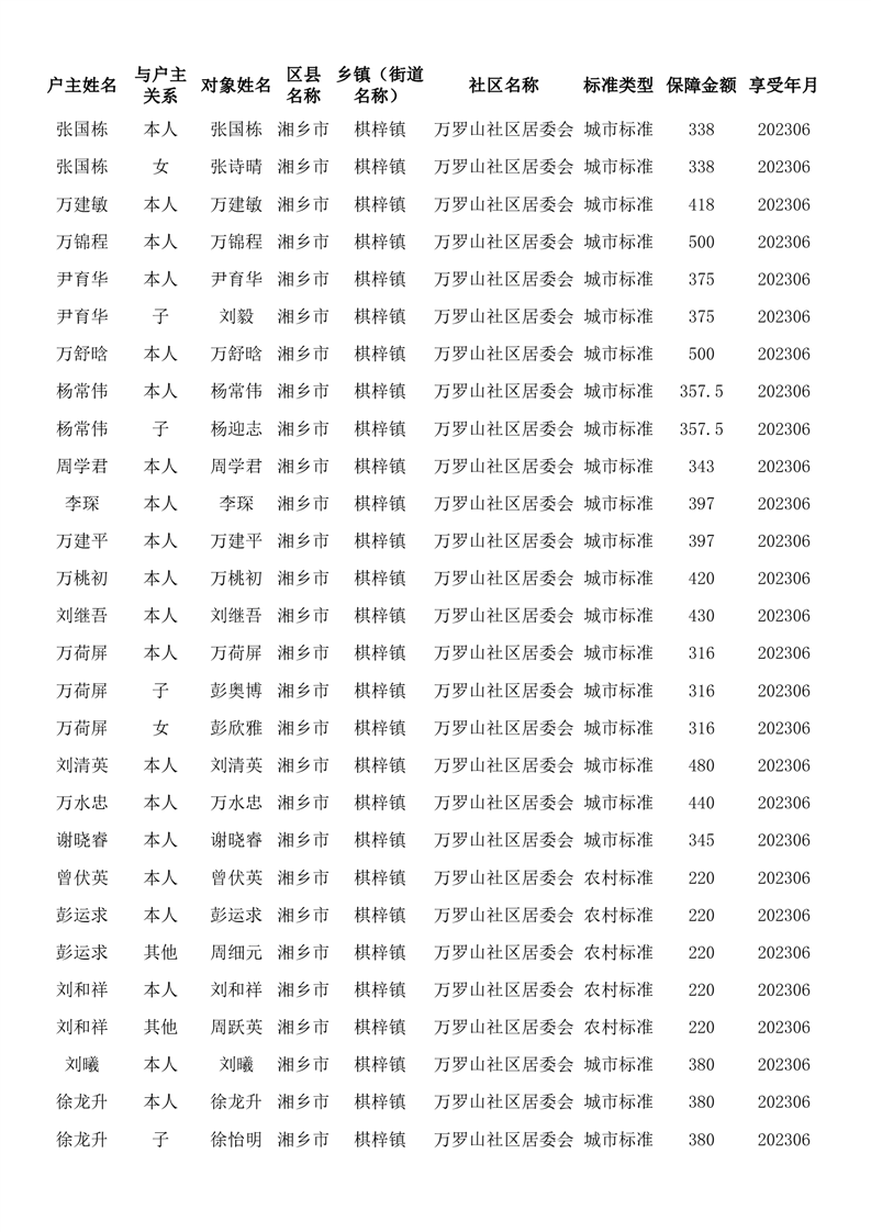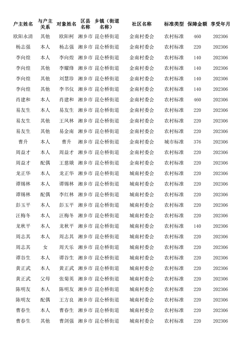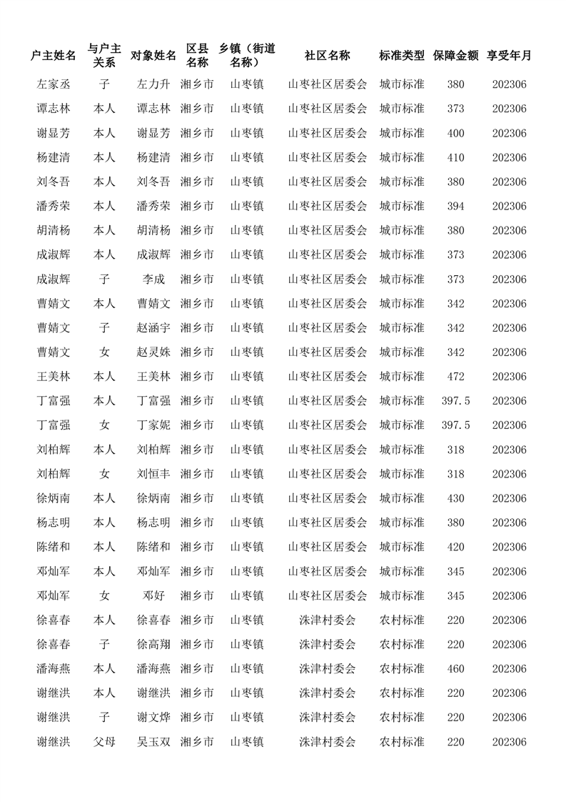 湘鄉(xiāng)市2023年6月城鄉(xiāng)低保救助對象審批匯總表