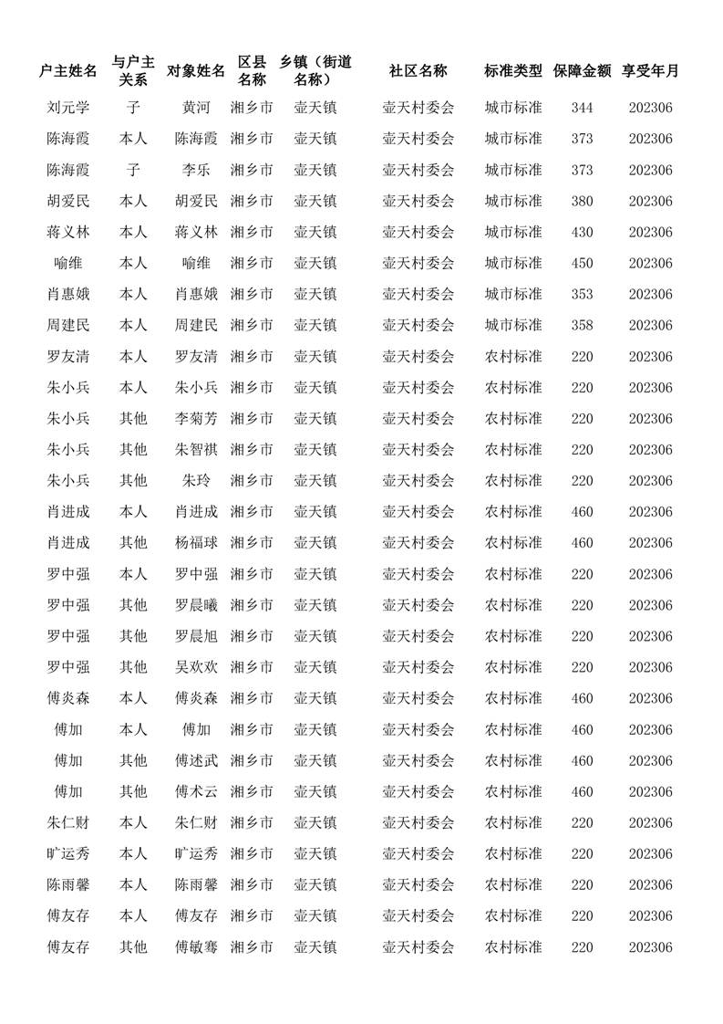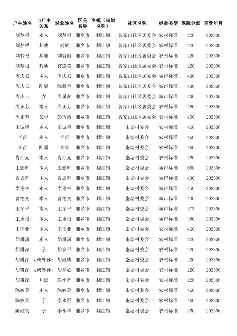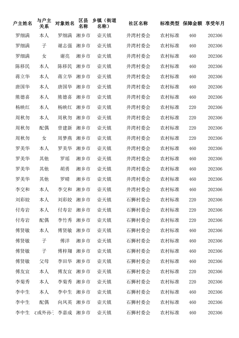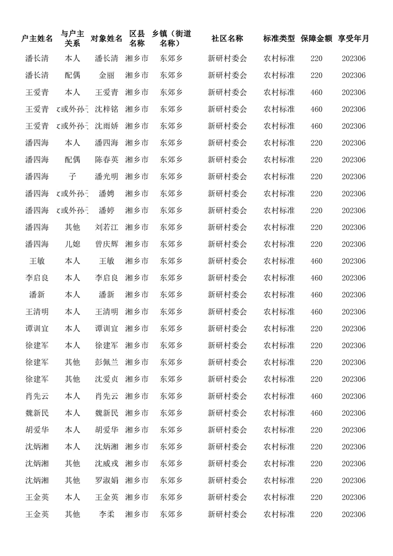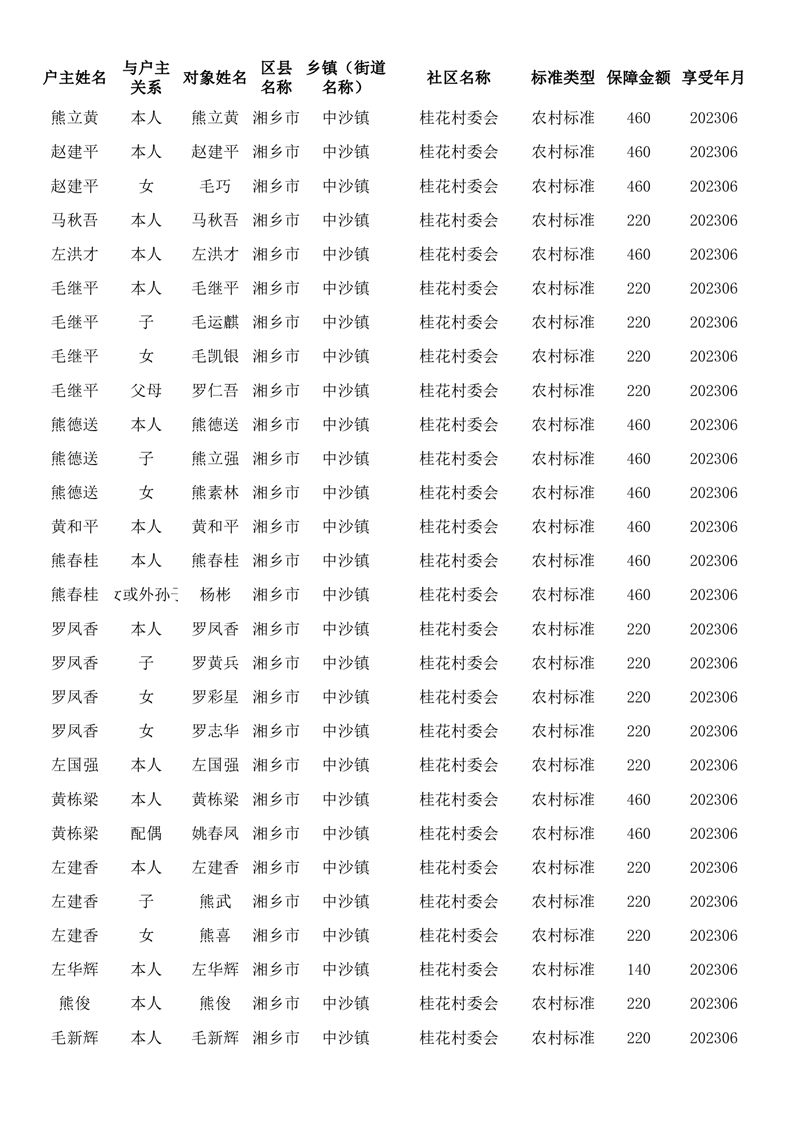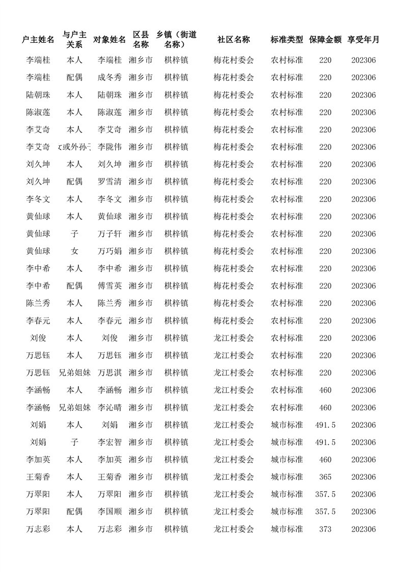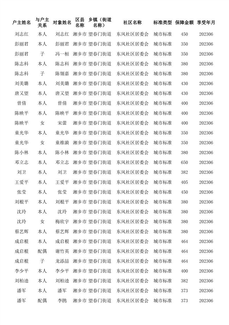 湘鄉(xiāng)市2023年6月城鄉(xiāng)低保救助對象審批匯總表