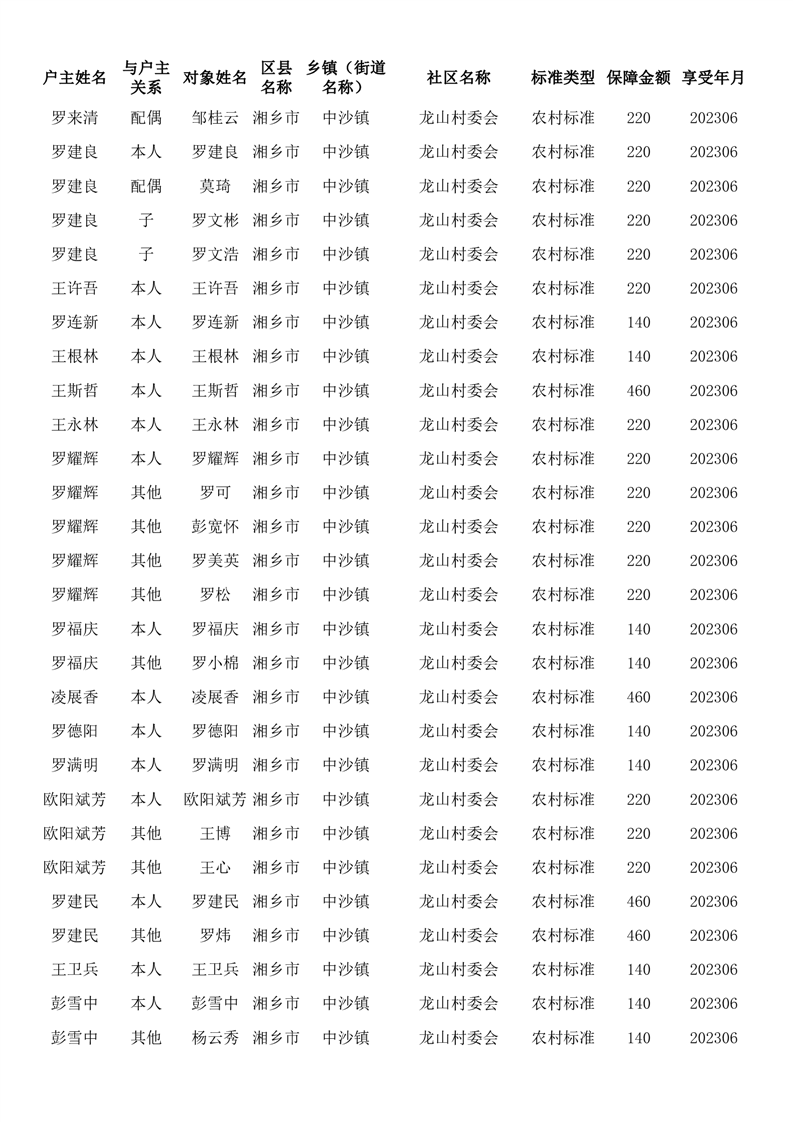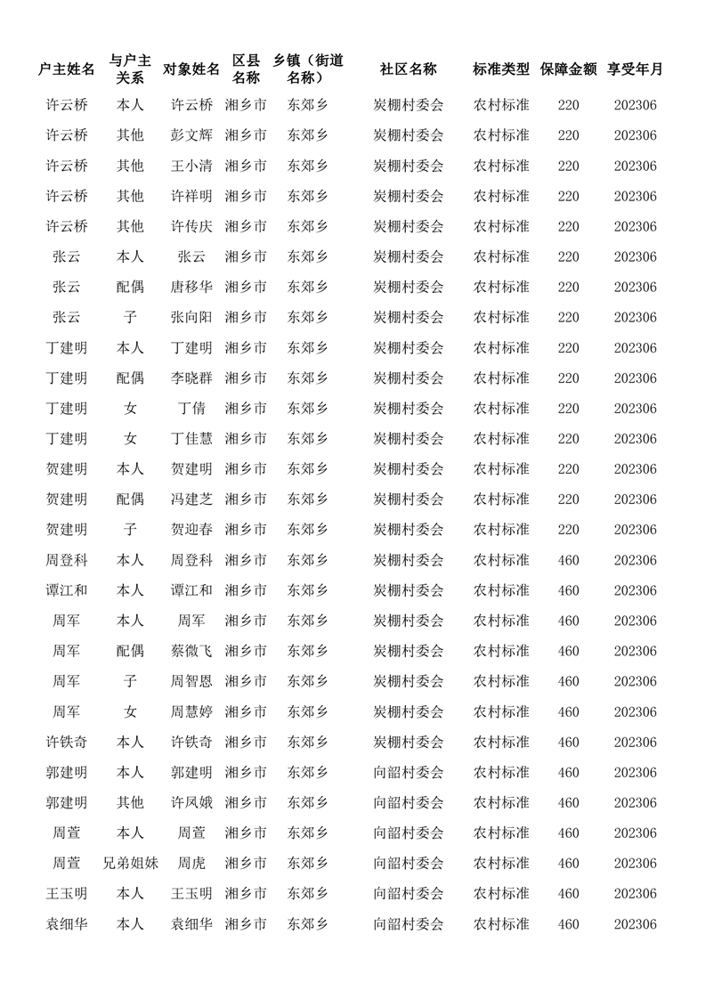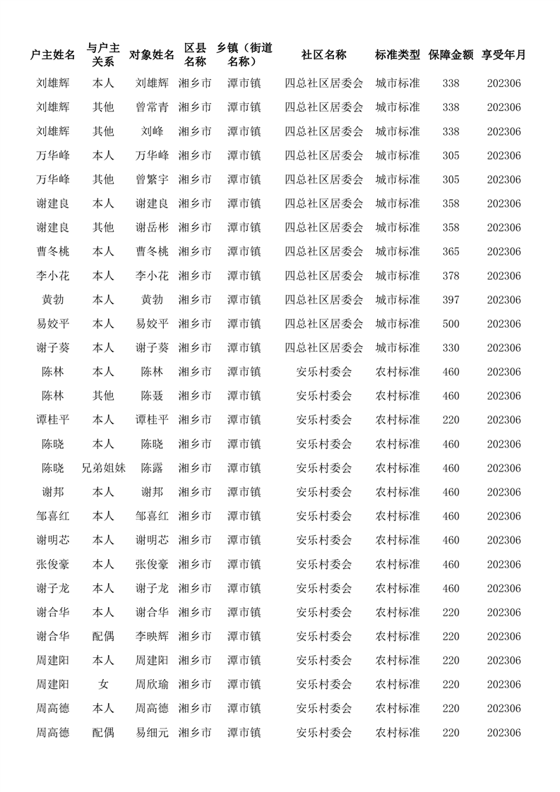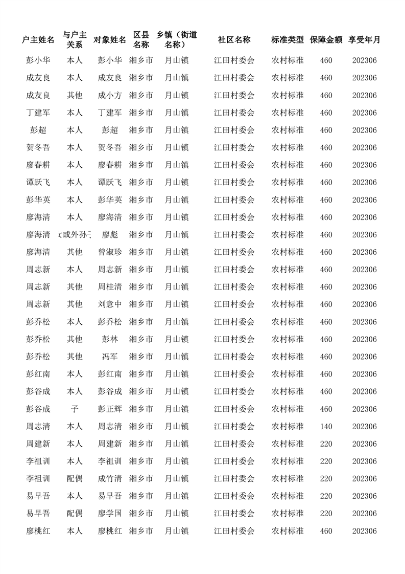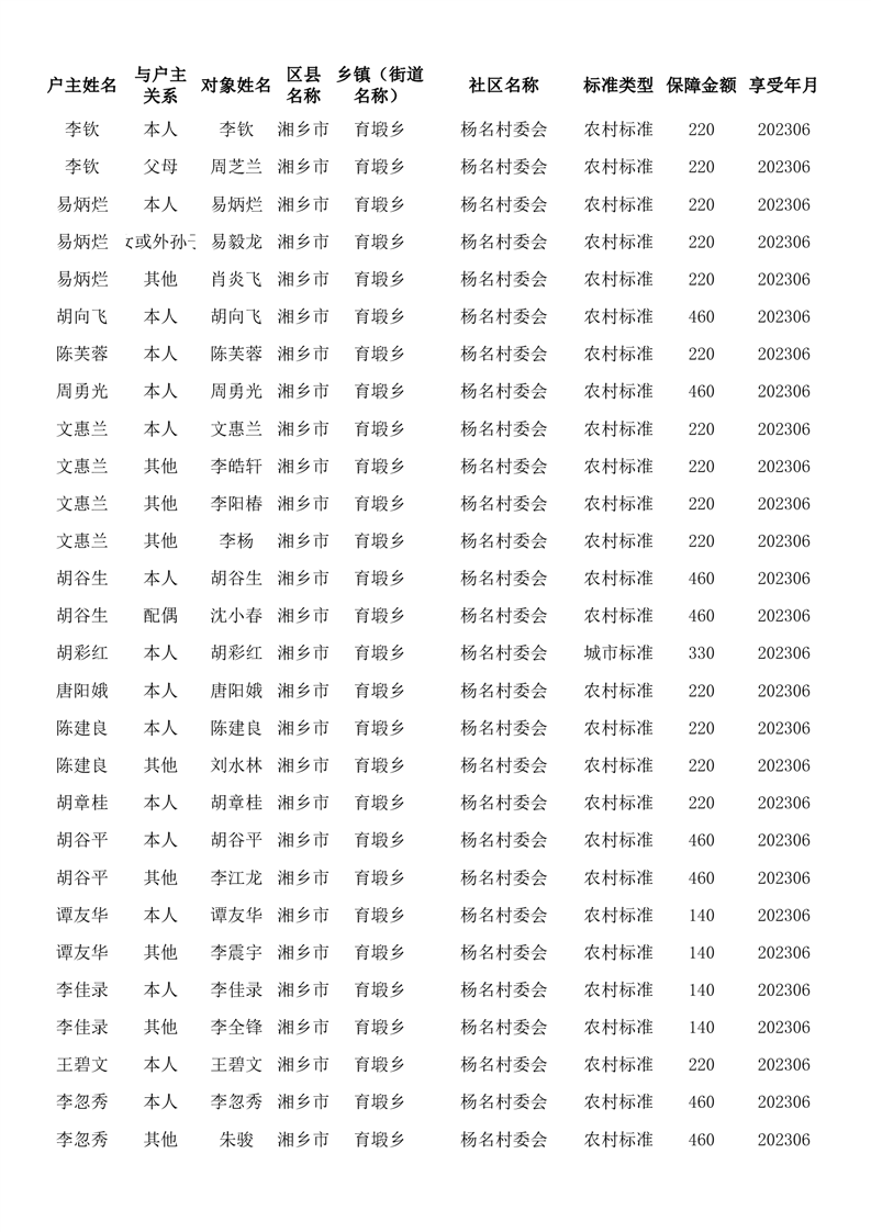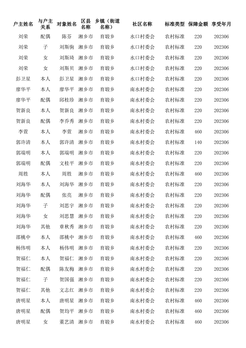 湘鄉(xiāng)市2023年6月城鄉(xiāng)低保救助對象審批匯總表