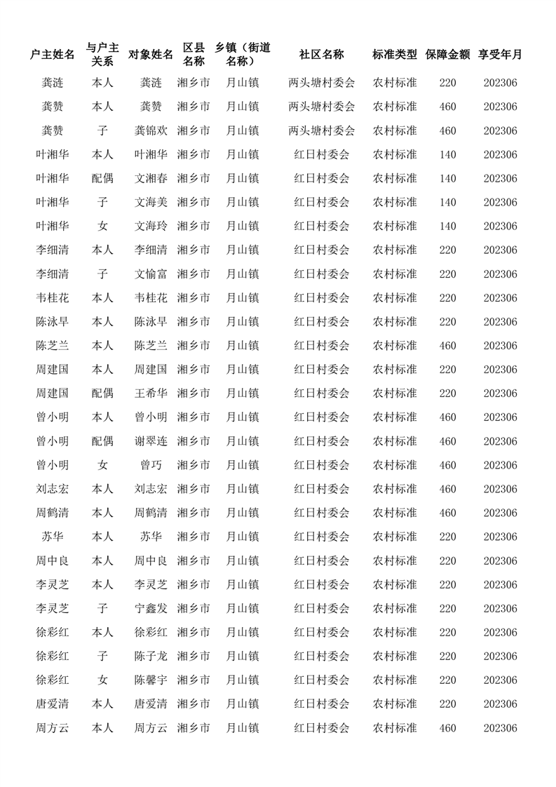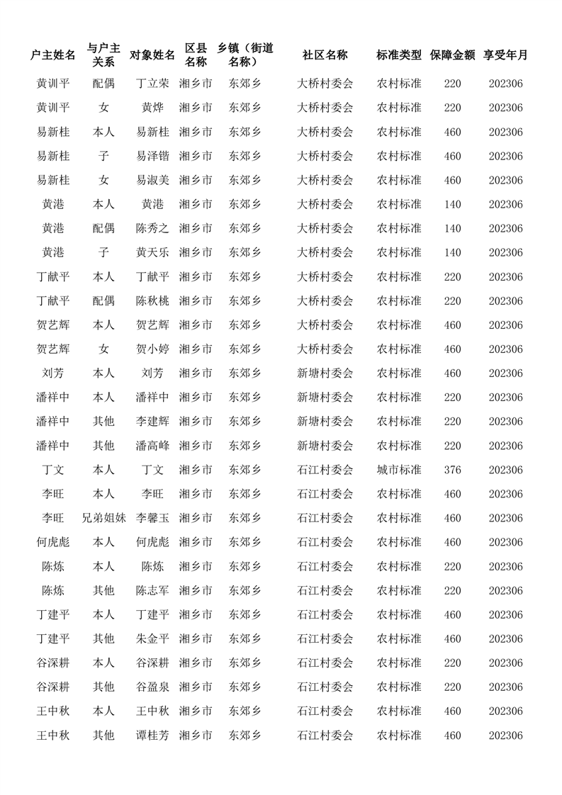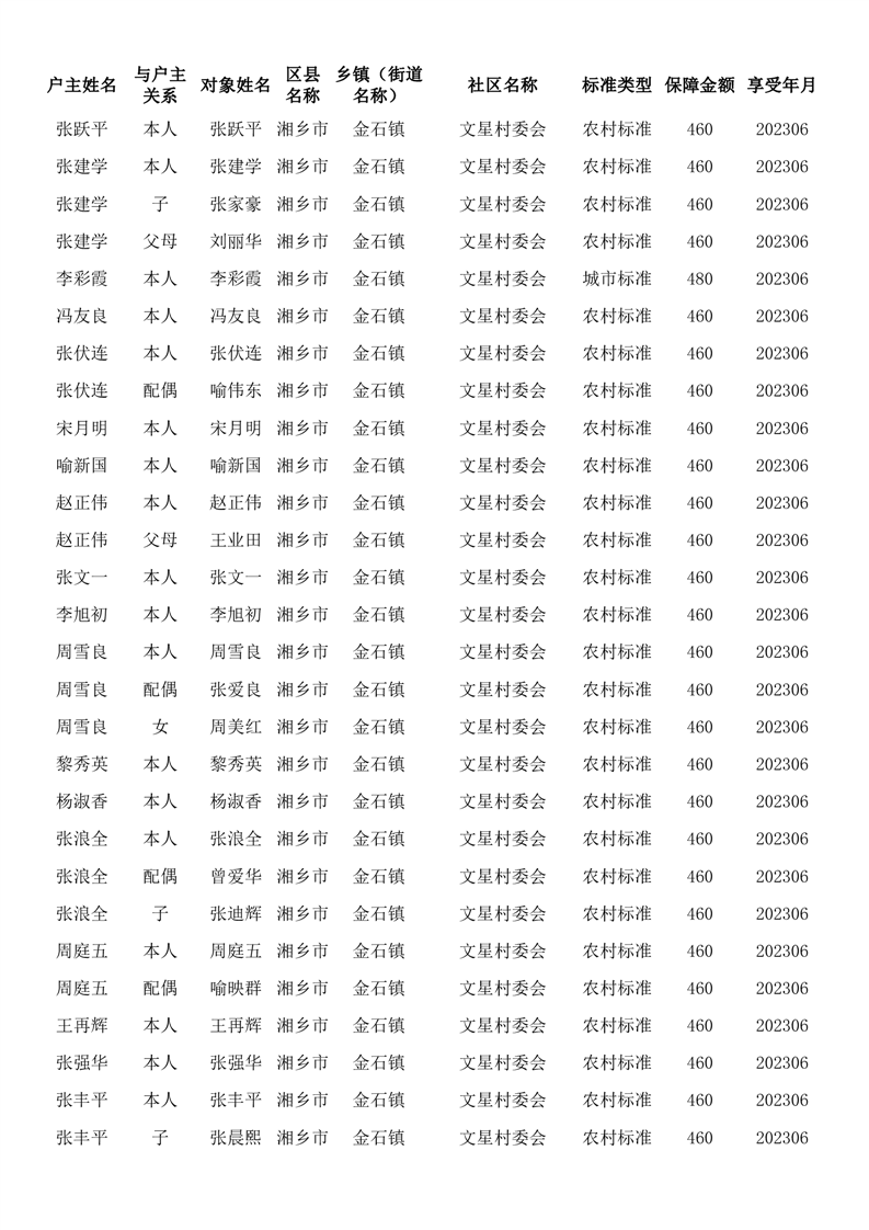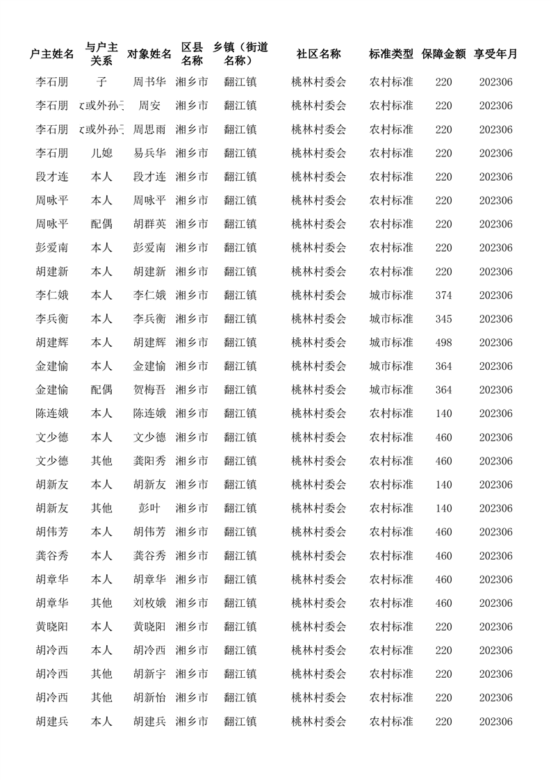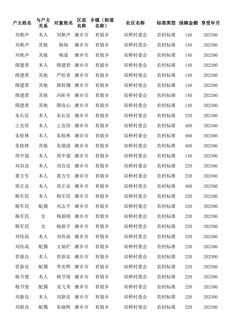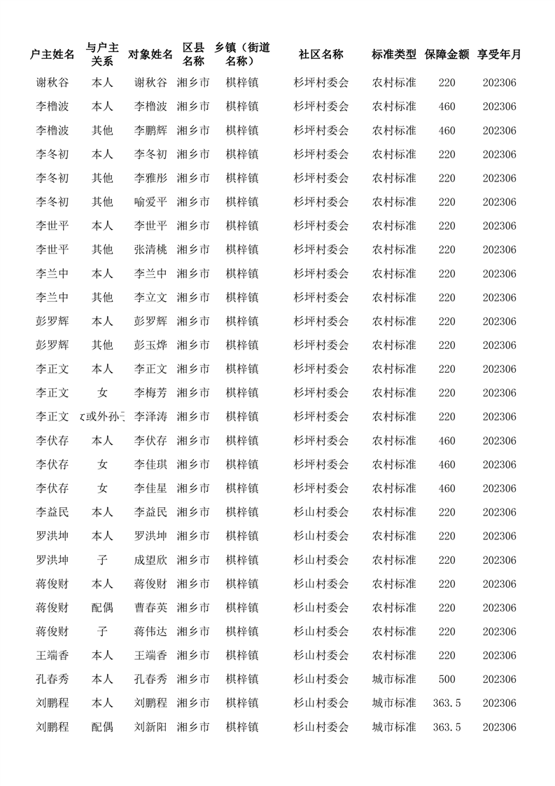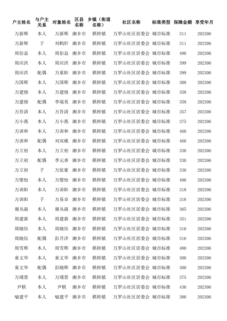 湘鄉(xiāng)市2023年6月城鄉(xiāng)低保救助對象審批匯總表