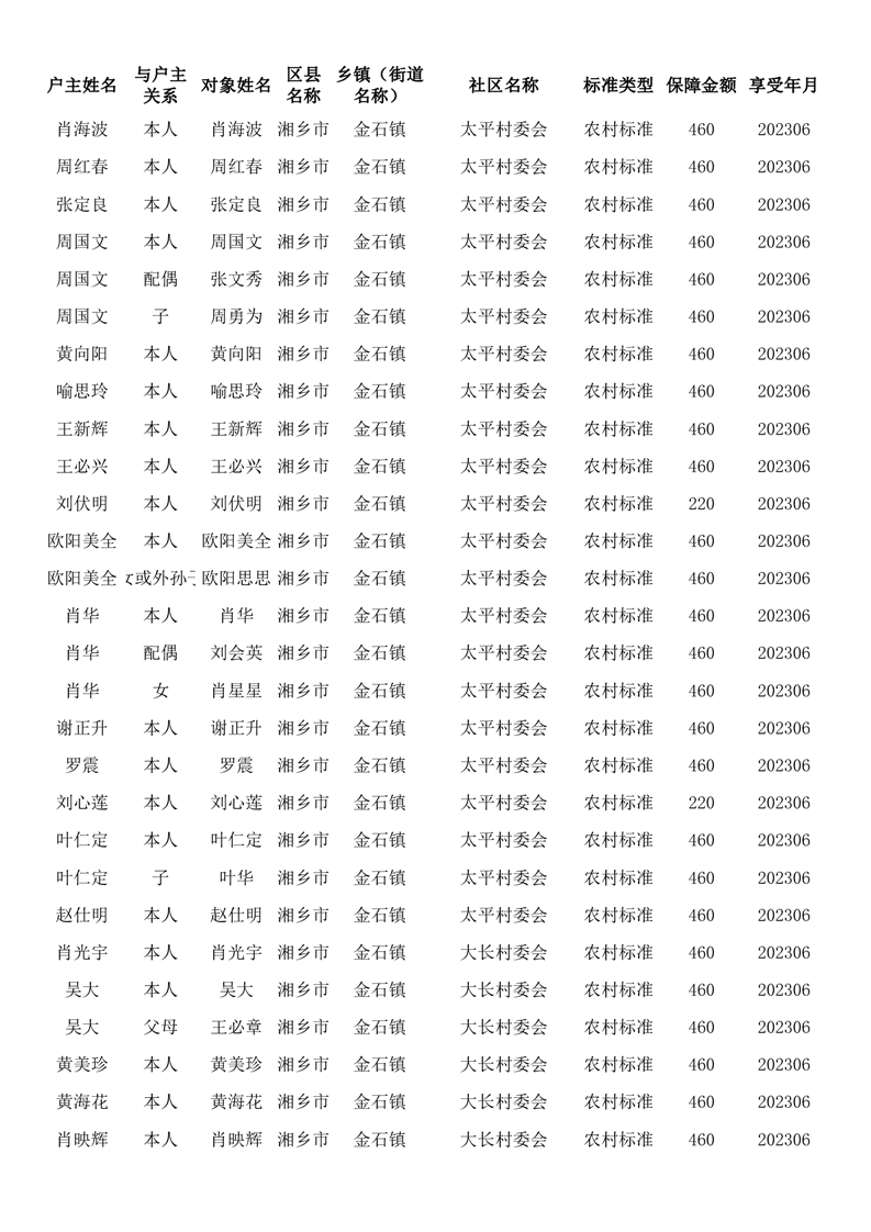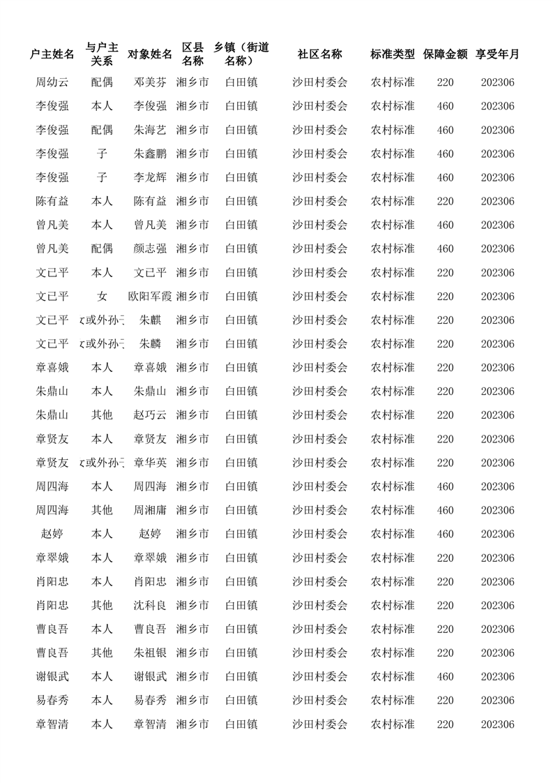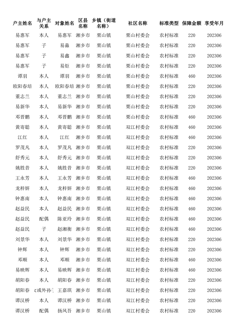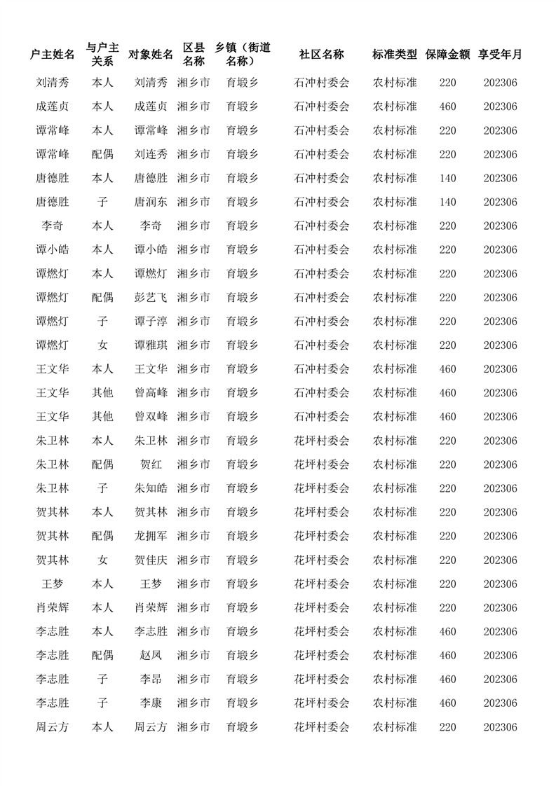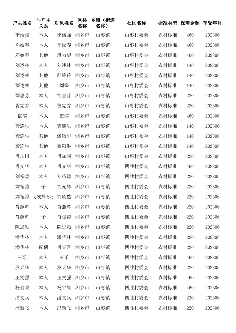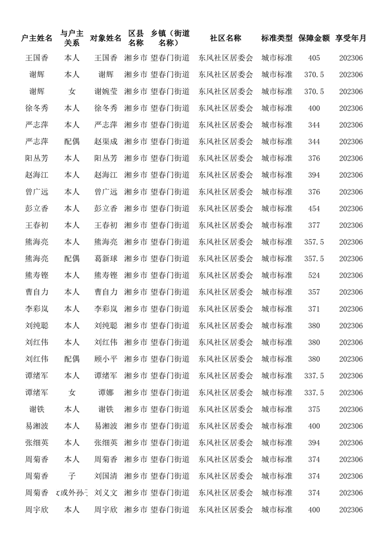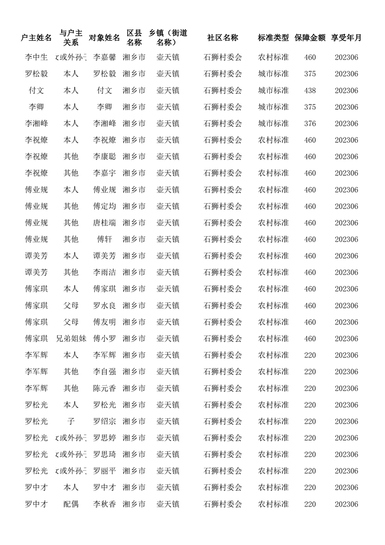 湘鄉(xiāng)市2023年6月城鄉(xiāng)低保救助對象審批匯總表