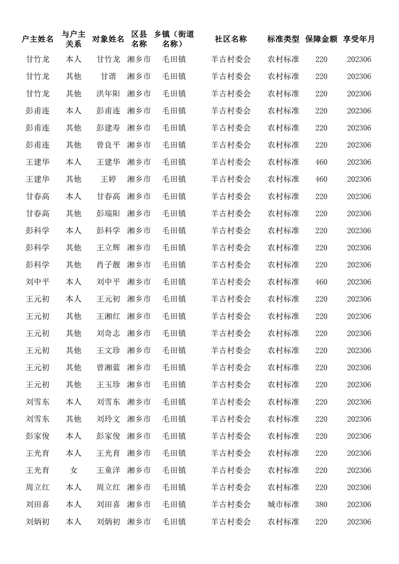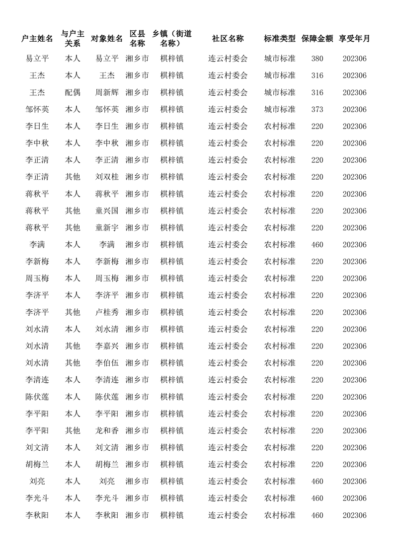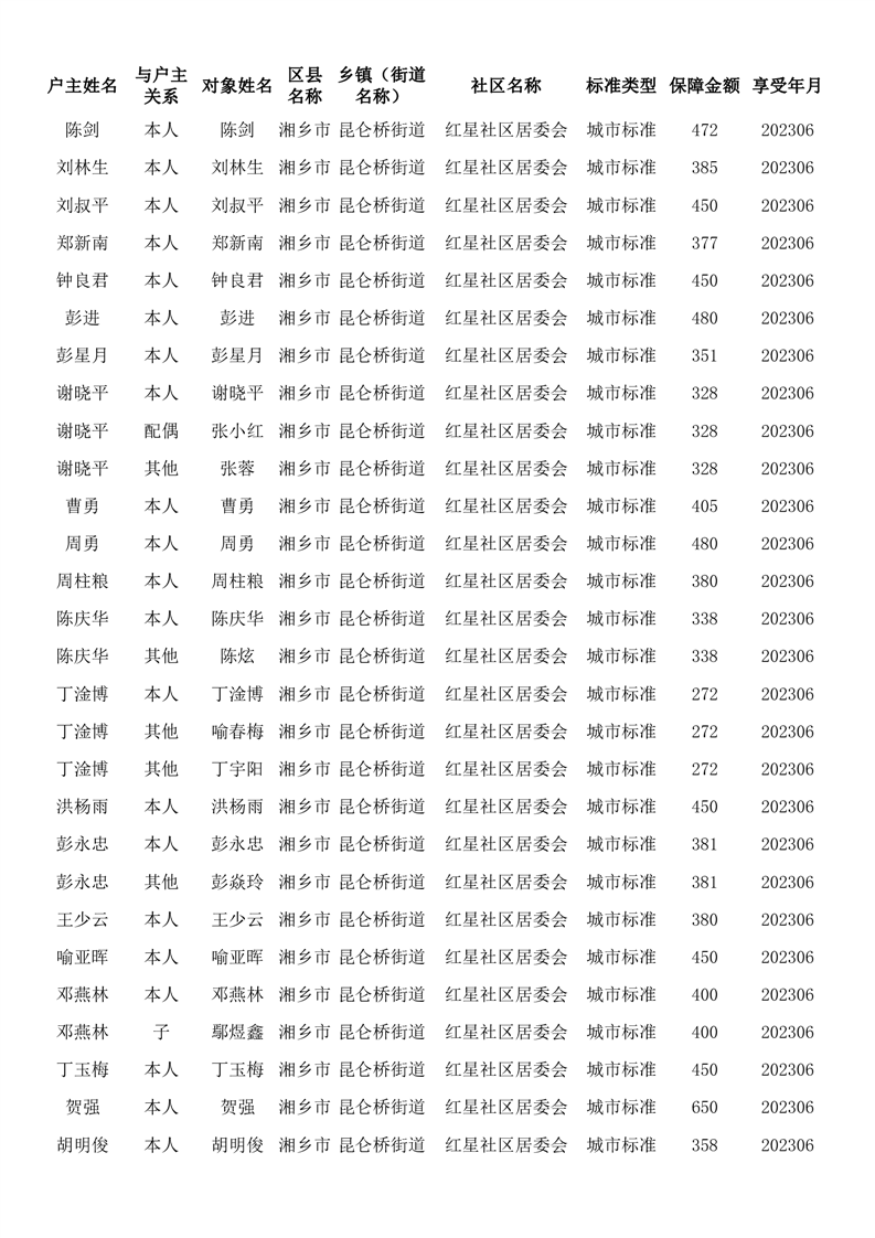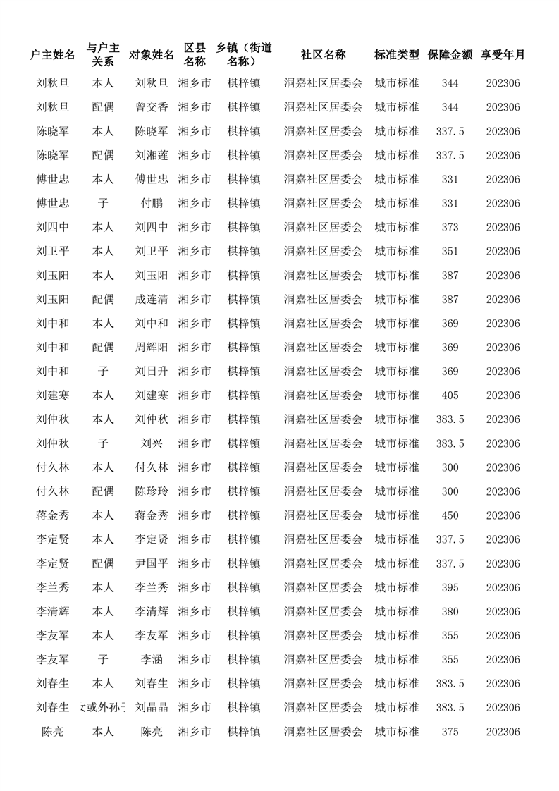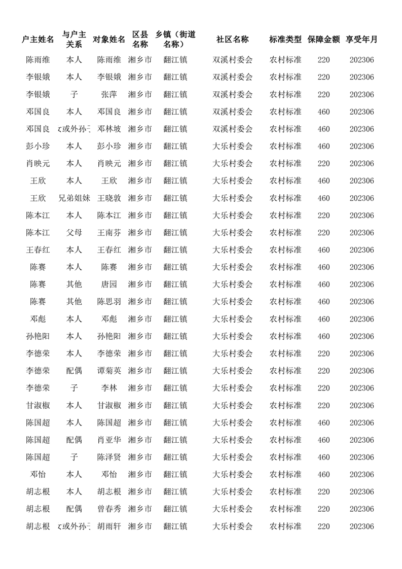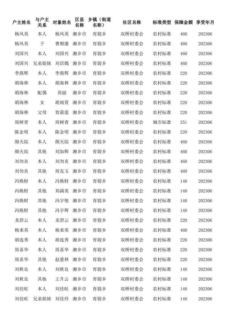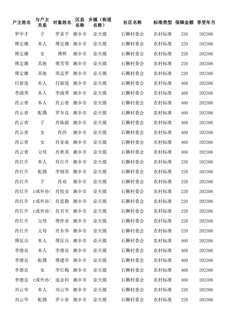 湘鄉(xiāng)市2023年6月城鄉(xiāng)低保救助對象審批匯總表