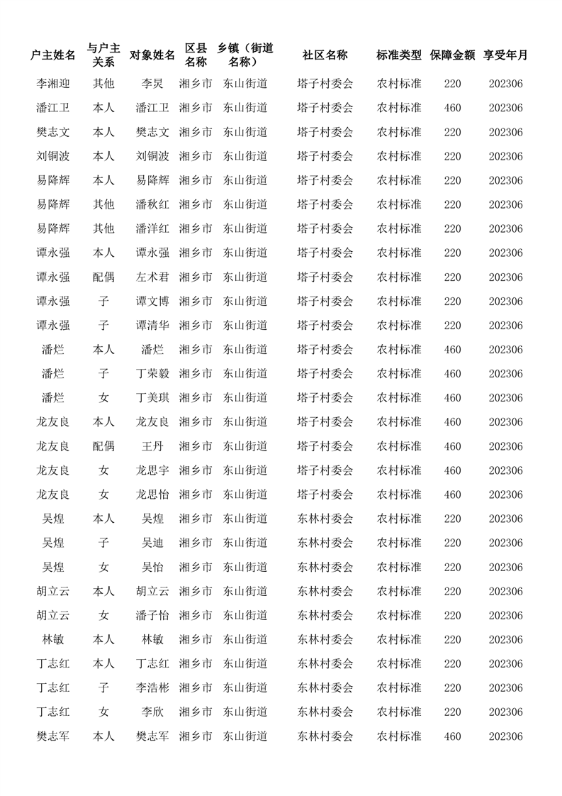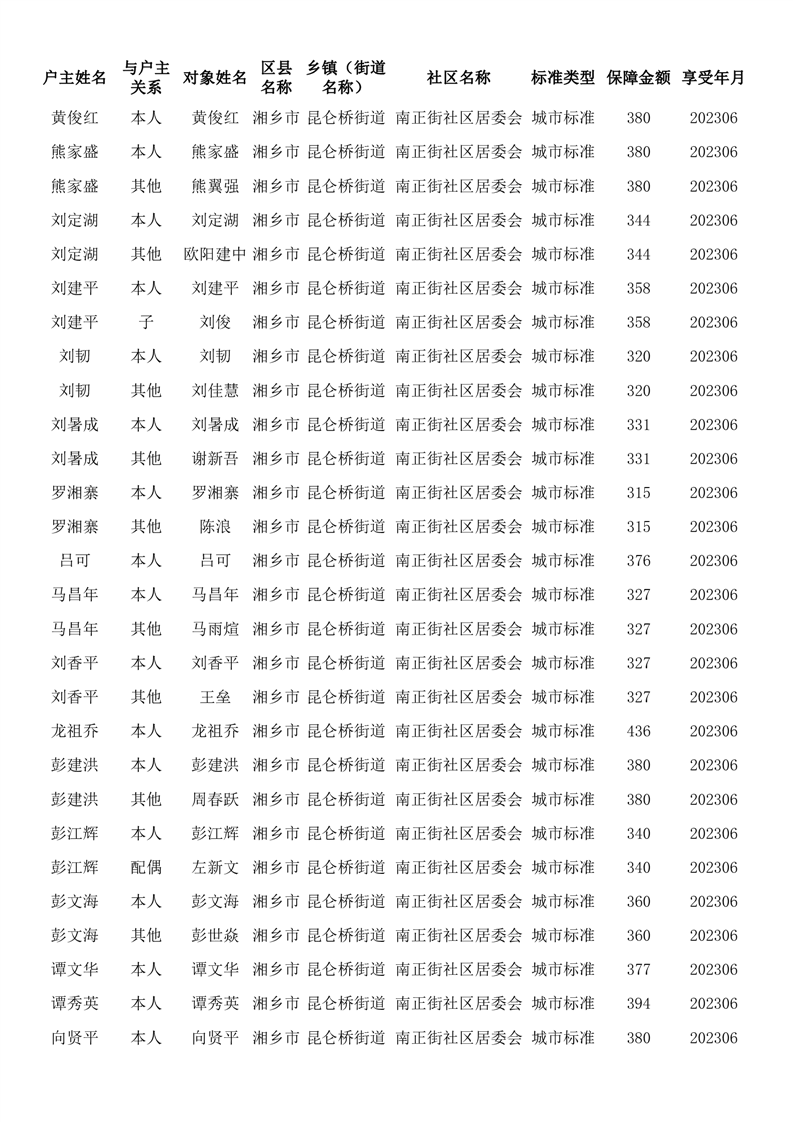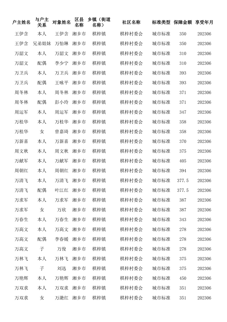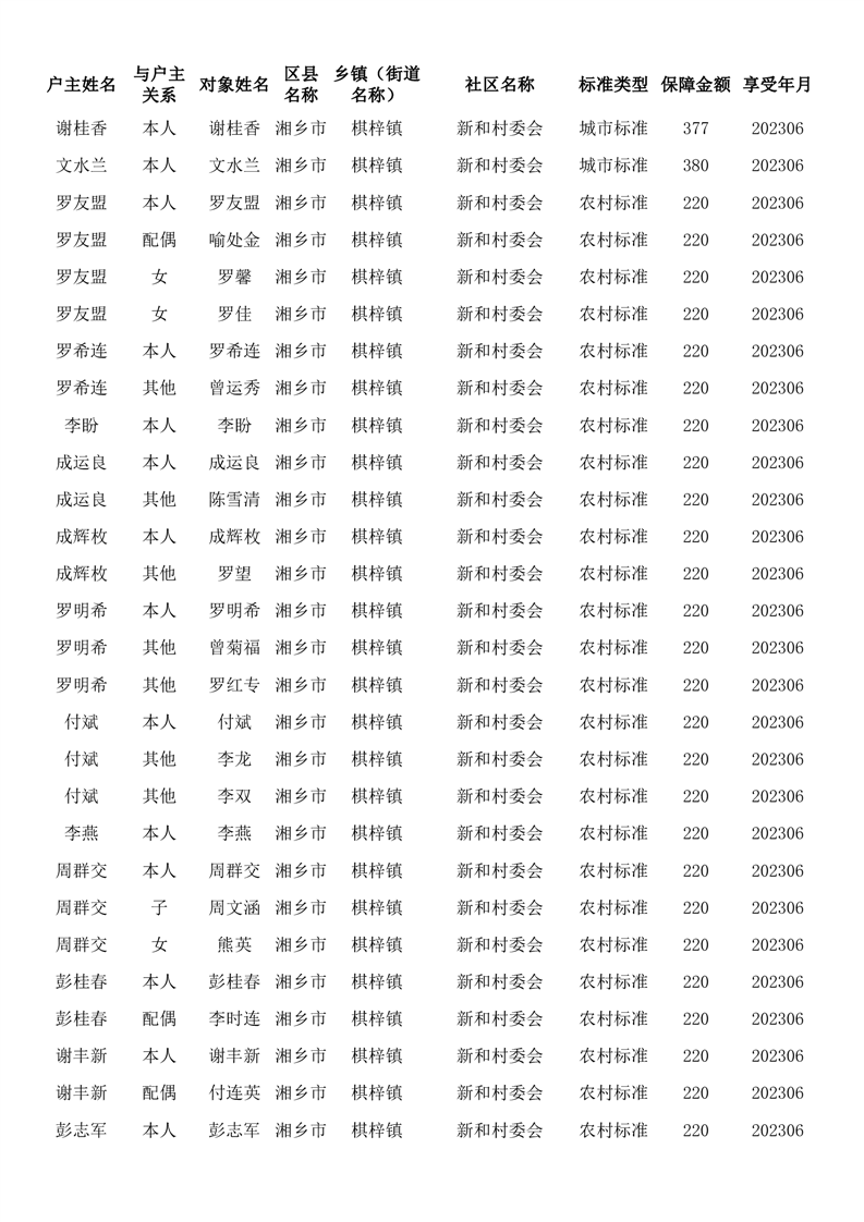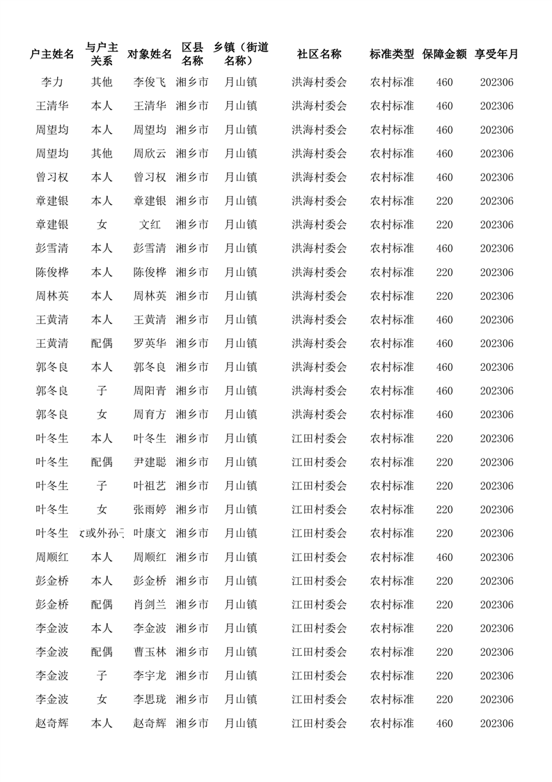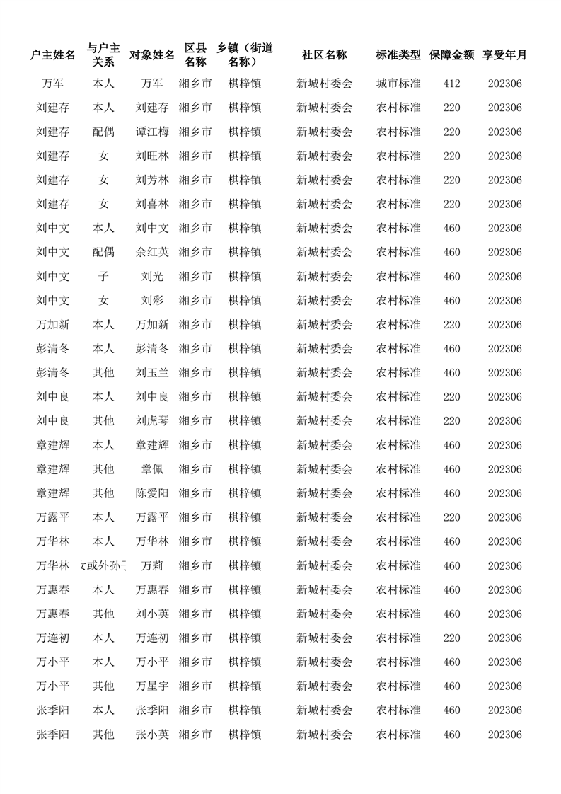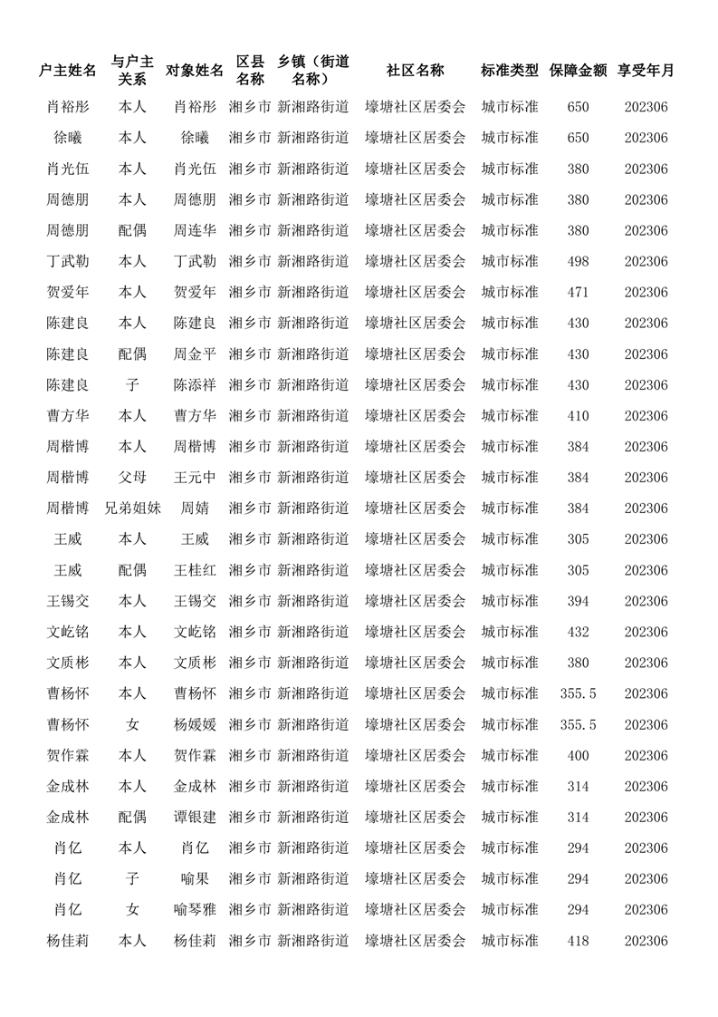 湘鄉(xiāng)市2023年6月城鄉(xiāng)低保救助對象審批匯總表
