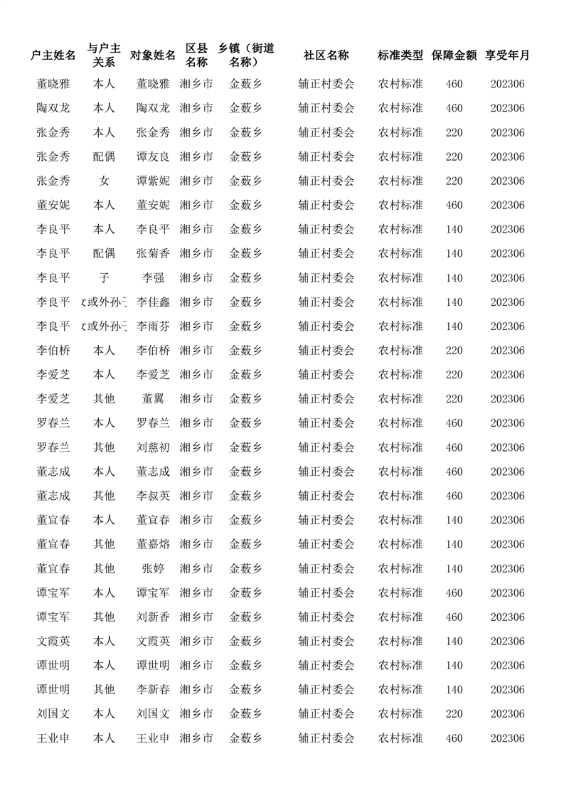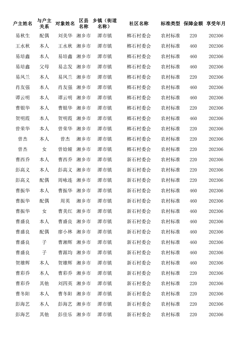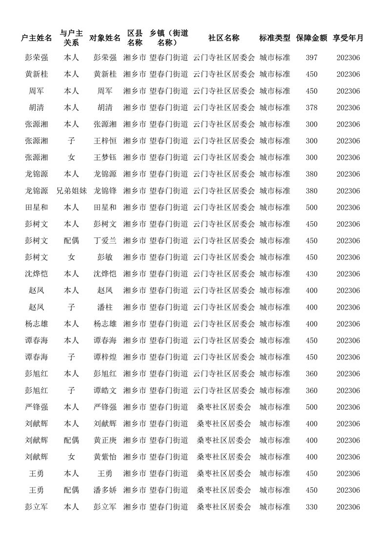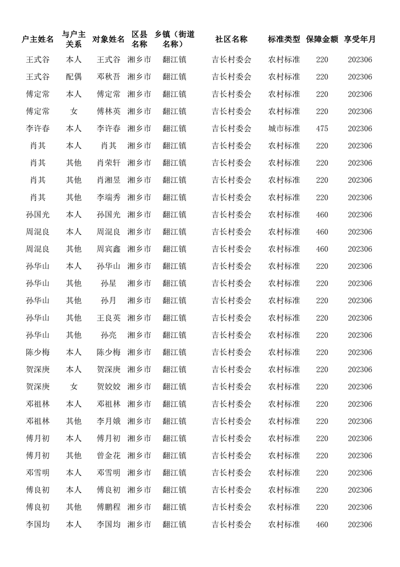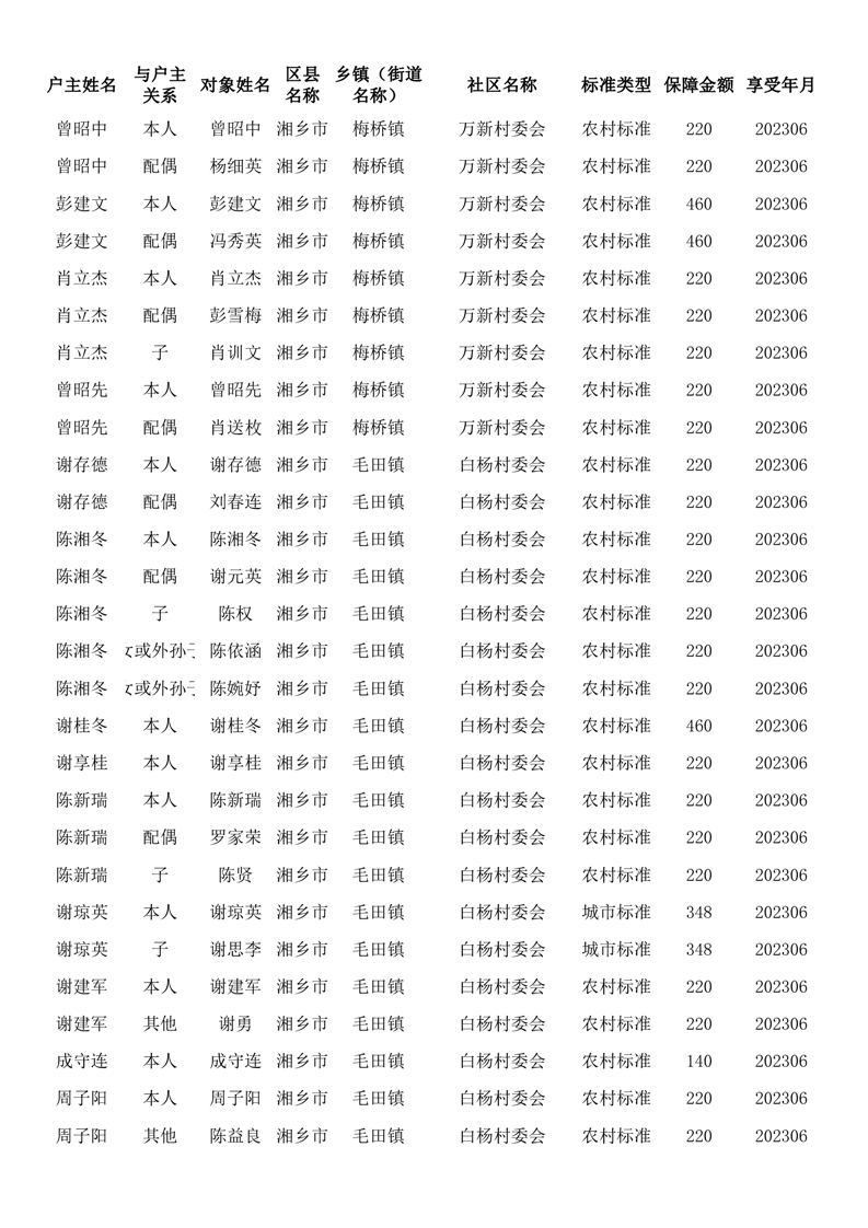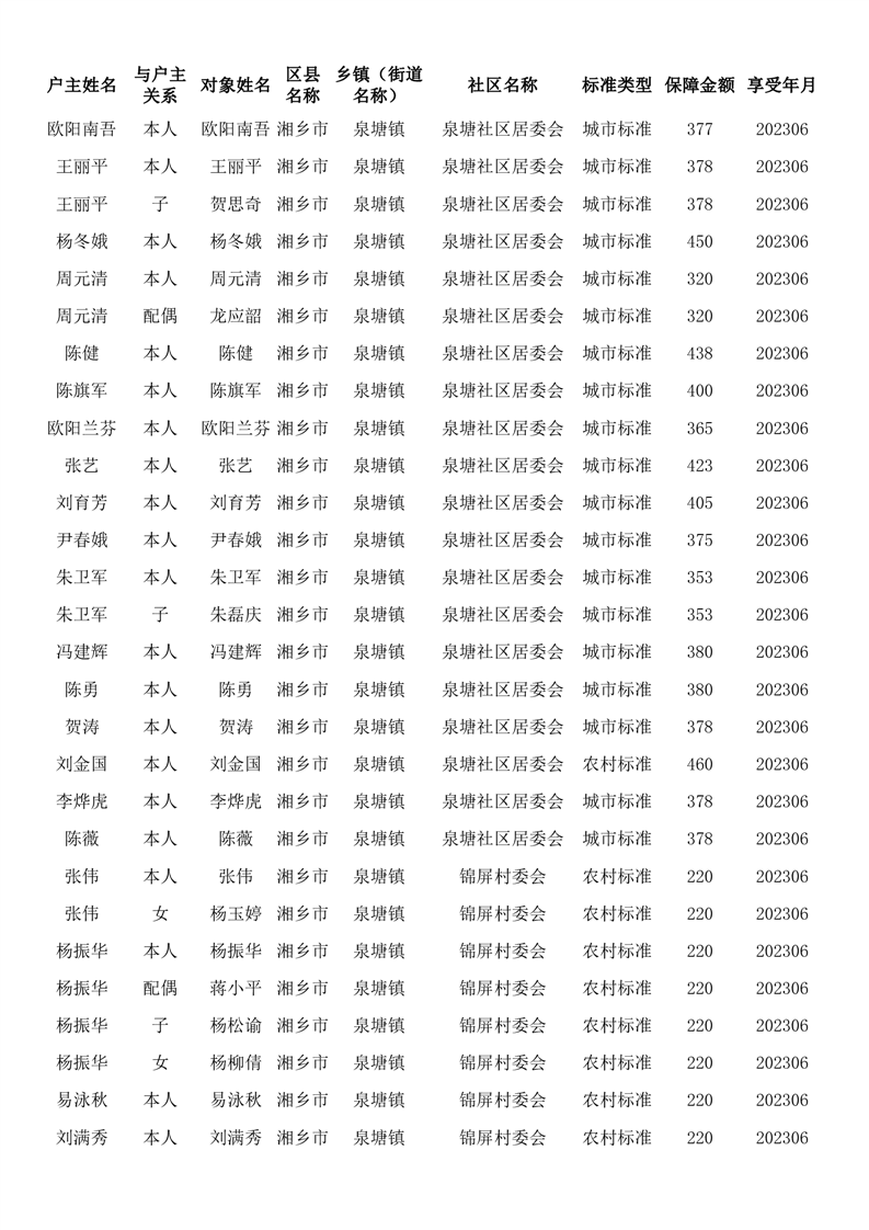 湘鄉(xiāng)市2023年6月城鄉(xiāng)低保救助對象審批匯總表