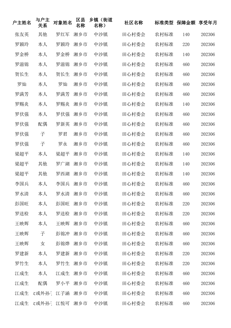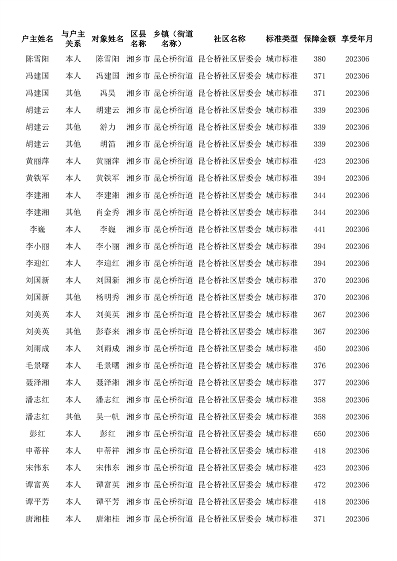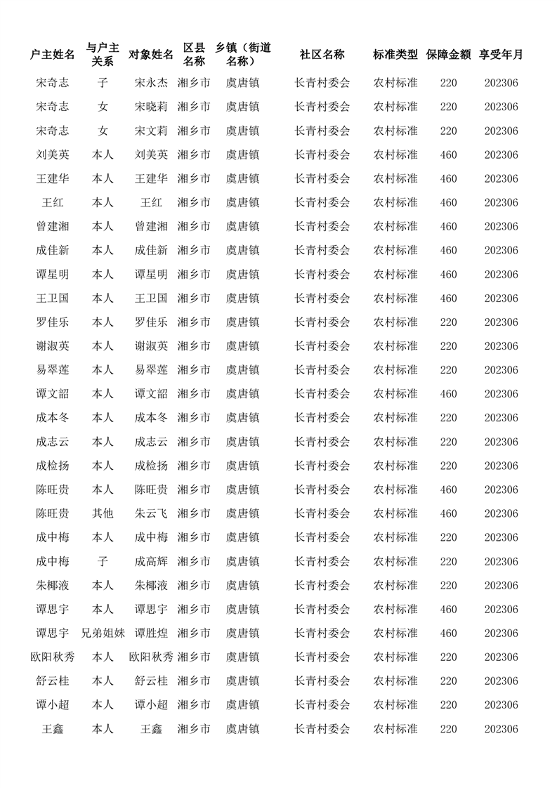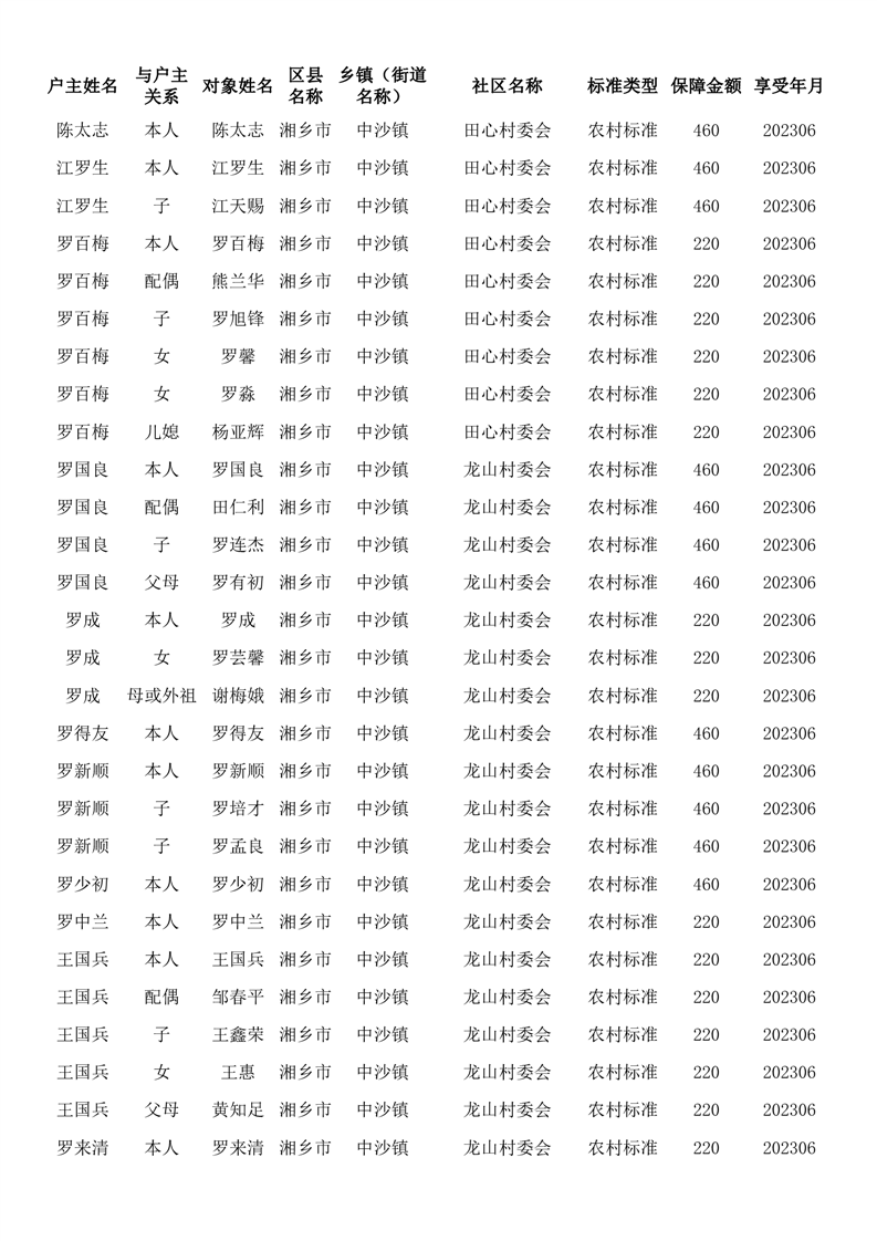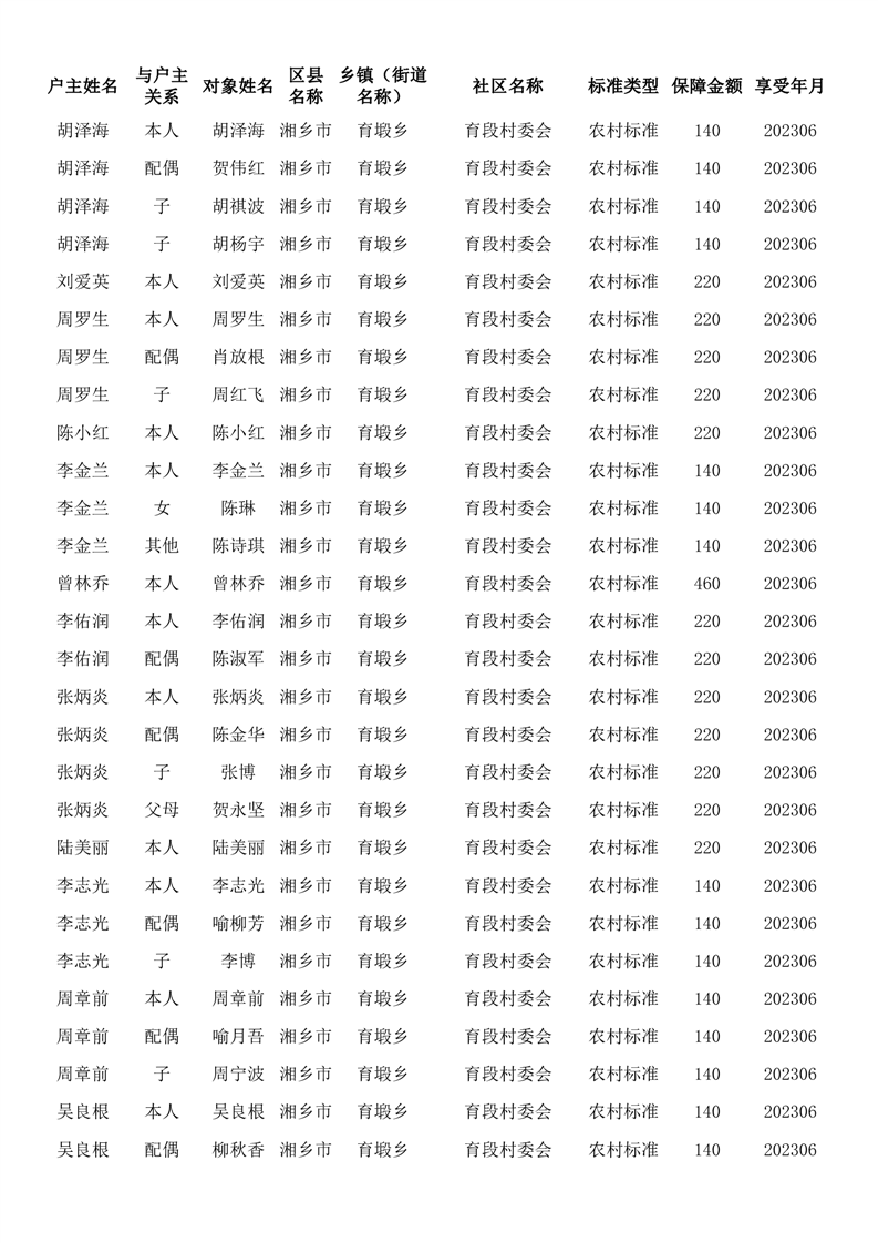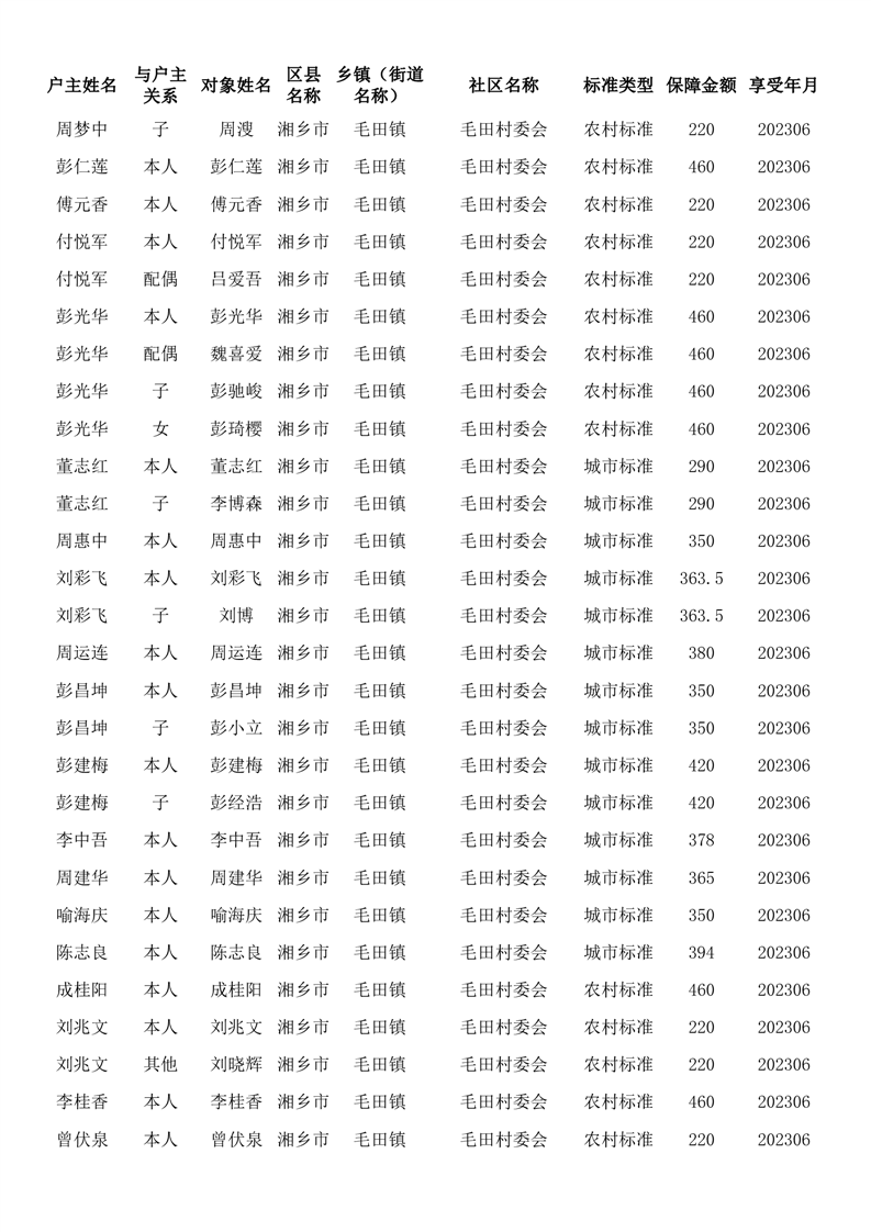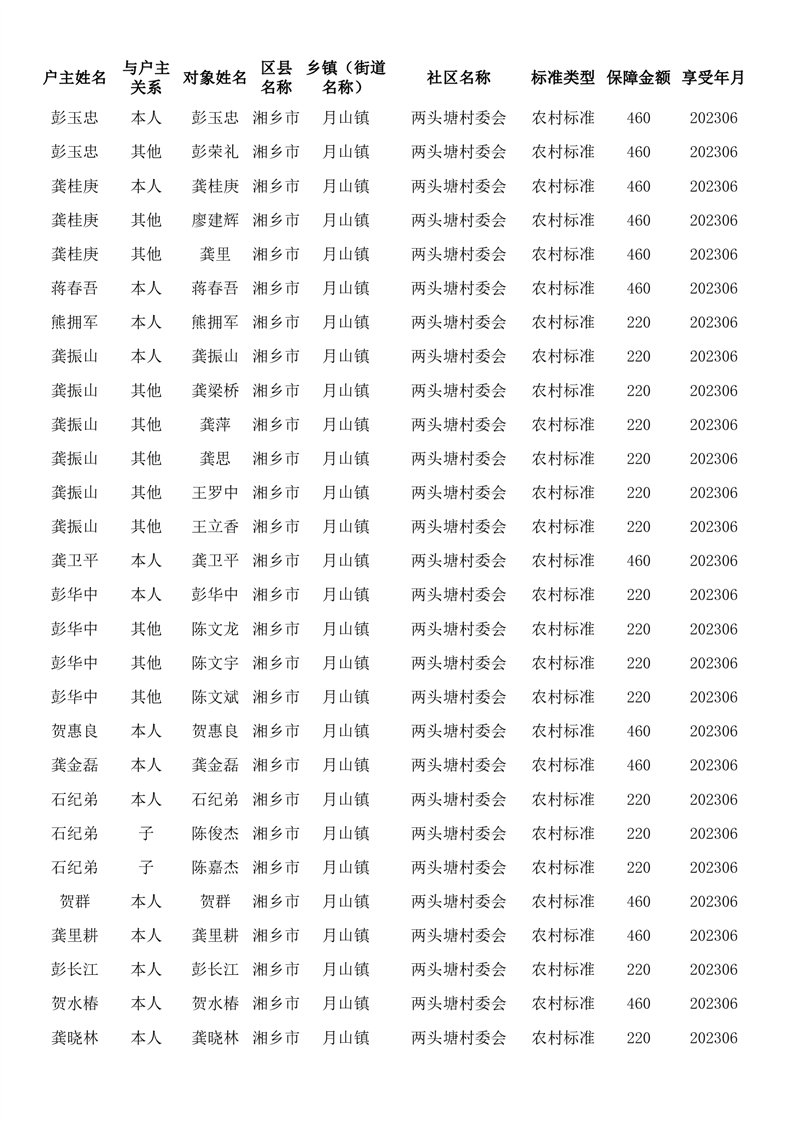 湘鄉(xiāng)市2023年6月城鄉(xiāng)低保救助對象審批匯總表