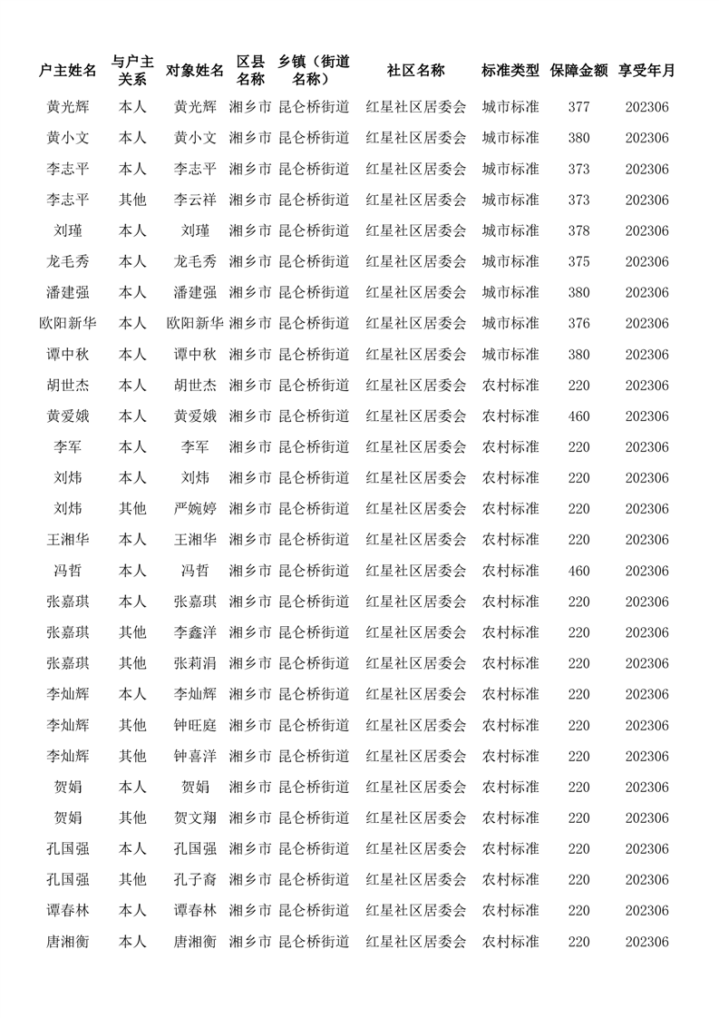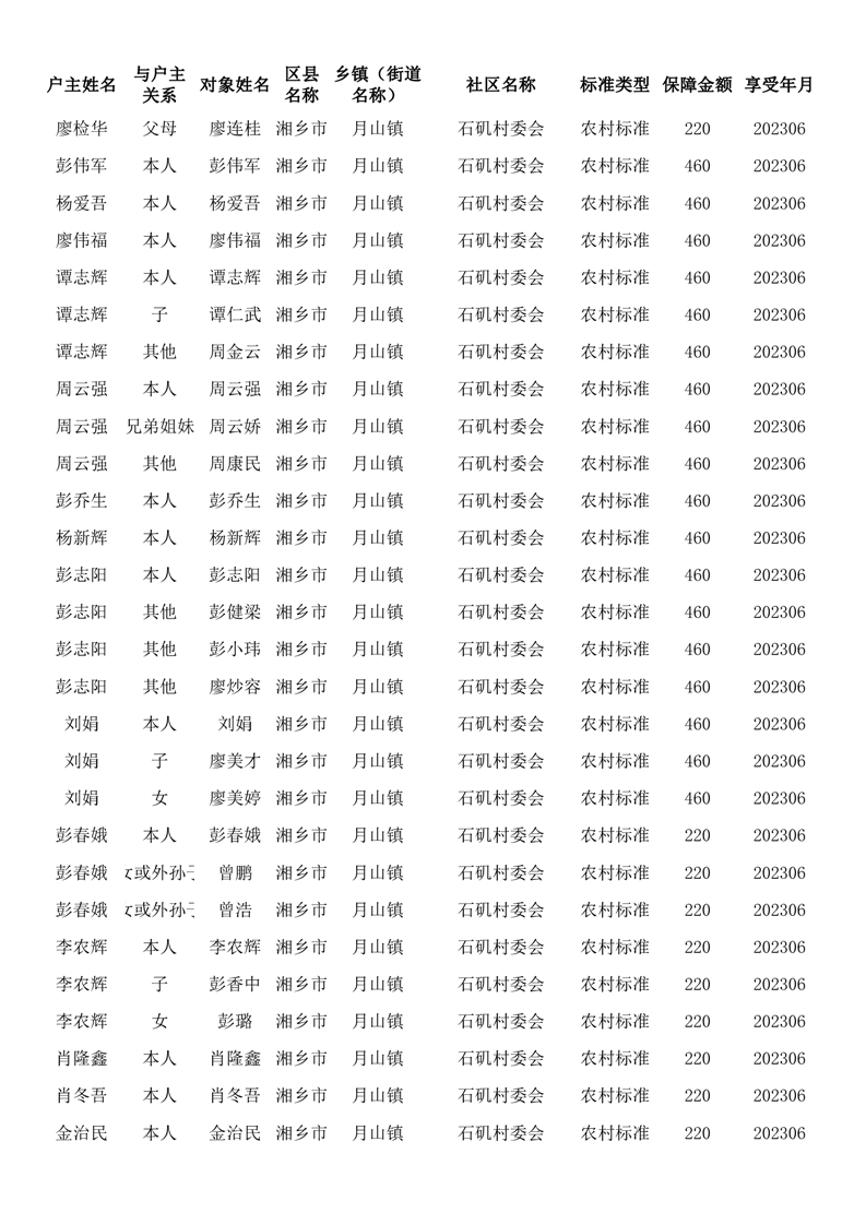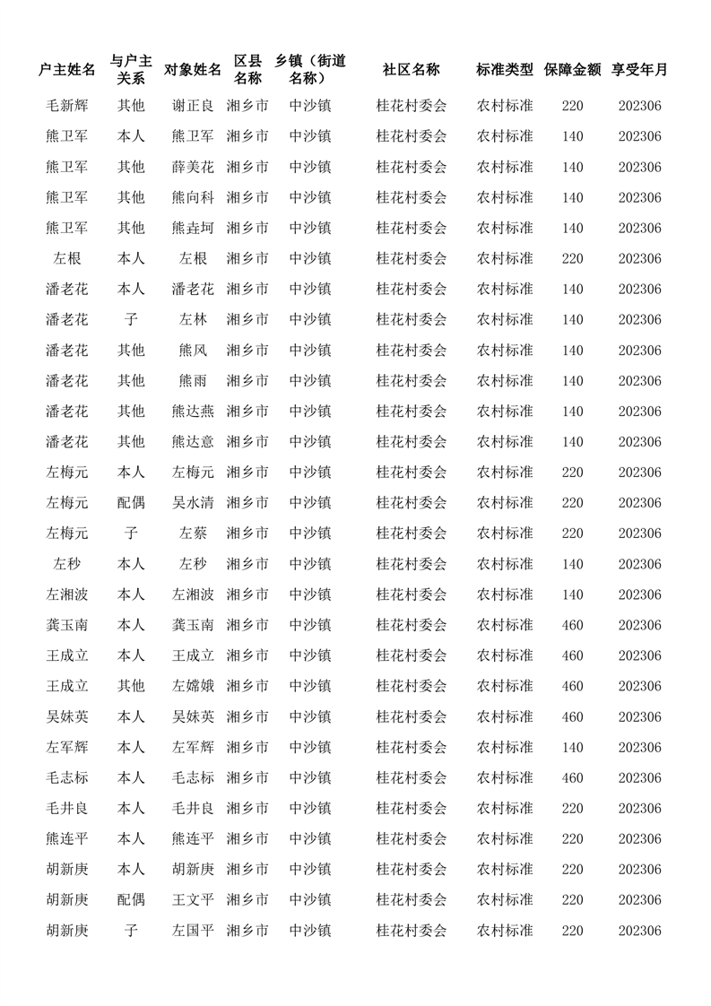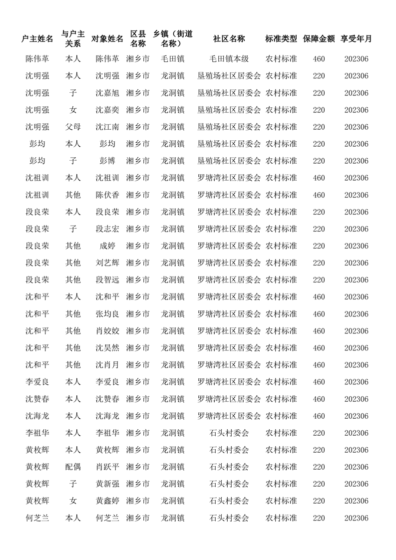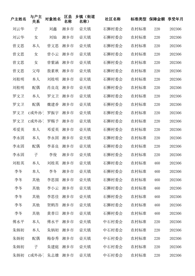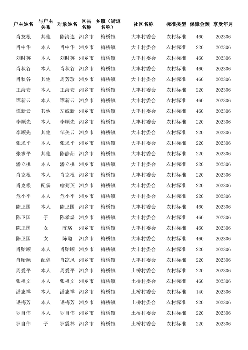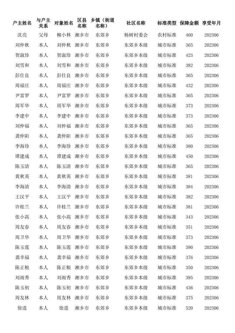 湘鄉(xiāng)市2023年6月城鄉(xiāng)低保救助對象審批匯總表
