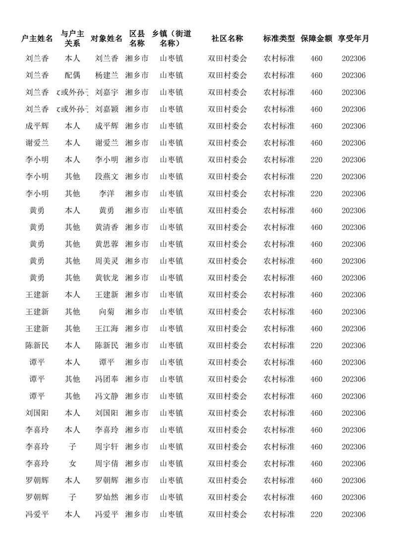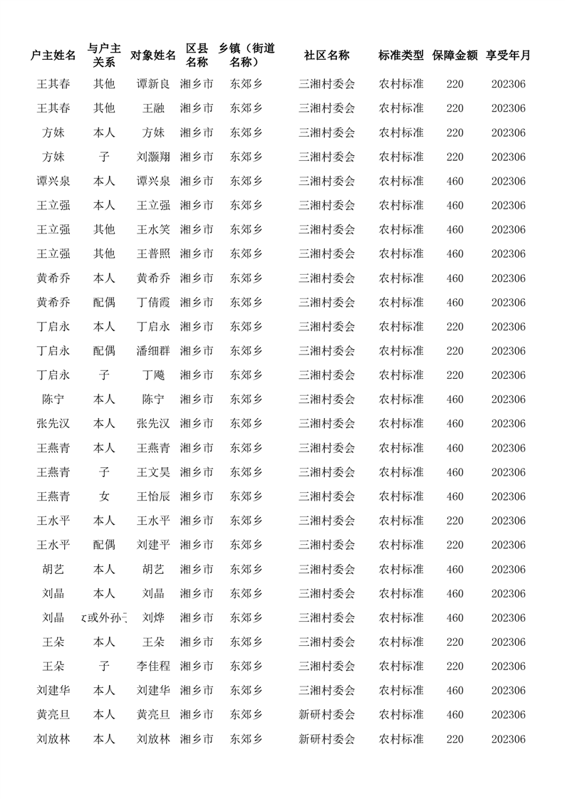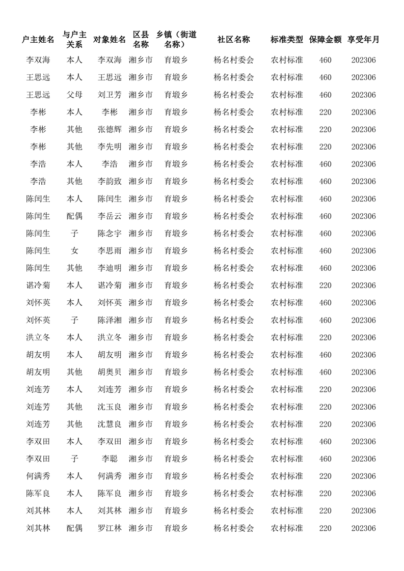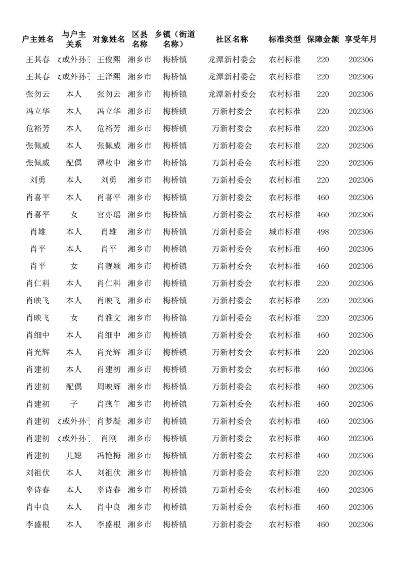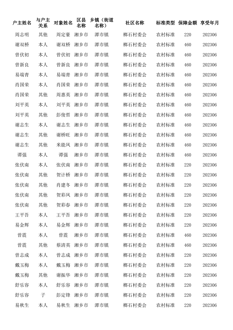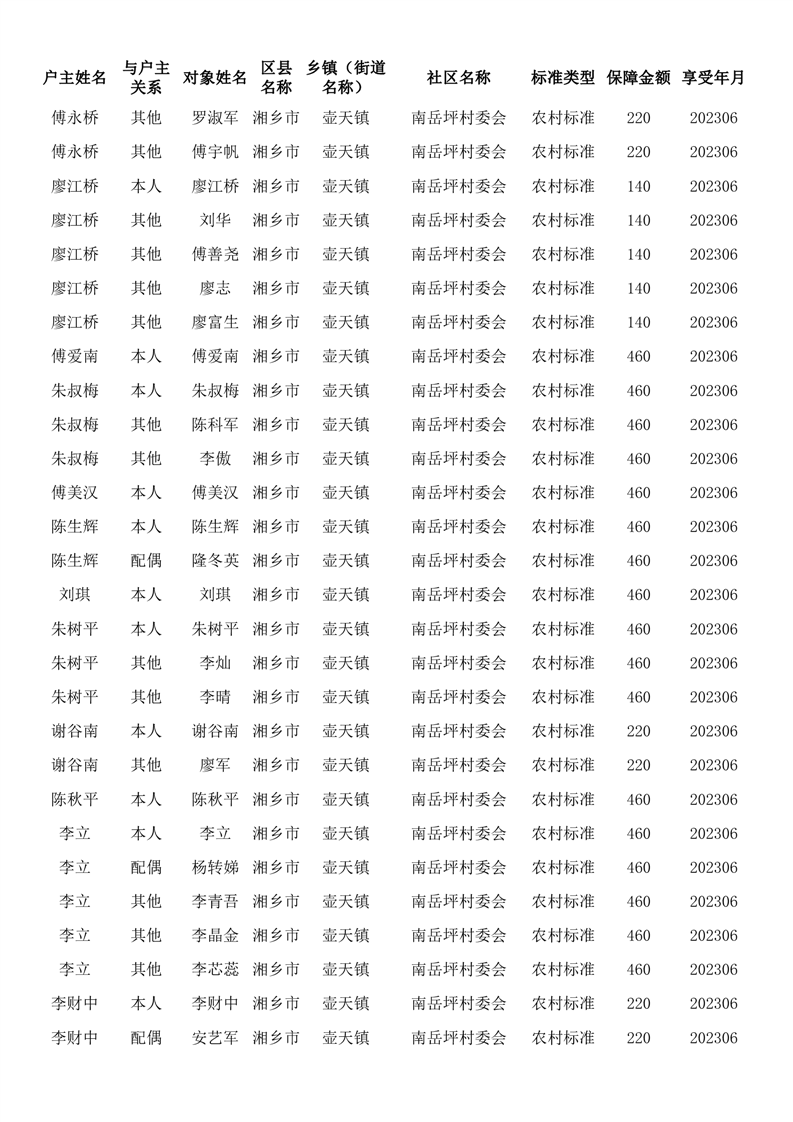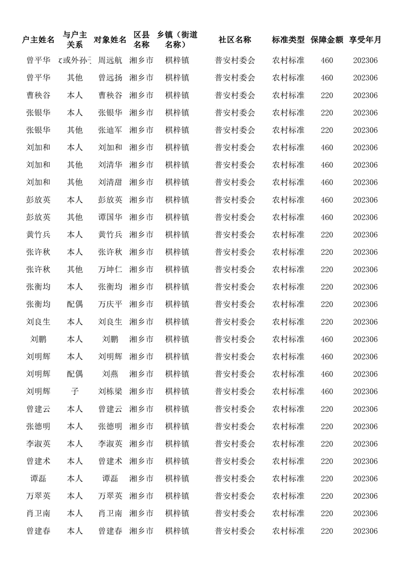 湘鄉(xiāng)市2023年6月城鄉(xiāng)低保救助對象審批匯總表